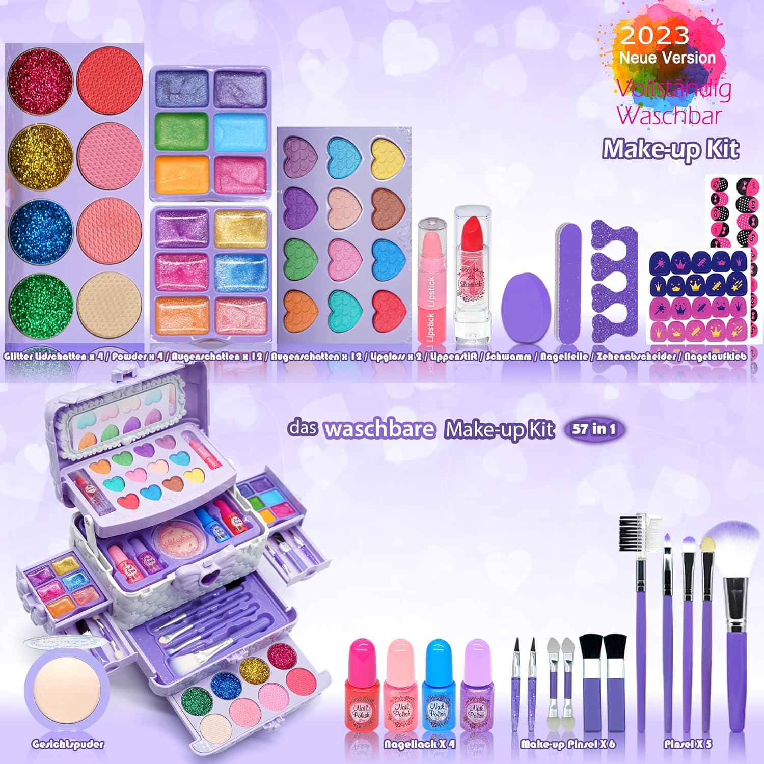 【La nuova borsa viola per bambine】: stai cercando una custodia per il trucco sicura per far giocare il tuo bambino? Abbiamo preparato per te la scatola del set trucco per bambini e ragazze con diversi colori e strumenti, che contiene quasi tutte le parti necessarie per il trucco. Scopri le infinite gioie della bellezza con la tua piccola principessa! Il trucco viola lavabile di questa ragazza realizza il sogno di ogni piccola principessa! 【Custodia per il trucco lavabile per bambine Il design esterno liscio non si danneggia facilmente e protegge le mani morbide dei bambini, facile da lavare, non tossico. Soddisfa gli standard internazionali dei giocattoli per bambini (certificati CPSIA, CPC, ASTM) trucco per bambini Adatto ad ogni occasione, compleanno, giochi di ruolo, feste principesse, spettacoli per bambini, balli scolastici. Questi sono i regali perfetti per far gioire e urlare la bambina. Un regalo ideale per 3 anni 4 5 6+ Set trucco per ragazze per bambini dagli 8 ai 12 anni Se hai problemi di qualità o non sei soddisfatto dei nostri giocattoli per ragazze con custodia per trucco, contattaci! Fornire elaborazione e rimborso completo! Set trucco per bambini, custodia per trucco per ragazze, giocattoli per ragazze dai 4 ai 12 anni