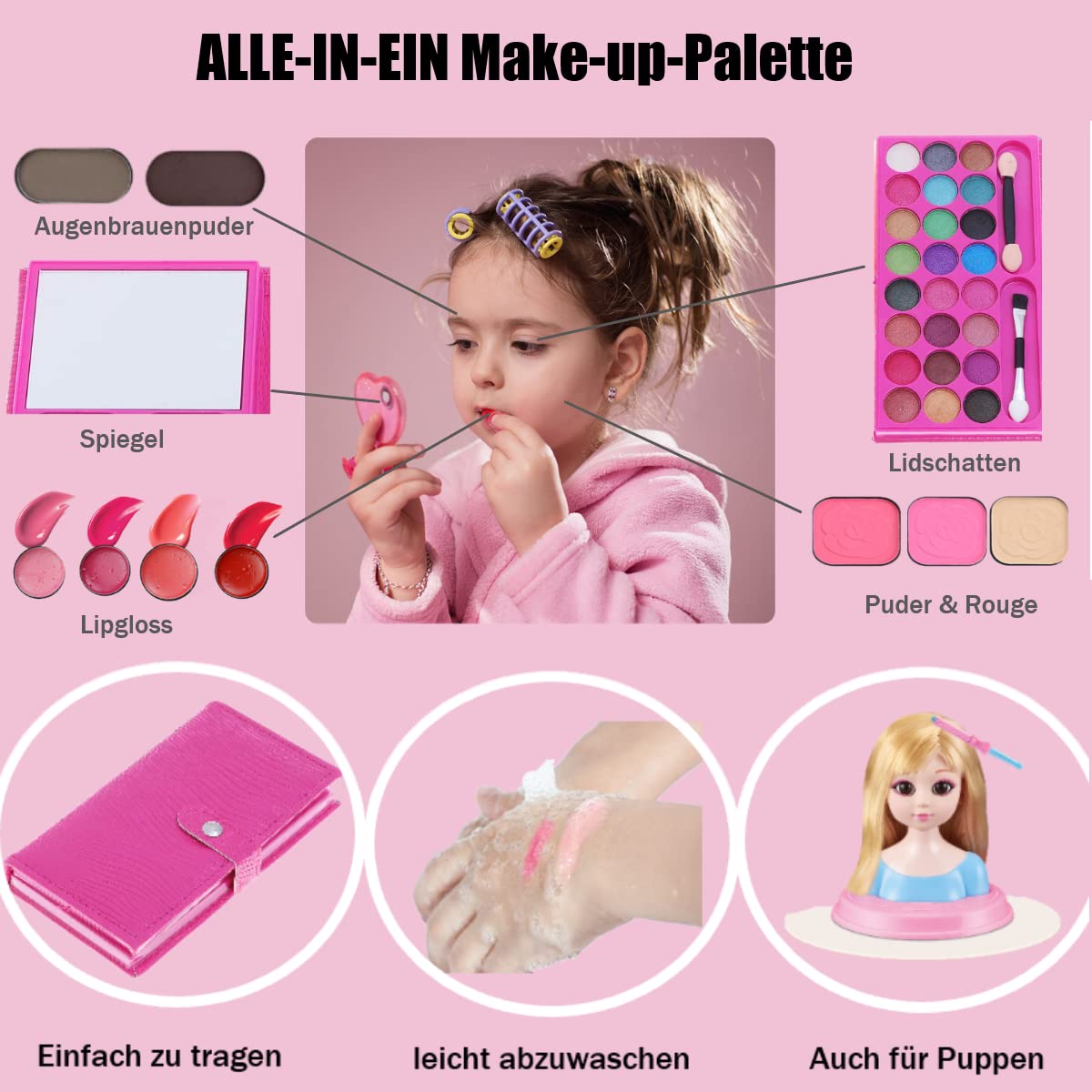 【Set trucco per bambini, sicuro e lavabile】: il set trucco per bambini KARLOR è realizzato con materiali sicuri e di alta qualità, è lavabile, morbido sulla pelle, non tossico e facile da pulire e ha superato la certificazione EN71 e CRSP. Ciò significa che è sicuro e delicato sulla pelle della ragazza, quindi la tua principessa non avrà preoccupazioni. 【Palette trucco per ragazze tutto in 1】: il set trucco per bambini KARLOR contiene tutto ciò di cui la ragazza ha bisogno per il trucco. --- 4 rossetti, 21 ombretti, 3 fard, 2 cipria per sopracciglia, 2 pennelli, 1 specchio cosmetico. Tutto è incluso nella tavolozza del portafoglio. Questo è un vero set per il trucco per la tua piccola principessa. Con questo vassoio per i trucchi, le bambine possono truccarsi e giocare. 【Vero set di trucchi per bambini】: il set di cosmetici per ragazze KARLOR è appositamente progettato per consentire alle bambine di esercitarsi nel trucco. Nel frattempo, il bambino non rovinerà i costosi cosmetici dei genitori. La tua bella principessa sarà molto entusiasta di questo set di cosmetici per ragazze. 【Design a portafoglio viola e facile da trasportare】: l'aspetto di questo vassoio per il trucco è un portafoglio rosa. Puoi chiudere il coperchio molto comodamente e trasportarlo facilmente. C'è uno specchio nella tavolozza dei trucchi, che è molto utile per le ragazze per truccarsi. Questo set di trucchi per bambini assicura alla bambina un trucco divertente, sempre e ovunque. 【I migliori regali per ragazze】: ogni bambina vuole avere il suo regalo. La confezione del nostro prodotto è rosa e bellissima. Le bambine saranno soddisfatte di questo set di trucchi, adatto come regalo di compleanno, Natale, festival, ecc. Si prega di notare che questa tavolozza di trucchi è adatta per ragazze/bambini dai 4 anni in su. I bambini piccoli dovrebbero truccarsi e giocare sotto la supervisione dei genitori.