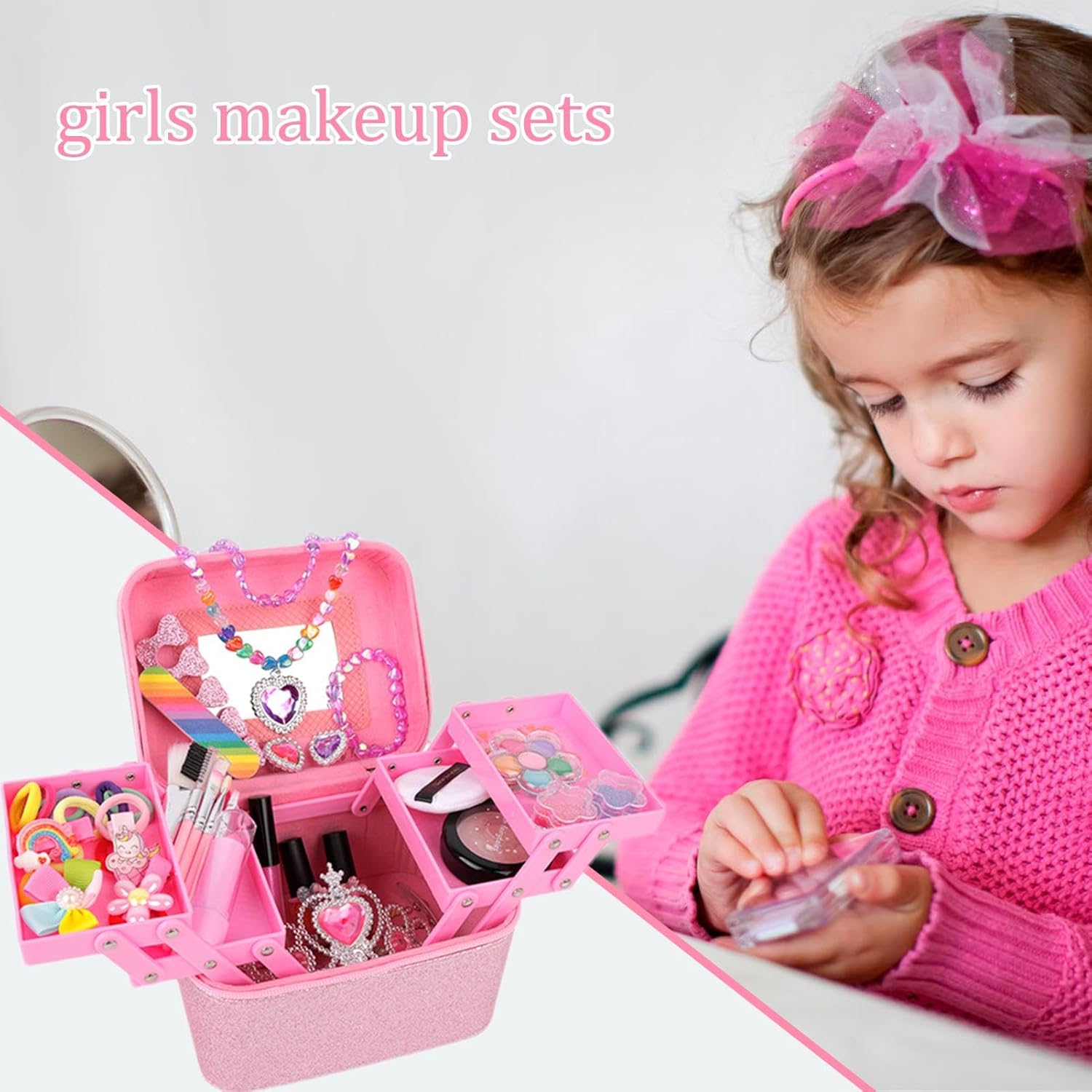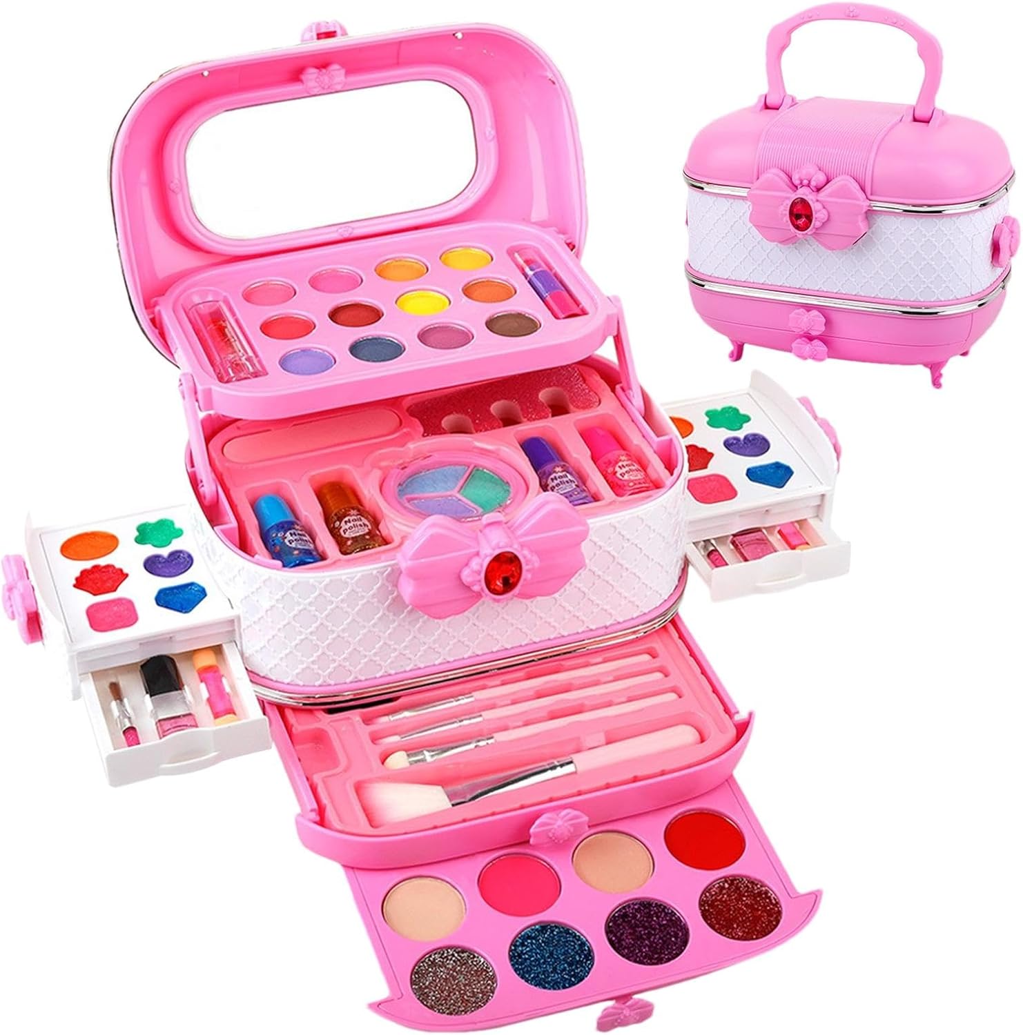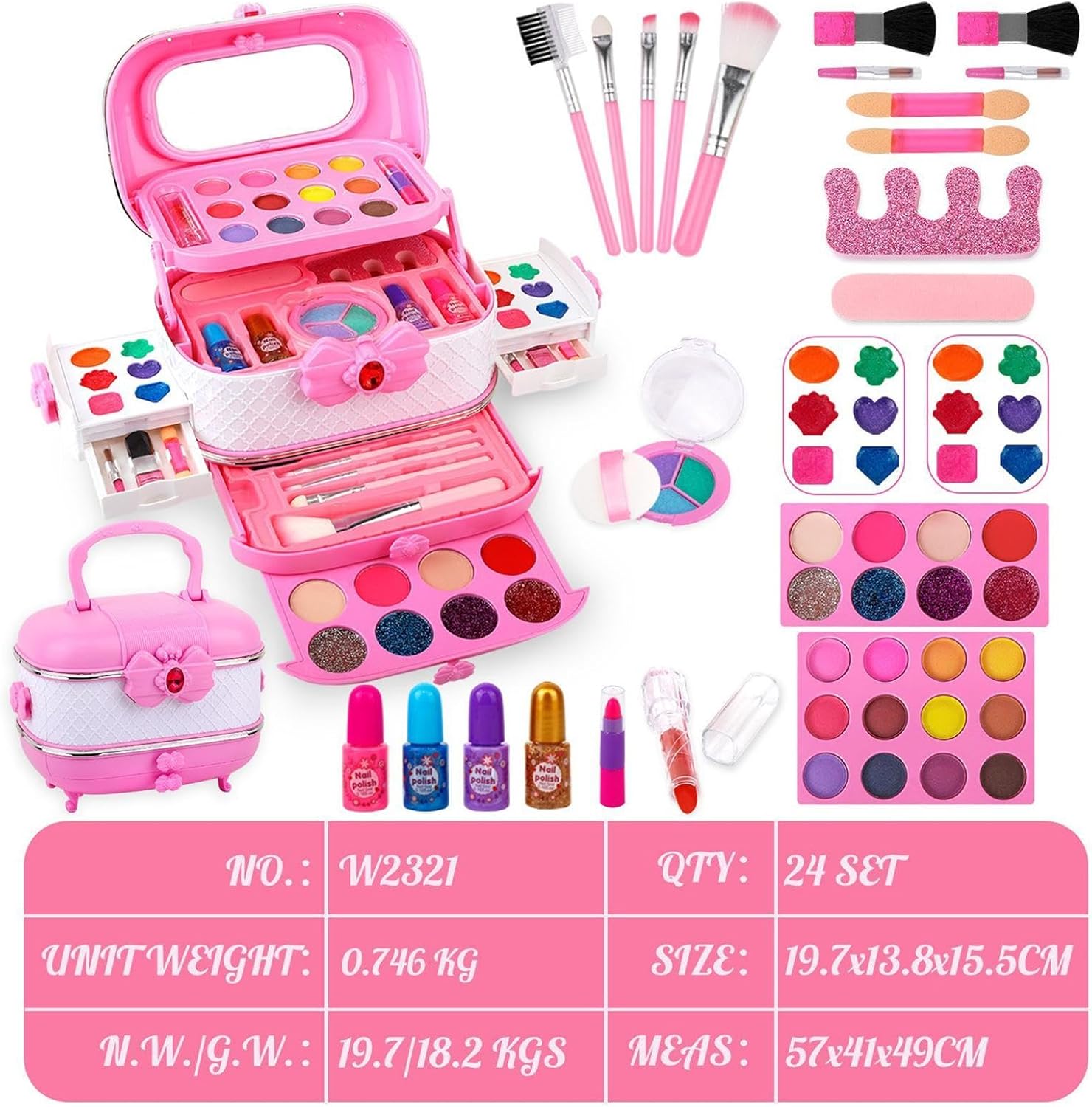 ☏Princess Fantasy: trasforma la tua bambina in una principessa reale con questo speciale set di trucchi. Progettato per stimolare l'immaginazione e la creatività, questo set rosa è lo strumento perfetto per evidenziare la bellezza e l'innocenza del tuo bambino. ☏Set di bellezza completo: fornisci a tua figlia gli strumenti essenziali per il trucco e la manicure di cui ha bisogno per ottenere il look da principessa dei suoi sogni con il nostro set di bellezza per il trucco 26 in 1, inclusi rossetti, cipria, lime per unghie e altro ancora. ☏Tempo di gioco sicuro garantito: concediti un divertimento senza rischi con il nostro set di trucchi per bambini. Gli ingredienti lavabili possono essere facilmente risciacquati con acqua, garantendo un divertimento di gioco sicuro. Perfetto per travestirsi e giocare da principessa, il set è progettato con bordi lisci per un uso sicuro e duraturo. ☏Scatena l'immaginazione: aiuta i tuoi bambini a sviluppare creatività e abilità pratiche incoraggiando al contempo la loro immaginazione e percezione dei colori con un affascinante set di trucchi. Goditi il tempo con i tuoi cari e guardali scoprire il loro amore per il trucco mentre sviluppano le loro capacità estetiche e costruiscono legami più forti con la famiglia e gli amici. ☏I migliori regali: incoraggia l'immaginazione di tuo figlio con il nostro set di trucchi per bambini, che include una custodia per il trucco sicura e robusta adatta per vestirsi e giocare con le principesse. Questo set rotondo con manici è perfetto per eventi e feste ed è un meraviglioso regalo di compleanno, Natale, Halloween o altre festività per i bambini che amano giocare e sognare in grande.