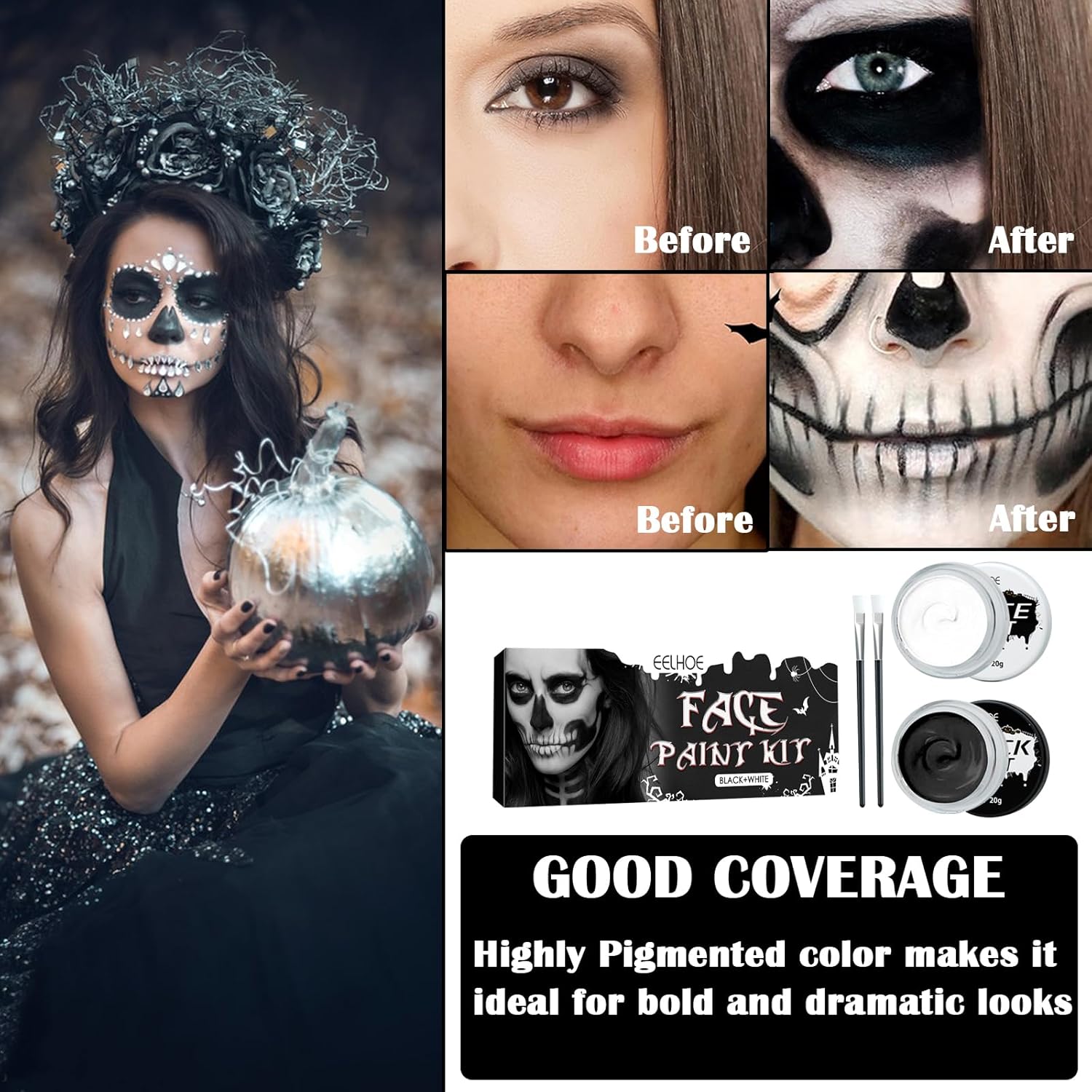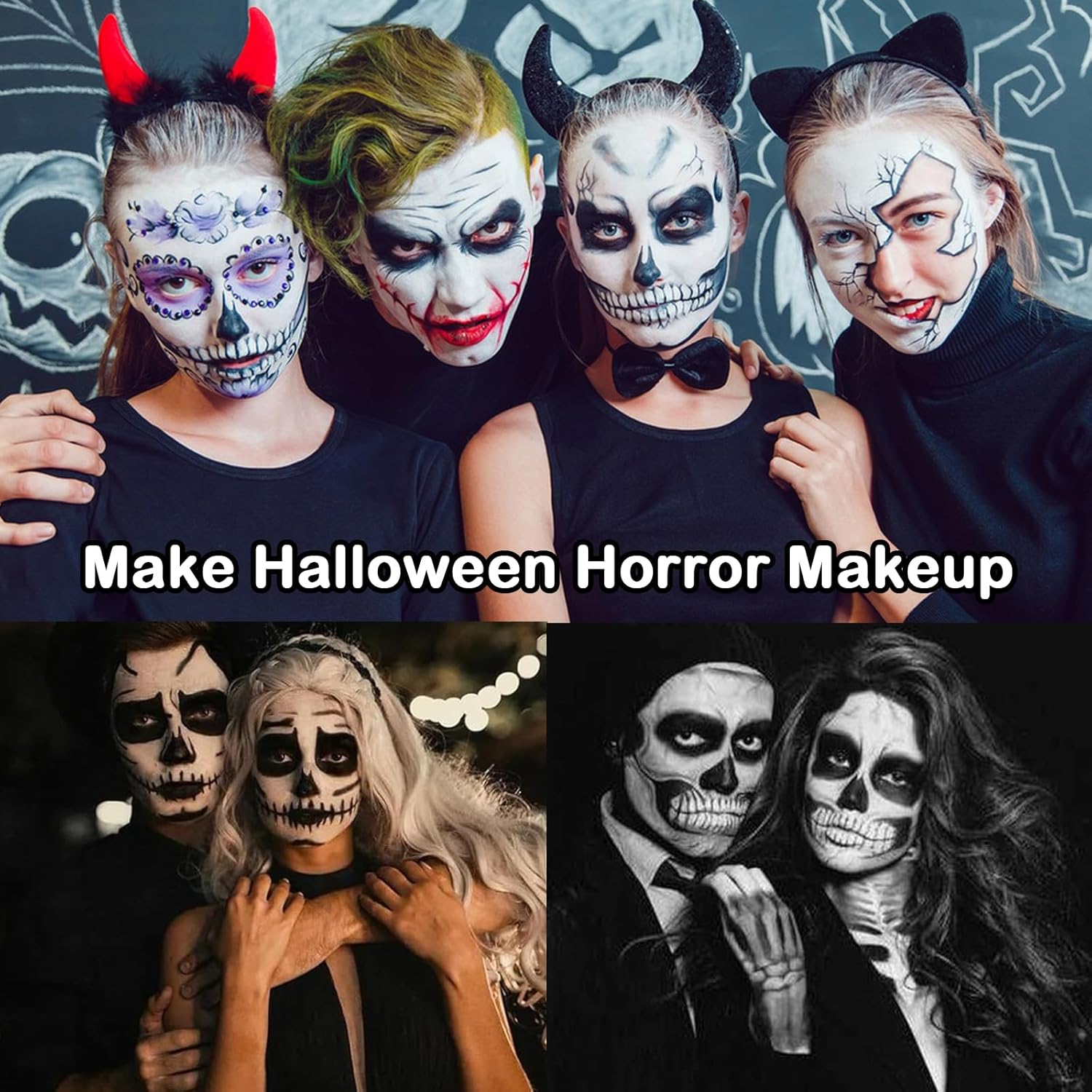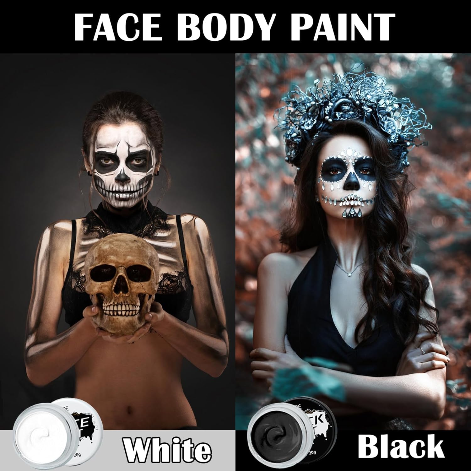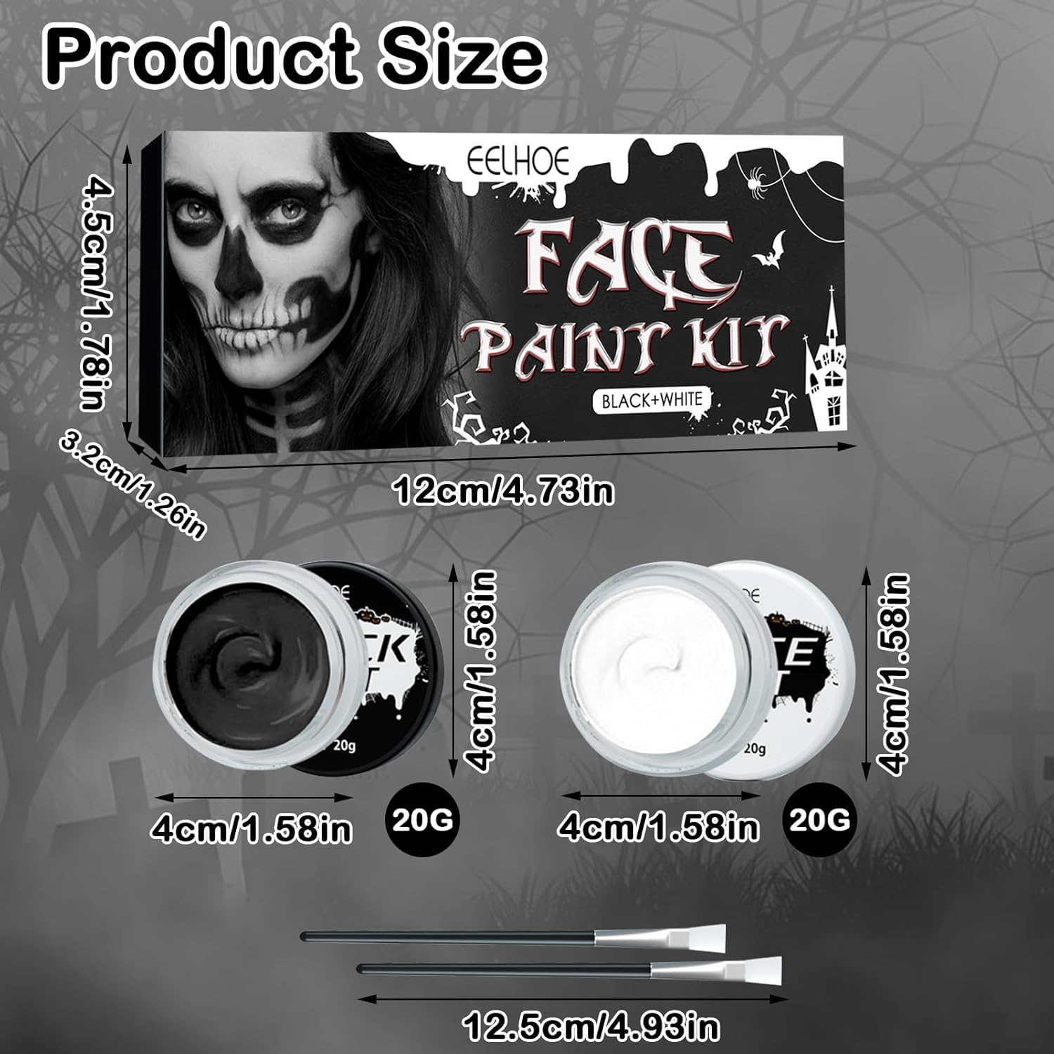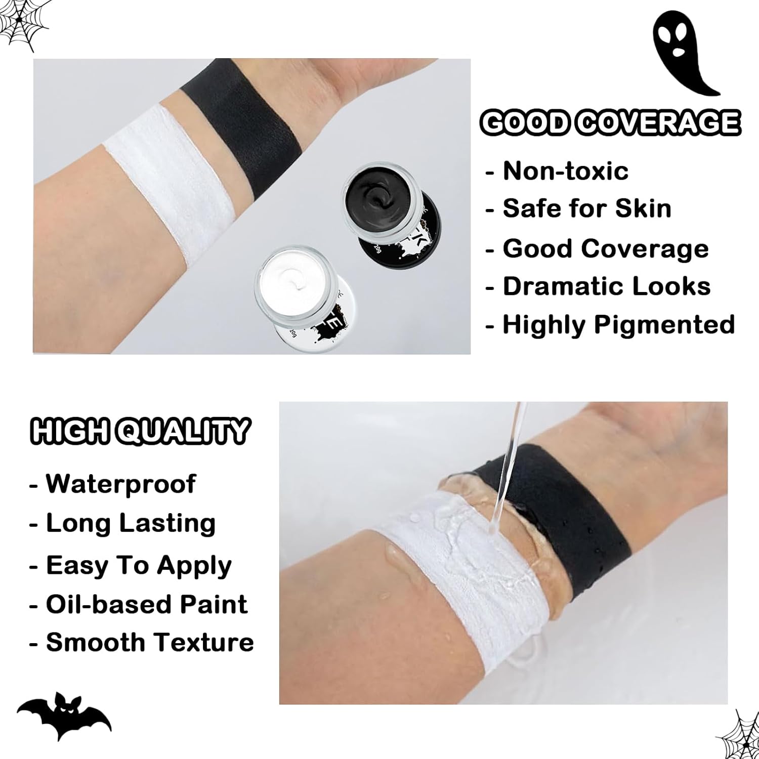✅【Pittura per il corpo in bianco e nero】: il set di pittura per il viso bianco e nero può essere utilizzato direttamente o mescolato con altri colori per creare i diversi colori che ti piacciono. Set professionale per il trucco di Halloween con pennello, può soddisfare tutte le tue esigenze per creare look di Halloween. ✅ 【Sicuro e durevole】: il set per il trucco di Halloween è realizzato in materiale di alta qualità con una consistenza morbida e delicata che può coprire facilmente l'intero viso. Progettato in bianco e nero, è adatto per giocare a clown, scheletri e fantasmi. ✅【Alta Coprenza】: Il colore del viso è bianco e nero e la texture è morbida e delicata, che copre facilmente tutto il viso e fa durare a lungo il trucco, non si secca né si screpola. ✅【Facile da usare】: Facile da usare, applicare sulla pelle con una spugna, un pennello o con la punta delle dita; Utilizzando uno struccante professionale, pulire con un tovagliolo di carta e risciacquare con tonico e acqua. ✅【Occasioni multiple】: questo set per il trucco di Halloween è perfetto per una varietà di pittura del viso e del corpo, crea il look perfetto per la tua festa in costume di Halloween, clown cosplay, festa di compleanno, carnevale, spettacolo teatrale, festa di trucco in costume a tema, festa di ballo di fantasia e molto altro!