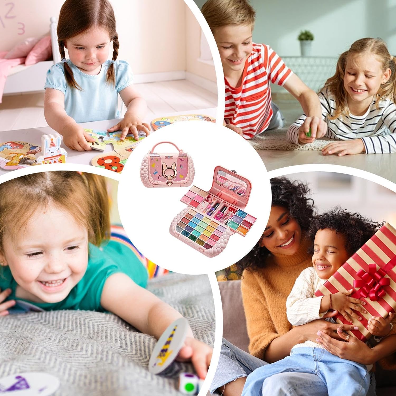 Materiali di alta qualità: realizzati con materiali di alta qualità, questi cosmetici sicuri e lavabili non causano danni al corpo umano, garantendo un tempo di gioco creativo e senza preoccupazioni. Migliora la fiducia in se stessi: appositamente progettati per soddisfare l'ossessione delle ragazze per il trucco, consentendo loro di vedere il loro lato affascinante e allo stesso tempo aumentare la loro fiducia nel processo di trucco. Perfetto per il legame familiare: questo set di trucchi aiuta a coltivare un forte rapporto genitore-figlio, migliorando gradualmente i legami con genitori e amici. Incoraggia l'espressione artistica: il nostro set per il trucco è lo strumento perfetto per aiutare a coltivare la creatività e l'immaginazione dei bambini. Fornisce un modo coinvolgente e divertente per esercitare la percezione del colore e migliorare le abilità pratiche, rendendolo un'ottima scelta per favorire lo sviluppo artistico ed esplorare il potenziale immaginativo dei bambini. REGALO FANTASTICO: perfetto per compleanni, vacanze, Natale o qualsiasi altra occasione speciale, assicurando che le ragazze a casa ricevano regali che rendano felici le tue