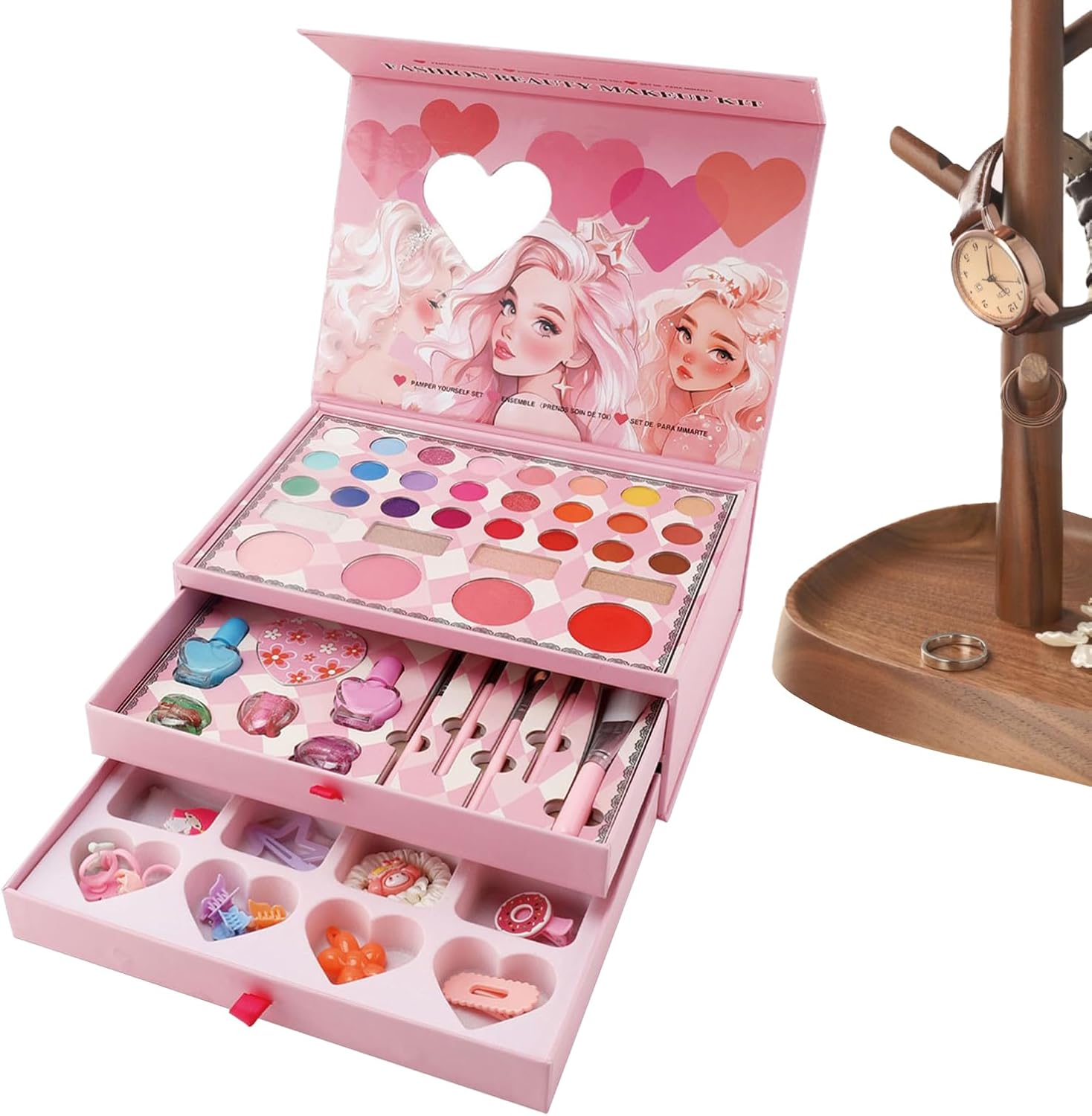 Materiale sicuro: con il nostro set di cosmetici sicuro per i bambini, i tuoi bambini potranno godersi ore di divertimento senza preoccupazioni. È realizzato con materiali di alta qualità, facile da pulire e non contiene sostanze nocive. Rafforza la fiducia: il set trucco per bambini è progettato per soddisfare l'ossessione per il trucco delle ragazze e incoraggiarle a mostrare il loro lato affascinante. Con ogni applicazione di trucco, rafforzano la loro fiducia nell'esprimere se stessi e la propria bellezza. Rafforza i legami familiari: il nostro set di trucchi per bambini è lo strumento perfetto per rafforzare il legame tra genitori e figli, offrendo momenti divertenti e creativi che avvicinano tutti gli uni agli altri. Promuove lo sviluppo artistico: questo set di trucchi per bambini stimola la creatività, stimola l'immaginazione migliorando la percezione del colore e le abilità pratiche. È uno strumento eccellente per promuovere il potenziale artistico dei bambini. Ottimo regalo: perfetto per compleanni, vacanze, Natale o altre occasioni speciali per garantire che le ragazze a casa ricevano regali che rendano felici i tuoi bambini