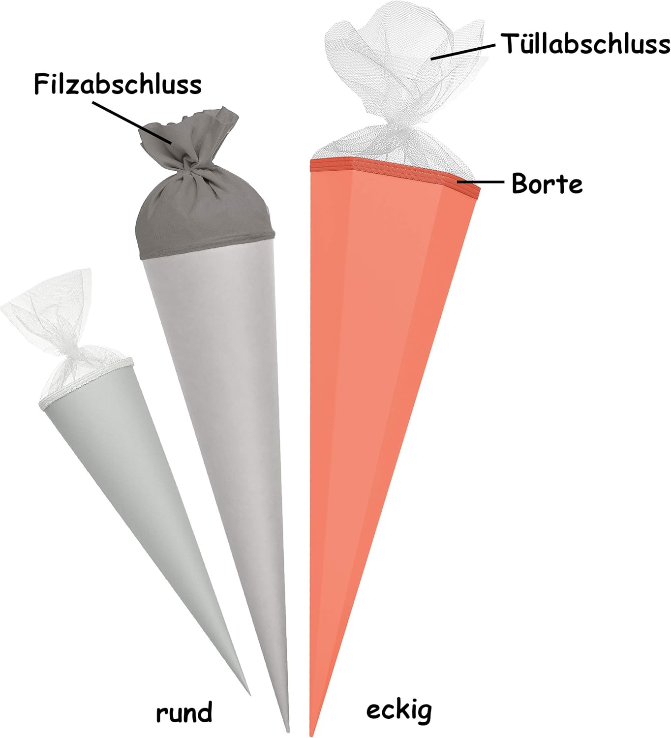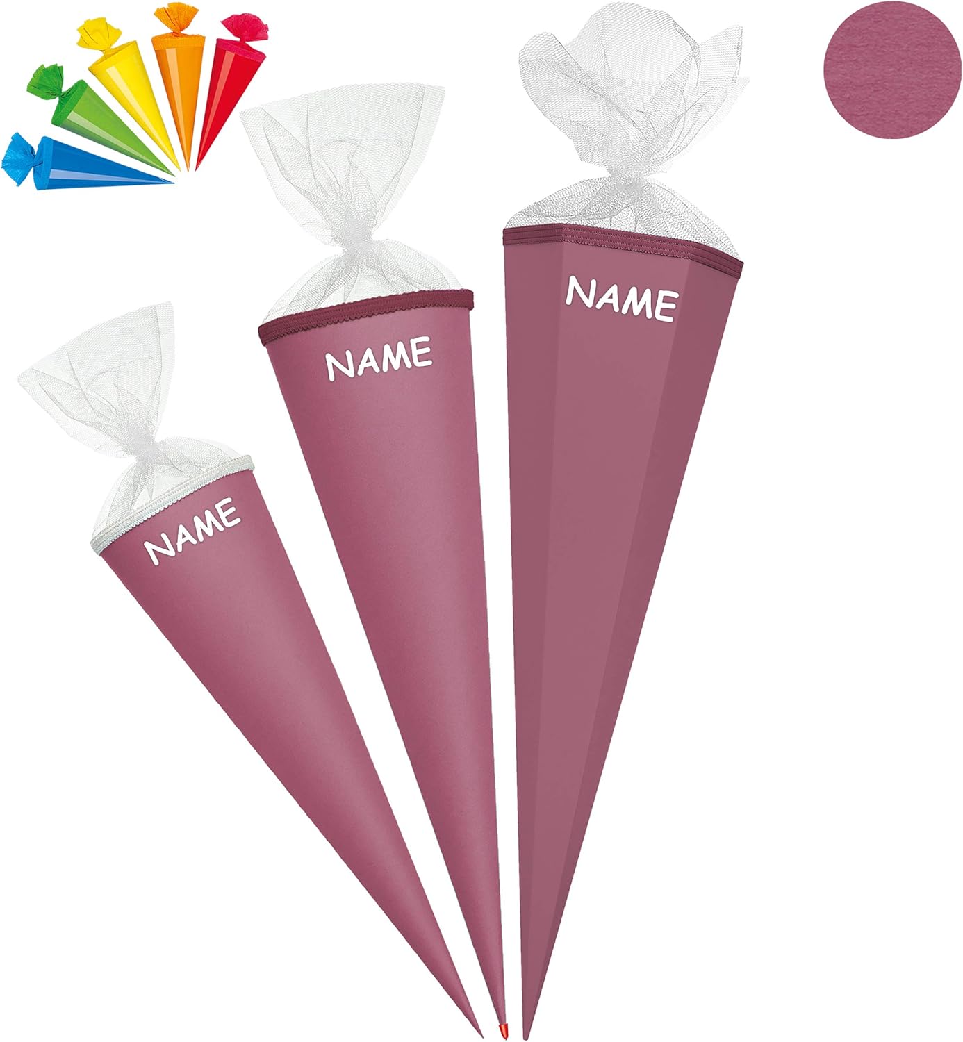 fantastico set _____ stabile e di alta qualità - cono per la scuola ___ 85 cm di lunghezza ___ Forma: 6 - QUADRATO ____ Colore di base: "BERRY - mora chiara e lampone" (colore opaco) _____ il bordo superiore ha un elegante bordo intrecciato color bacca o bianco e una finitura in tulle BIANCO ___ + 5 pezzi - coni scolastici extra con finitura crespa - in un colorato mix di colori per appendere o decorare .... (ciascuno alto 12 cm - misurato solo il cartone) l'OCCHIO: ______ incluso grande effetto 3D in colore coordinato _ fiocco - questo rende il tuo cono scolastico un colpo d'occhio ancora più bello ______ i bellissimi modelli di fiocco vengono consegnati misti (puoi vedere esempi nelle immagini) made in Germany! __ Materiale: cartone rivestito e di alta qualità - SUPER stabile! - idrorepellente! __ colori di stampa fantastici! ____ OPZIONALE è disponibile una punta in plastica abbinata, trasparente e solida da attaccare (questo rende la punta del cono scolastico molto stabile e stabile) ---- (questo articolo deve essere ordinato EXTRA al cono scolastico) questo cono di zucchero è ideale ____ per fai da te, dipingere, etichettare e incollare... e ovviamente anche per cucire e può essere rivestito con TESSUTO ________ ma può anche essere usato in un colore ___ e come extra: IL CONO scolastico individuale con il tuo DESIDERATO PER PRIMO NOME - aggiungi semplicemente l'articolo "nome desiderato" come extra nel carrello, il nome verrà quindi abbinato. Un'altra idea: un fiocco personalizzato con il vostro NOME DESIDERATO - aggiungete semplicemente l'articolo "fiocco con il nome desiderato" come extra nel carrello, il nome verrà quindi abbinato al fiocco