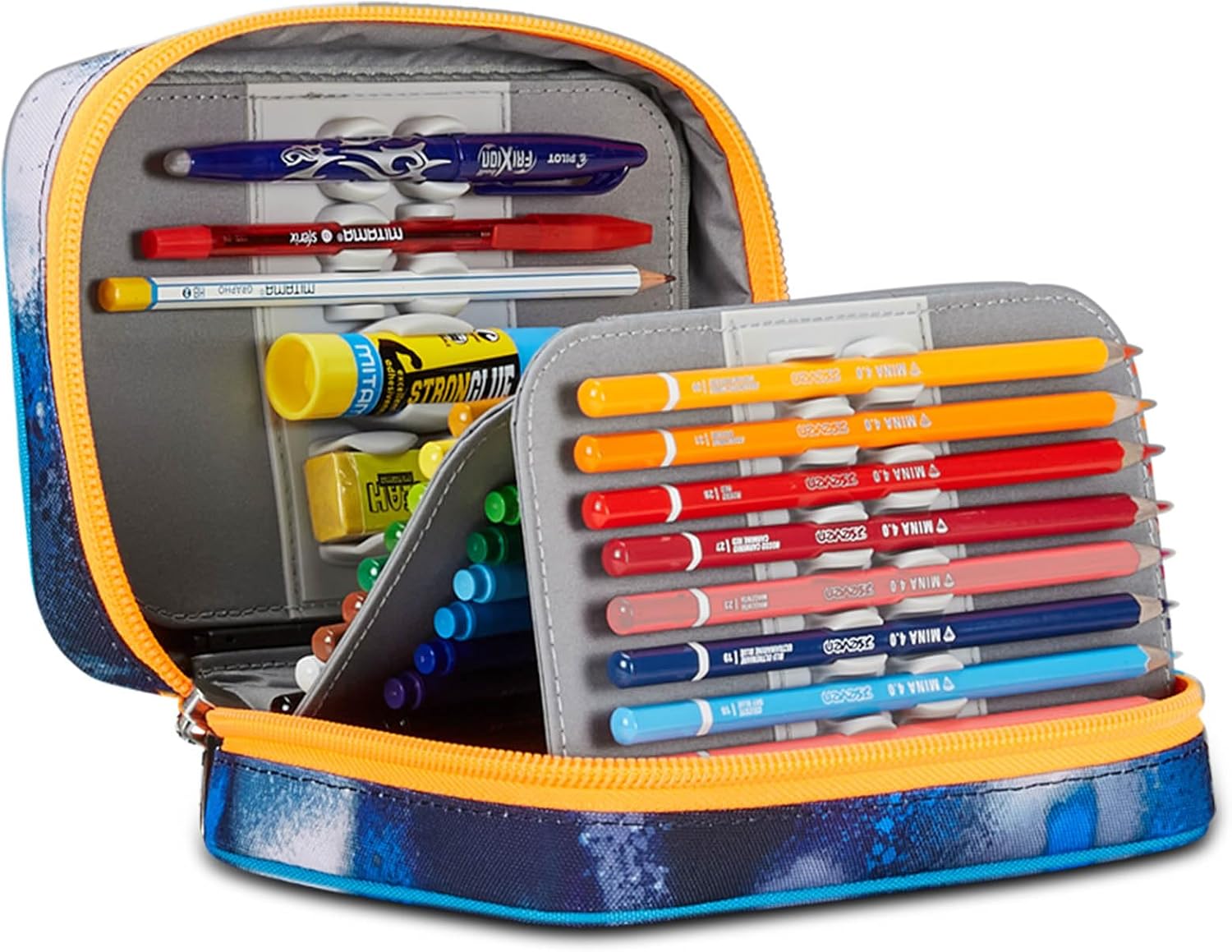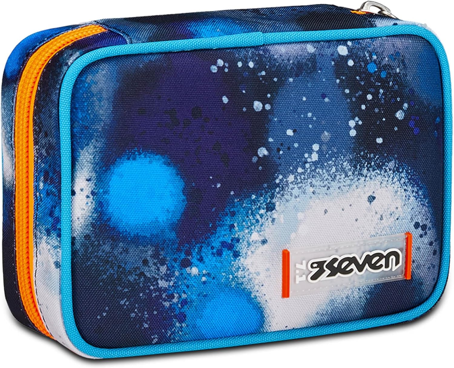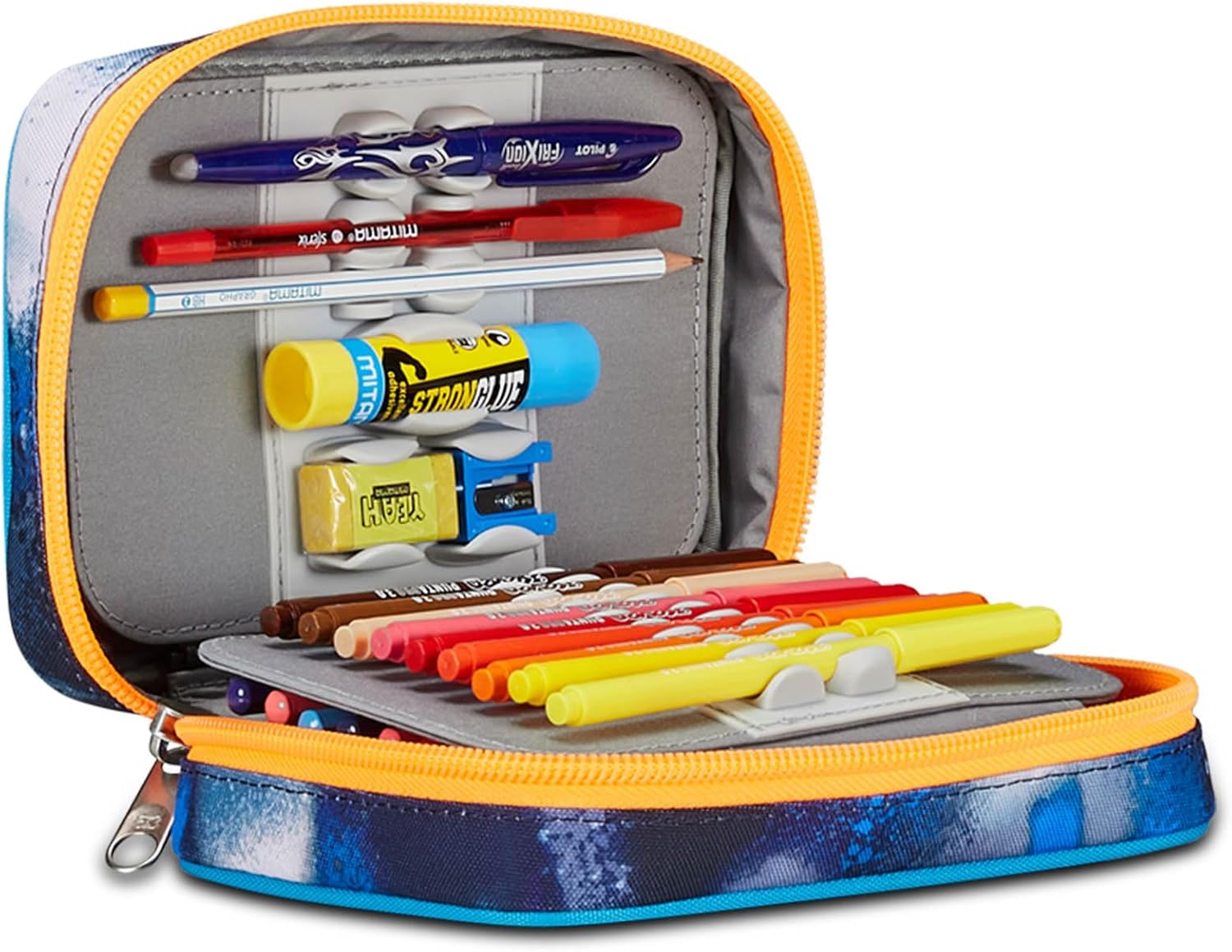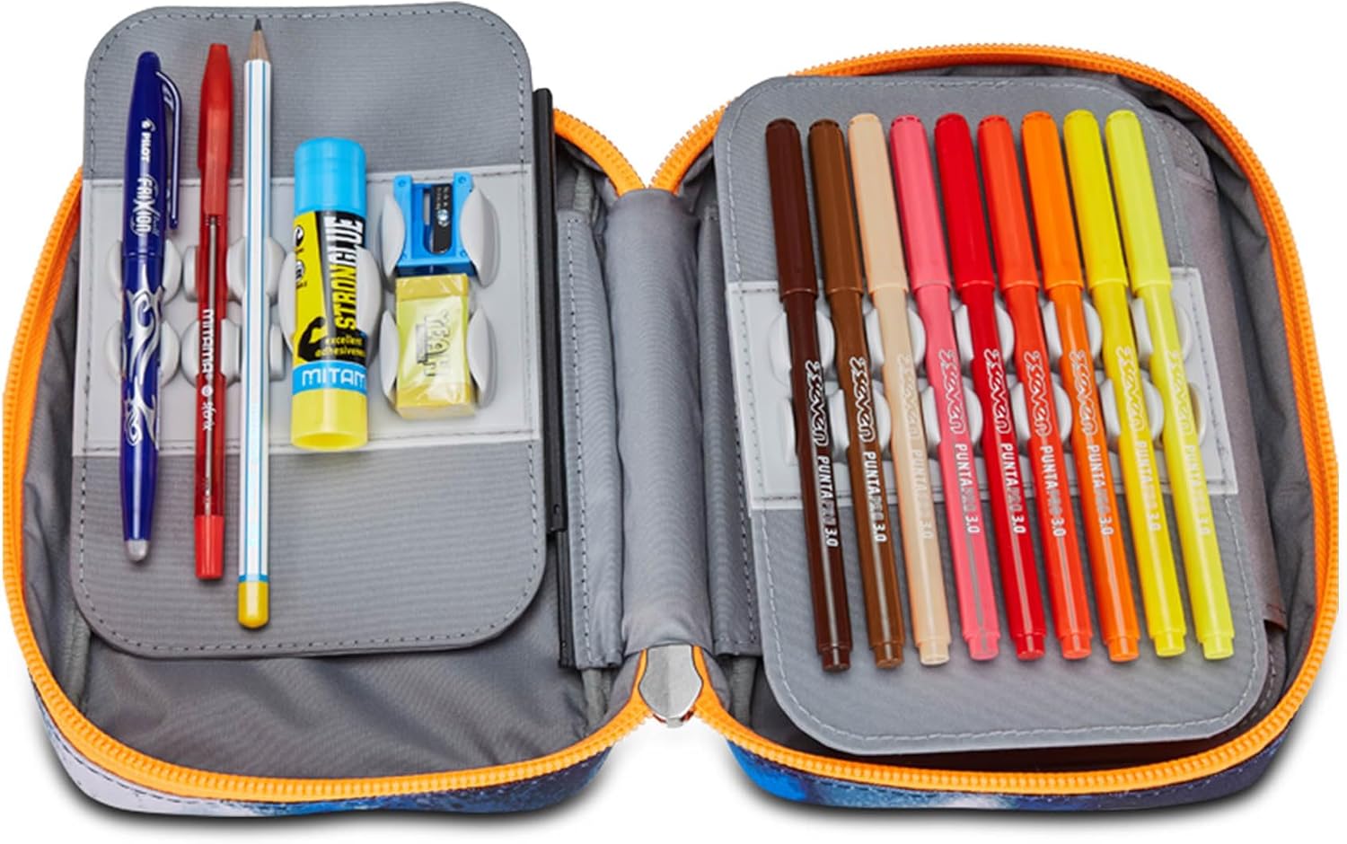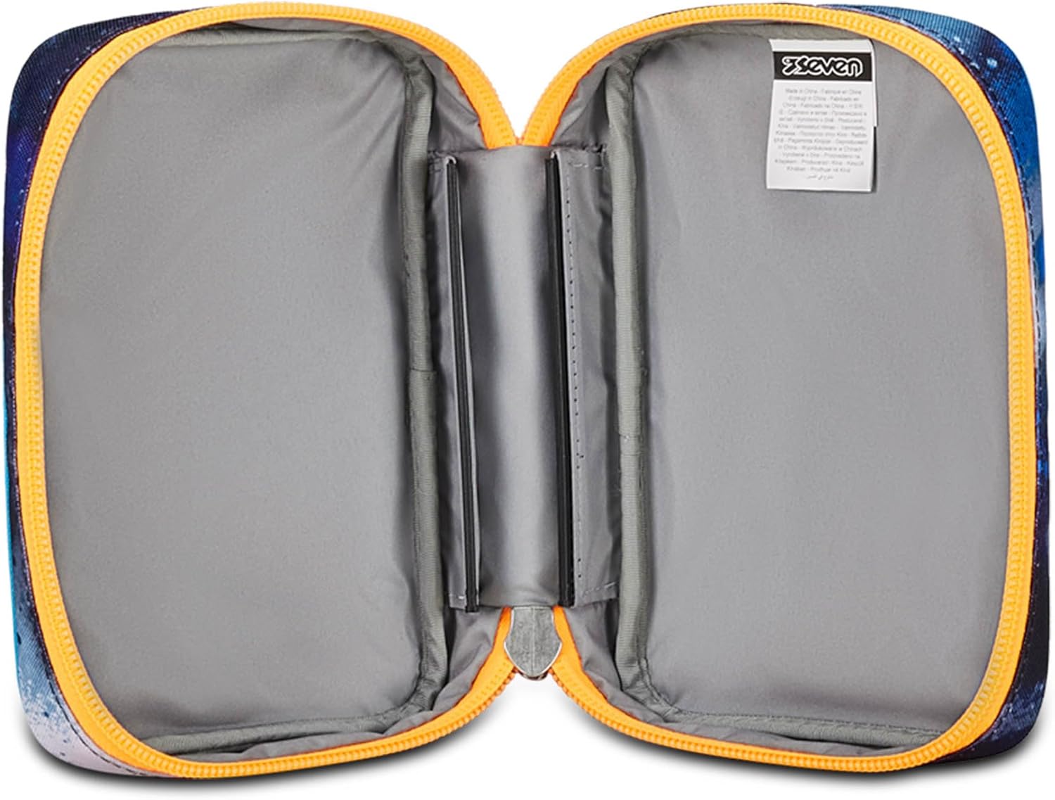Seven Astuccio Scuola Speed Pad, Blu Arancione, Retrocolor, Portapenne Mono Scomparto Con Plance Amovibili e Penne, Matite, Colori, Accessori Zaino, Elementari, Medie, Bambino