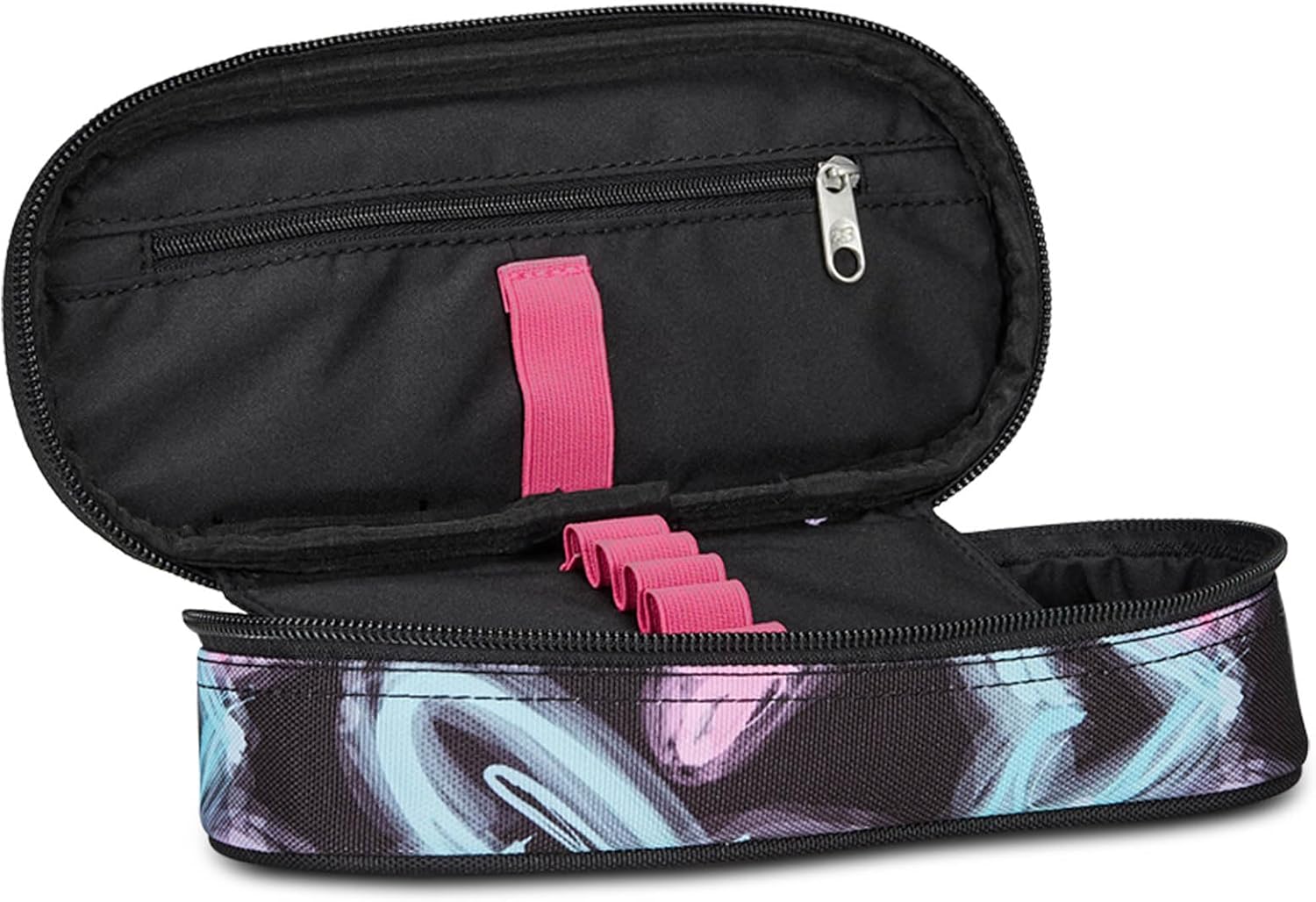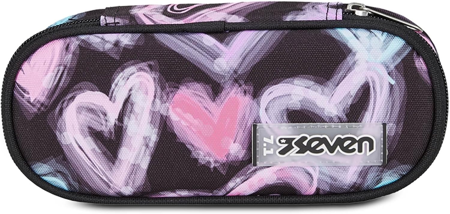 Seven Portapenne Scuola Round Plus, Nero e Viola, Freethink Girl, Bustina Ovale Con Tasca Interna ed Elastici Porta Penne, Accessori Zaino, Elementari, Medie, Superiori, Bambina Ragazza