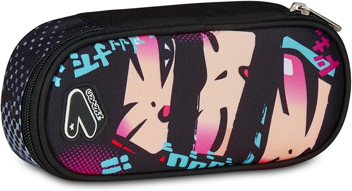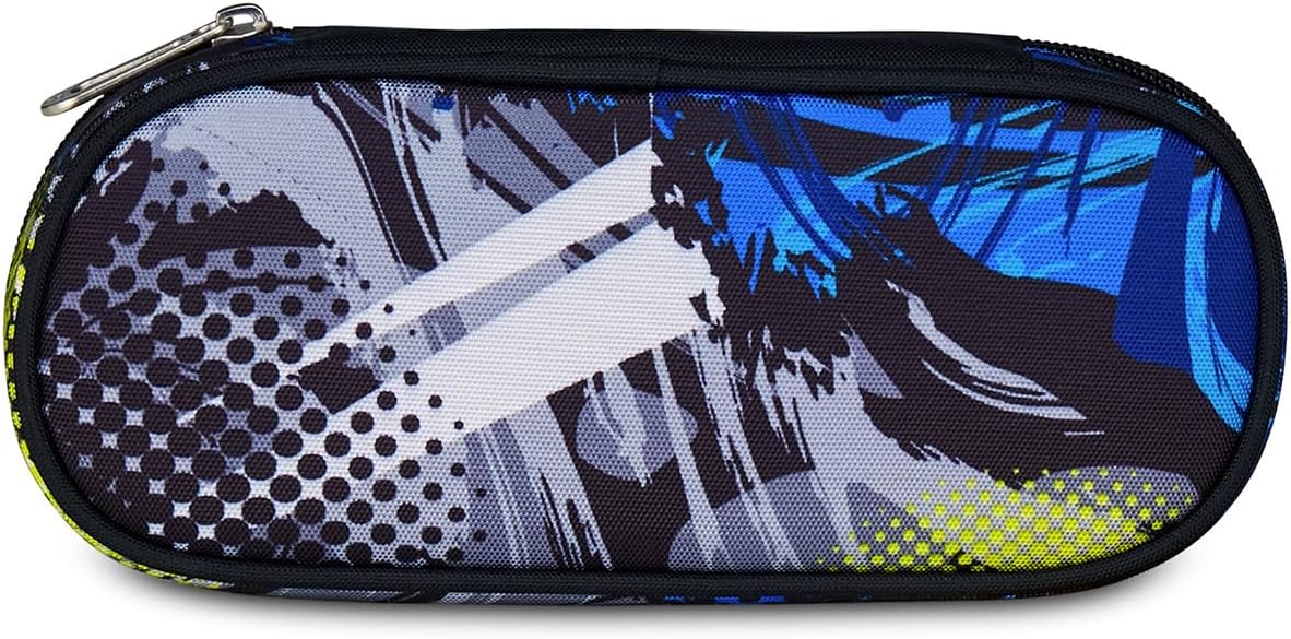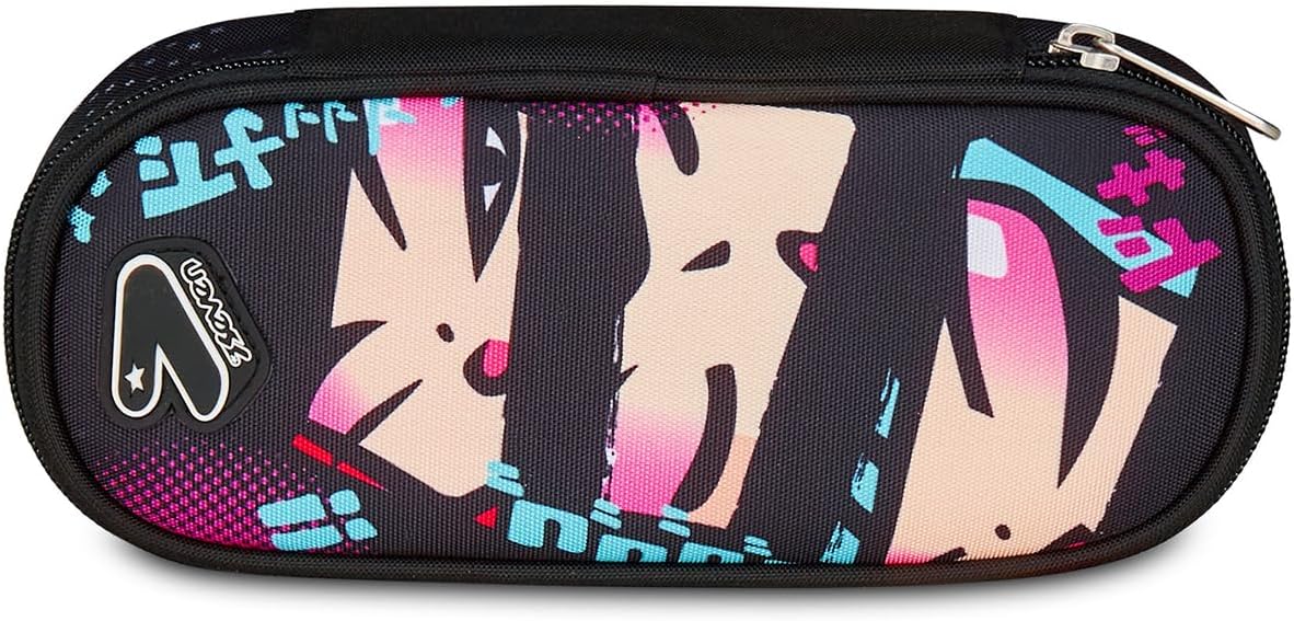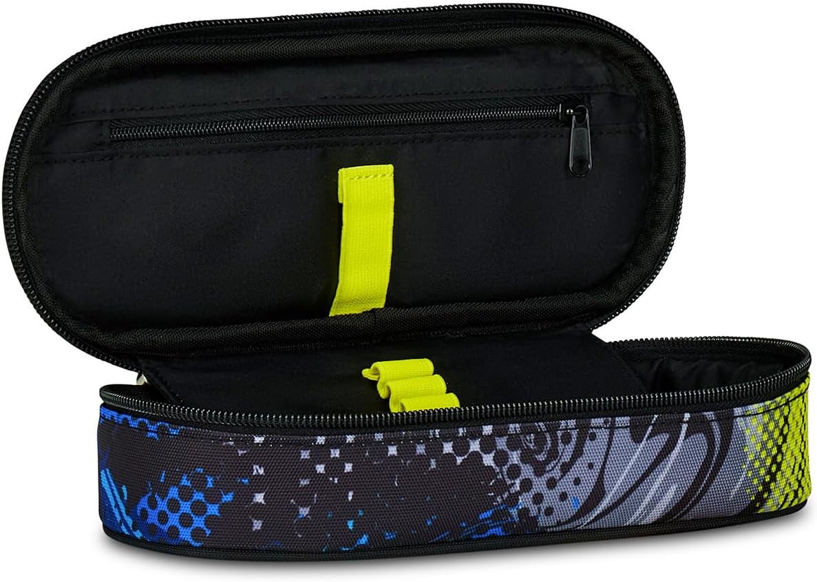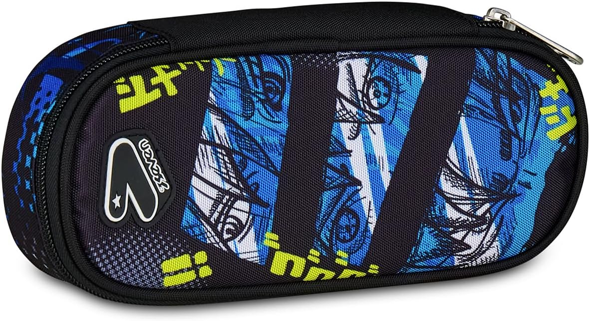 DESIGN MODERNO: Astuccio portapenne Round Plus con motivo Japan Mood in blu, nero e giallo, perfetto per organizzare il materiale scolastico con stile MATERIALE SOSTENIBILE: Realizzato in tessuto 100% poliestere riciclato PET, combinando praticità e attenzione all'ambiente ORGANIZZAZIONE INTELLIGENTE: Dotato di elastici portapenne su tutti i lati interni per una disposizione ordinata degli strumenti di scrittura CARATTERISTICHE PRATICHE: Apertura a zip completa e scomparto interno spazioso per massima accessibilità e organizzazione COMPATIBILITÀ: Perfettamente abbinabile con lo zaino Seven The Double per un set coordinato e funzionale