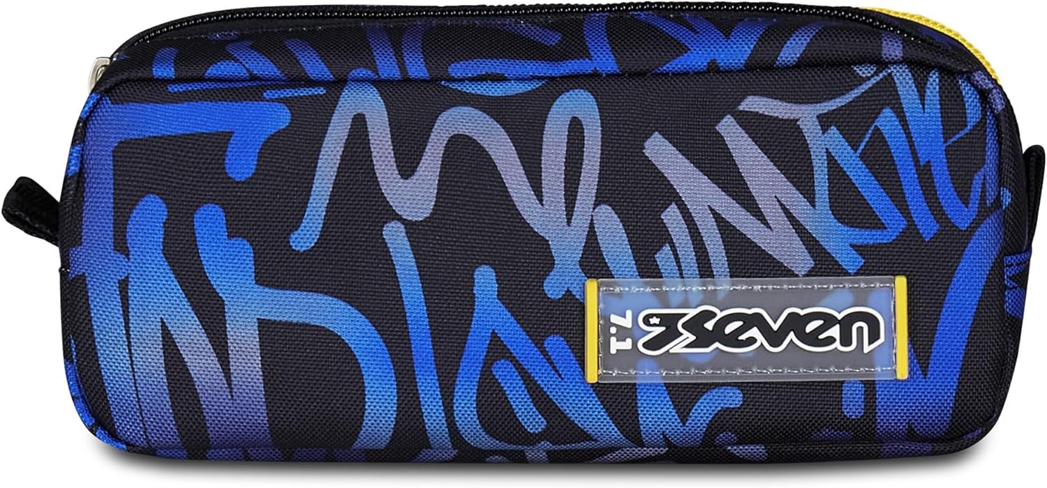 Seven Scuola Bustina Doppia, Blu, Tasca Interna e Tasca Laterale con Passanti Elastici Portapenne, Accessori Zaino, Scuola Elementare e Media, Bambino e Ragazzo