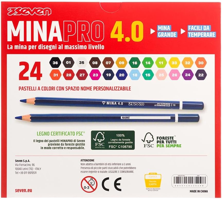 Fusto a chiave esagonale 7,6 mm. Mina grande 4.0. Legno certificato FSC. Facile da temperare, con i più comuni temperini, dotati almeno di due fori. Pastelli a colori con spazio nome personalizzabile DIMENSIONI : 21 X 18,5 X 2 cm item dimensions: 7.09 inches