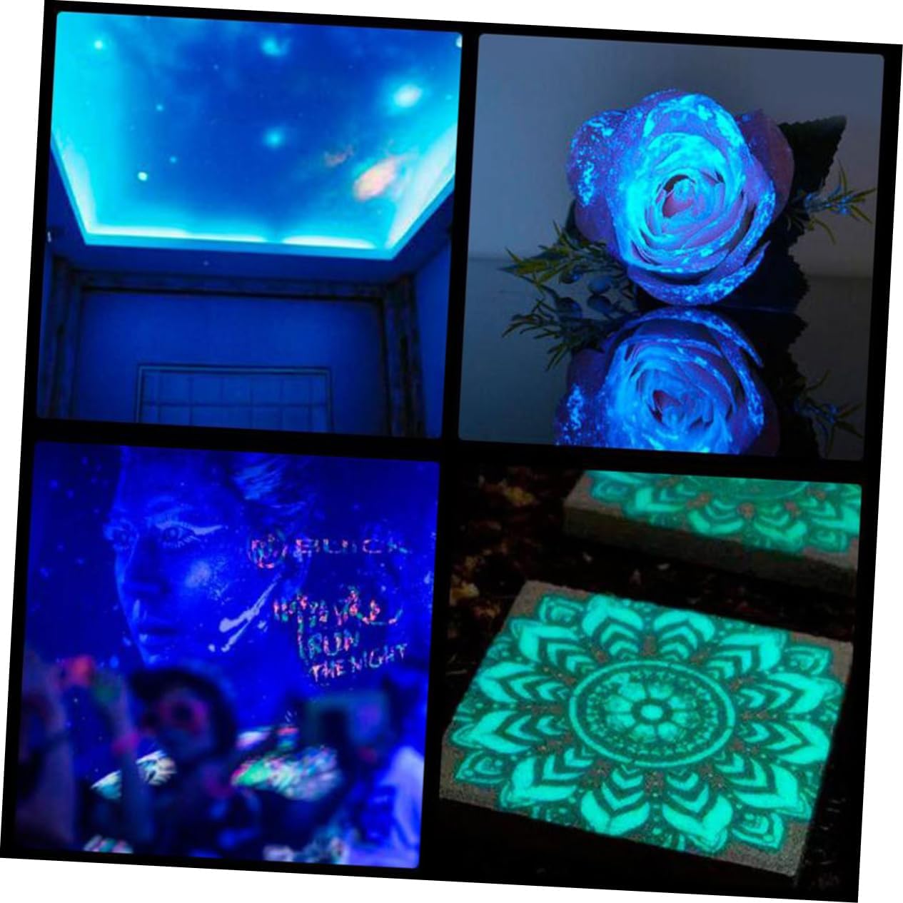 Pigmento fosforescente: facile da applicare con le dita o con un pennello sottile, puoi applicarli su tutto ciò che desideri. Vernice fosforescente: consistenza densa e cremosa, asciuga rapidamente sulla pelle e dura tutta la notte. Pigmento da disegno: per una carica rapida e intensiva, consigliamo vivamente la fonte di luce diretta e brillante. Vernice fluorescente: per eventi in discoteca, rave, costumi in maschera, sagre, feste per bambini, halloween, scuole di ballo, concerti, spettacoli. Vernice luminosa: basta caricare il pigmento che illumina buio alla luce del sole o qualsiasi fonte di luce diretta.