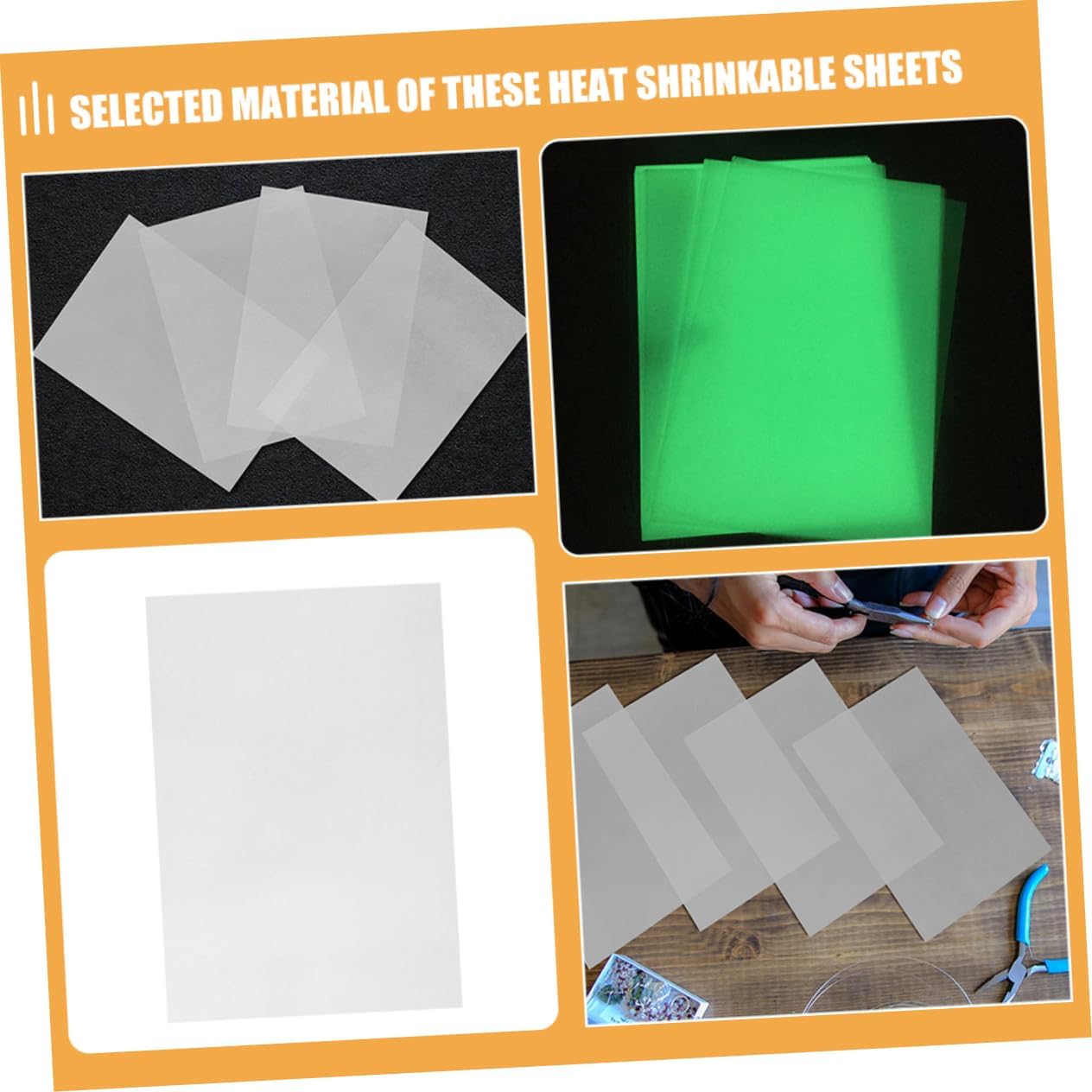 Forniture per il fai da te: bagliore notturno: l'effetto della luce notturna è evidente, può emettere luce buio e migliorare l'effetto visivo dei lavori fai da te, pellicole termoretraibili Fornitura per disegni: può essere tagliata liberamente, comoda da usare e può soddisfare le tue esigenze fai da te, fornitura artigianale Materiale fatto a mano: è una calza di capodanno o di natale adatta ai bambini, che può far passare loro il tempo noioso, fornitura fai da te Carta termoretraibile: saranno compleanni, natale e vacanze molto creativi, speciali e caldi, forniture artigianali creative Fai da te: questo foglio termoretraibile possiede una forte capacità di resistenza all'usura e alla rottura, una pellicola termoretraibile molto durevole