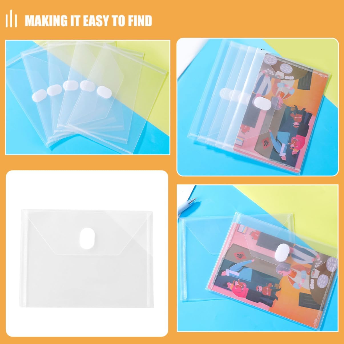 Visibilità chiara: il design trasparente consente di identificare rapidamente il contenuto senza aprire la busta, risparmiando tempo, porta ricevute, tasca per contanti Materiale robusto: realizzata in materiale pp spesso, questa busta offre una protezione impermeabile per i tuoi documenti, cartelle trasparenti in plastica, custodia per denaro contante Chiusura efficiente: la chiusura a nastro offre un'apertura e una chiusura della busta, garantendo un facile accesso, scatola organizer per buste, astuccio trasparente Compatto e portatile: le sue dimensioni ridotte lo rendono adatto per essere inserito in portafogli, piccole borse o quaderni, rendendolo comodo da trasportare, portadocumenti, buste per contanti Costruzione: realizzata in materiale pp spesso, questa busta è impermeabile, offrendo una protezione affidabile, cartelle di plastica trasparente, buste per contanti per la stesura del budget
