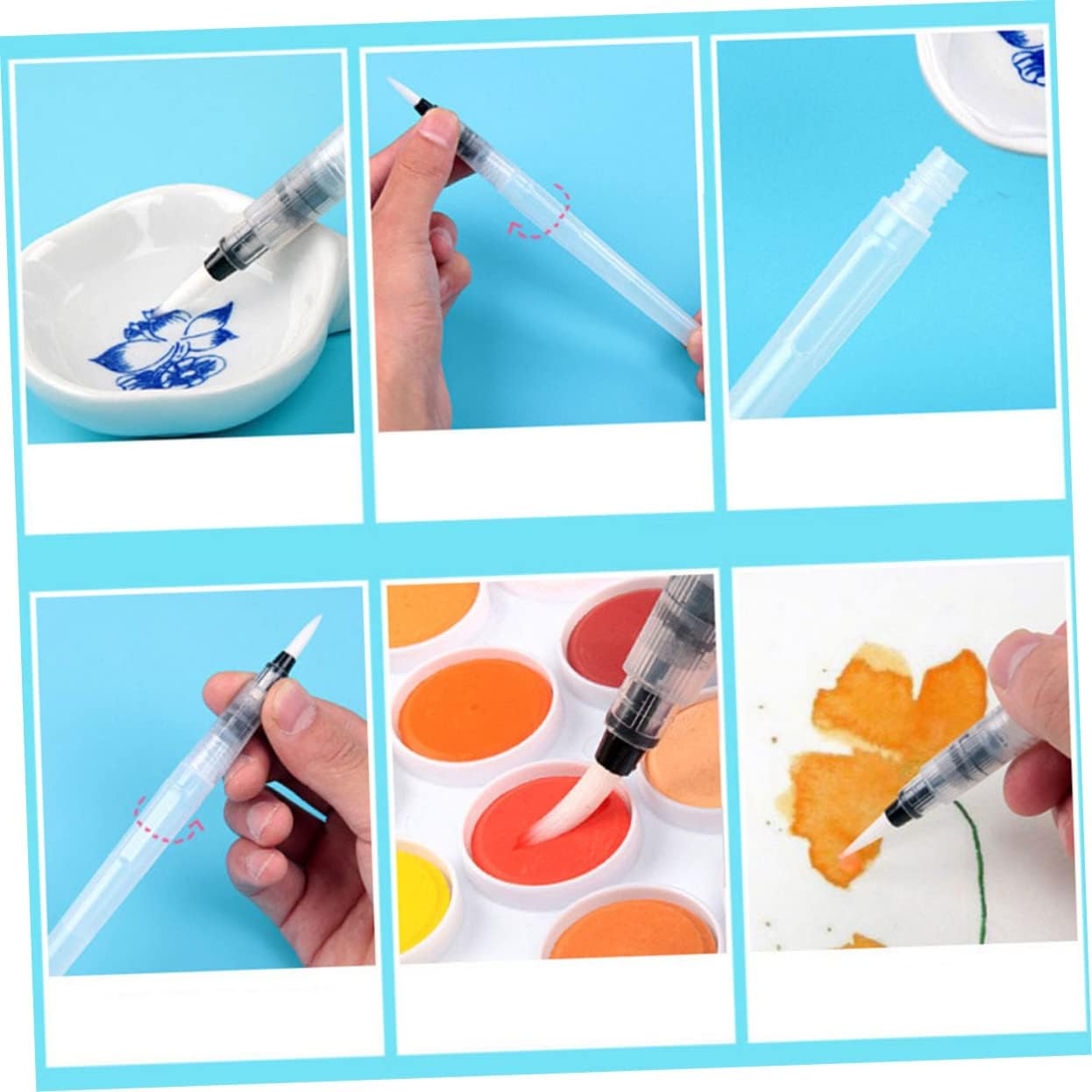 Pennello per acquerello: facile pulizia: questi pennarelli per acquerello sono adatti a tutte le esigenze di colorazione dell'acqua, che sono ben realizzati e ben sigillati, durevoli e puoi semplicemente pulirli con acqua dopo l'uso Tavole per acquerello per dipingere: ottime per colori solidi o pigmenti in polvere, da utilizzare con pastelli ad acquerello, pennarelli e matite per diffondere e uniformare i colori. Pennelli per acquerello: 🖌🎨 pennello per acquerello portatile per disegnare in movimento, puoi anche mettere il pennello per acquerello in tasca, proprio un pennello tascabile. ideale per i principianti e gioco per i bambini nella pittura. Pennelli per acquerelli: facili da usare e da controllare: basta svitare il fusto delle per acquerelli per aggiungere acqua o inchiostro e spingere il fusto per controllare facilmente il flusso di inchiostro o acqua; assicurarsi che l'acqua sia inferiore a 2/3 del volume della penna quando riempie l'acqua nella penna Tavola per acquerello: i pennelli verranno utilizzati dopo.