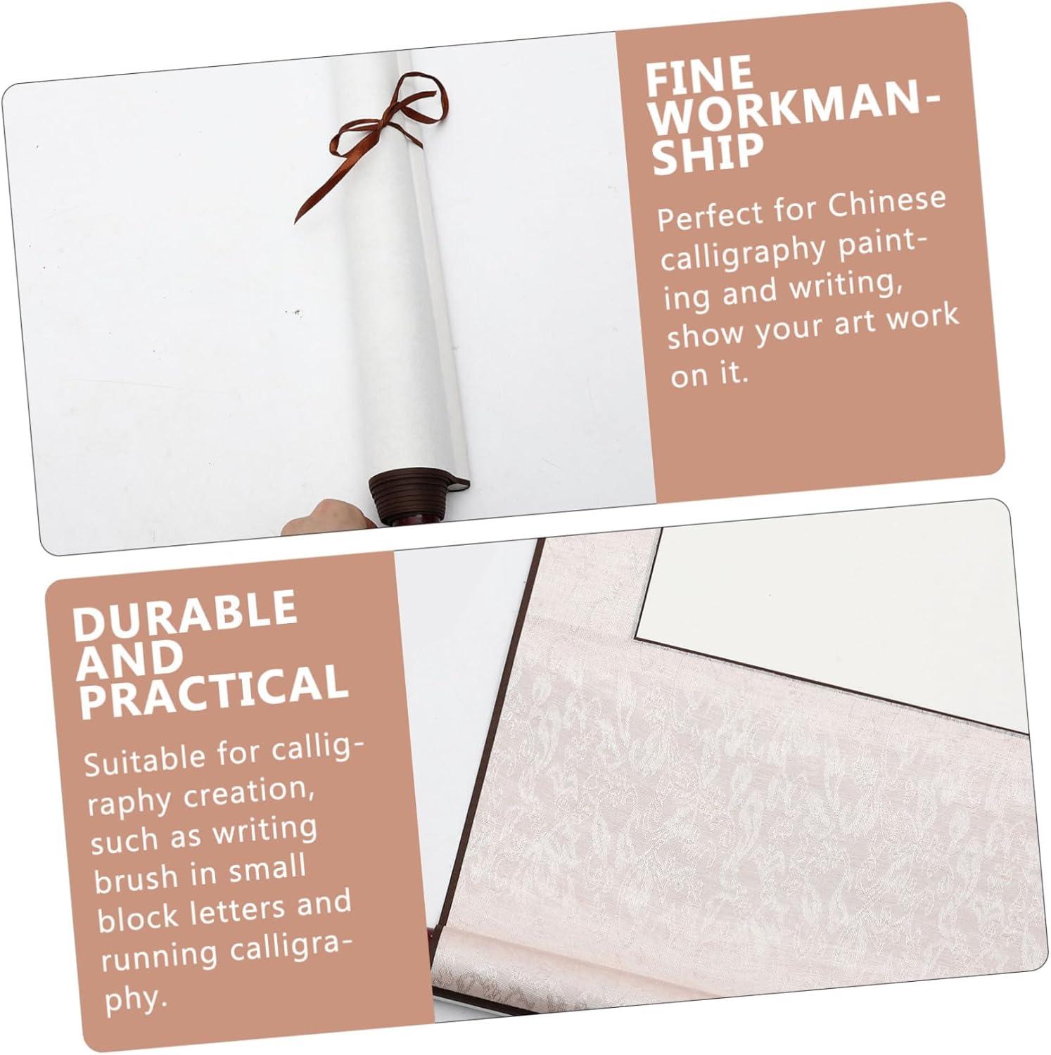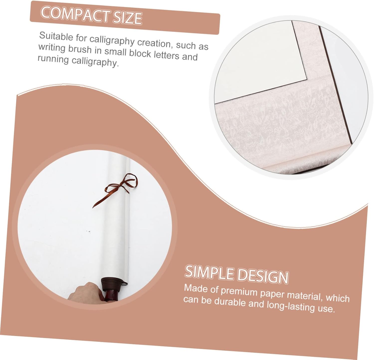 Rotolo per pittura: adatto per la creazione di calligrafia, pennello per scrivere in stampatello minuscolo e calligrafia corrente. Rotolo da disegno vuoto: la carta da pittura multifunzione è ottima per la pittura cinese o per le opere d'arte ad acquerello, un simpatico aiuto. Rotolo di carta bianca vintage: questo prodotto è un ottimo regalo per i principianti e gli amanti della calligrafia cinese. Scorrimento per calligrafia e pittura: è facile opere d'arte vivaci, può essere appeso in casa, in soggiorno, in camera da letto, ecc. Rotolo sospeso: con un buon assorbimento d'acqua, ottimo per kanji, calligrafia a pennello, pittura con inchiostro sumi, pittura ad acquerello, ecc.