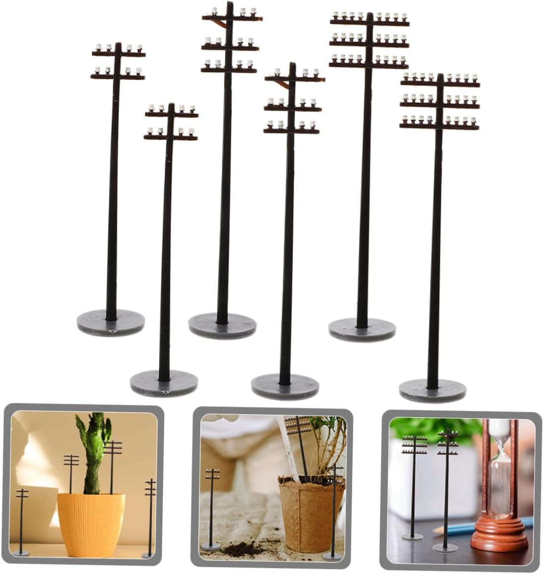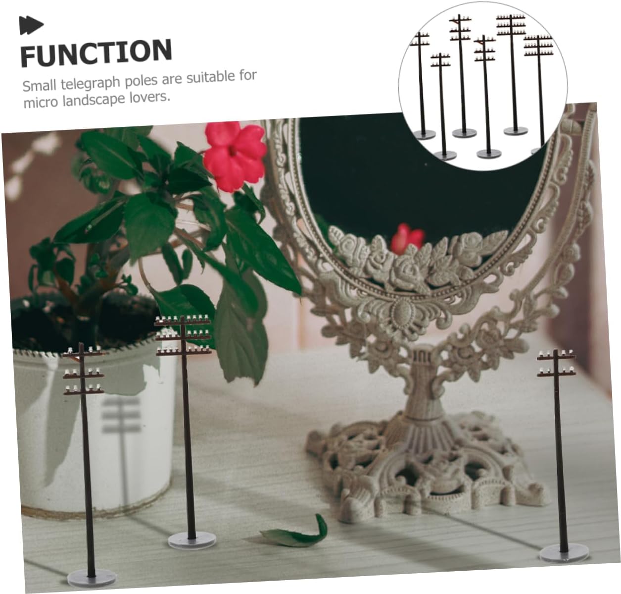 Decorazione da tavolo in micro paesaggio di sabbia: puoi usarla per decorare micro paesaggi, case delle bambole, divertenti e interessanti da fare fai da te, mini palo del telegrafo Pali del telegrafo da tavolo di sabbia: usa questo mini accessorio da tavolo di sabbia fai da te per decorare il tuo tavolo di sabbia, che è decorativo e unico, pali del telegrafo in miniatura Modello di pali telegrafici in miniatura: sicuro e comodo da usare, non facile da rompere o deformare, riutilizzabile e può essere applicato per lungo tempo, modello di scenario del treno ferroviario Pali del telefono fai da te: superficie liscia, aspetto semplice e vivido, decorativo, un delicato ornamento per la scena del tavolo di sabbia, micro pali del telegrafo Mini oggetti di scena: modelli leggeri e compatti, facili da usare e comodi da riporre, pratici e decorativi, pali del telegrafo scenico