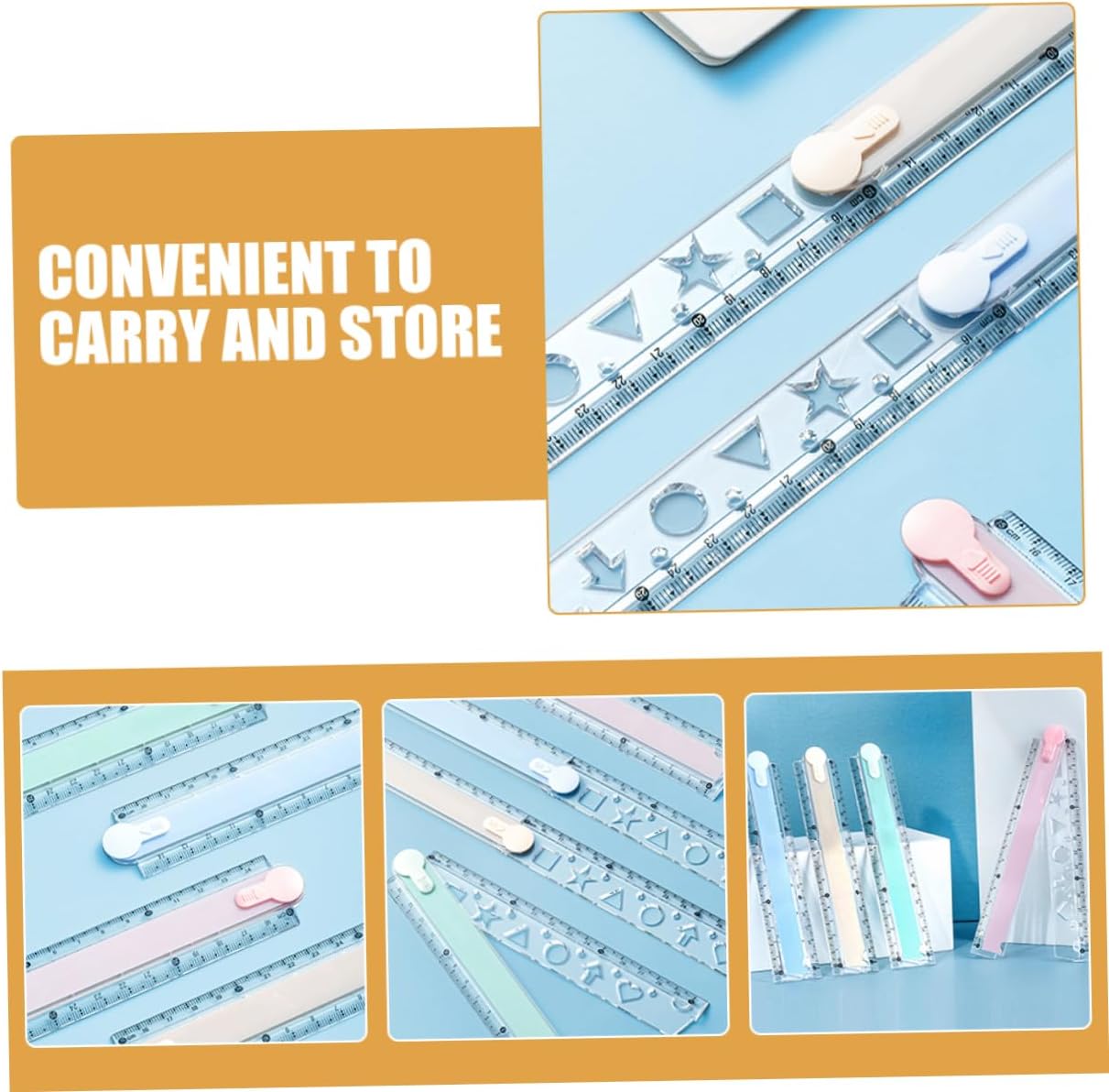 Disegno di precisione: adatto per disegnare accuratamente forme geometriche, migliorando l'efficienza di apprendimento degli studenti, adatto per l'uso in classe che per i compiti a casa, di disegno, righello di plastica pieghevole Multifunzionale: adatto per disegnare quadrati, triangoli, cerchi, frecce, cuori e stelle, offrendo praticità per vari compiti, righello da 30 cm, righello pieghevole per disegno geometrico Plastica: realizzato in materiale leggero e plastica, che garantisce la resistenza all'uso a lungo termine senza rompersi facilmente, righello di misurazione matematica, righello per architetti Compatto e portatile: il righello in cm è facile da trasportare e riporre in astucci o borse, righello multifunzionale, righello in plastica flessibile Geometria accurata: consente un disegno geometrico preciso, migliorando l'efficienza di apprendimento degli studenti, adatto per compiti in classe e a casa, righello metrico, righello di ingegneria