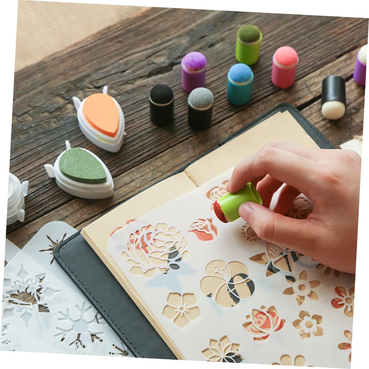 Tampone per inchiostro per : questo set di strumenti per il disegno fai da te è facile da usare e ti aiuterà a creare il tuo progetto, miscelazione dell'inchiostro per le dita Pratico tampone per inchiostro: la spugna non assorbe facilmente l'inchiostro e può colorare bene i tuoi lavori fatti a mano, stampo da disegno Modelli per pittura: devono essere puliti in tempo dopo l'uso prima di poter essere riutilizzati, tamponamento con spugna per dita Modelli di righello per pittura: sono forniti 5 modelli di stile diversi per rendere i tuoi graffiti più convenienti, miscelazione dell'inchiostro Pratico strumento per spalmare il tampone: leggero e portatile, facile da trasportare e riporre, design dalla forma unica, molto elegante e pratico, strumento per spalmare il tampone sulle dita