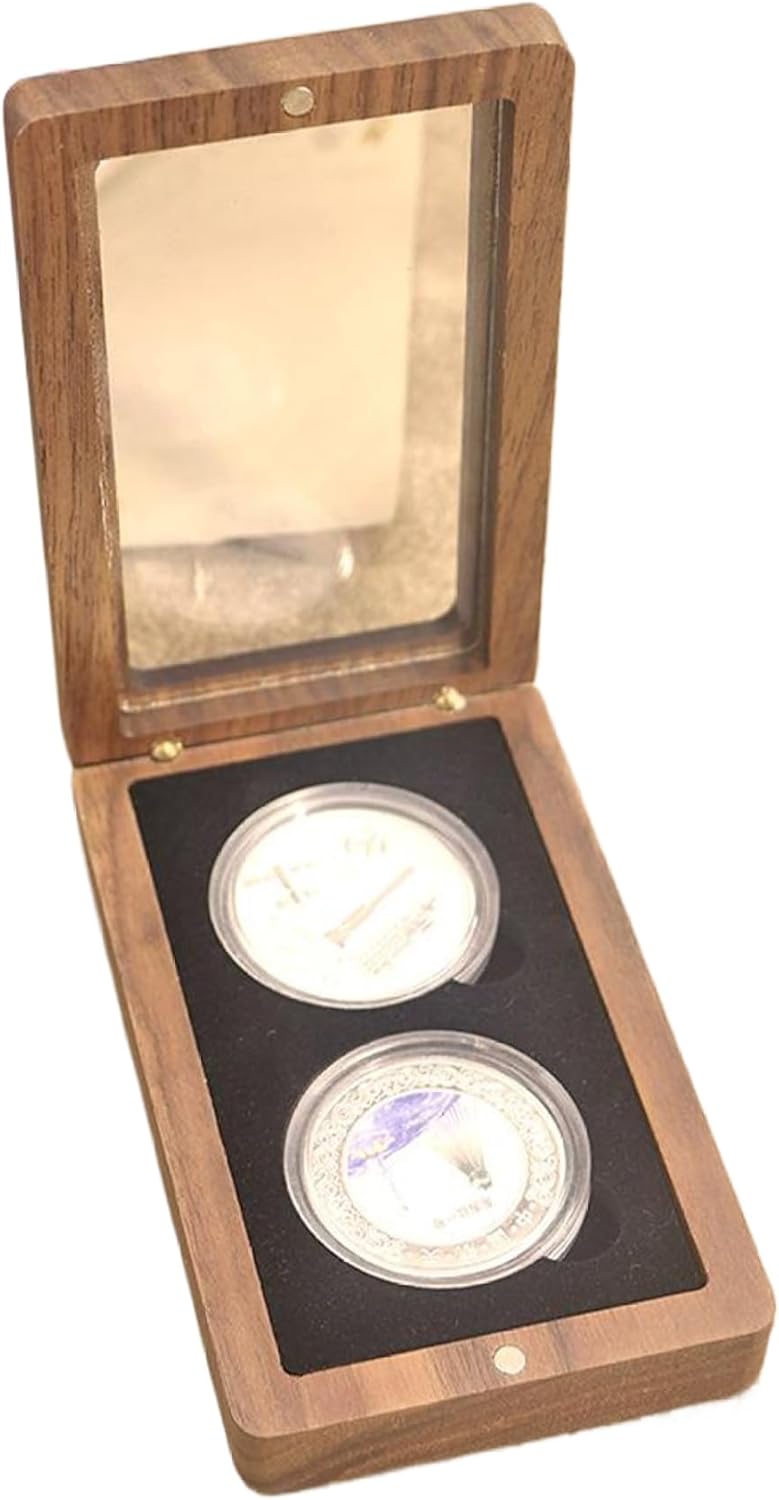 Scelta regalo premurosa: alla ricerca del regalo perfetto per un collezionista di monete o qualcuno di speciale?.Questo display di monete fa un regalo premuroso per compleanni o vacanze, aiutandoli a mostrare la loro collezione aggiungendo un tocco personale al loro arredamento. Elegante display: mostra la tua carriera moneta di sfida con stile con il nostro display di monete per monete in legno da 4.5x2.8x1,1 pollici..La ricca finitura in legno aggiunge una raffinatezza a qualsiasi spazio, rendendola l'aggiunta perfetta alla tua casa o in ufficio. Opzioni di archiviazione versatili: questo titolare di monete non è solo per la moneta di sfida!.Può contenere fino a due monete e fornire spazio aggiuntivo per anelli, orecchini, gioielli, accessori elettronici, badge, monete di aquila d'argento e monete Morgan, rendendolo una soluzione di conservazione multifunzionale. Chiusura magnetica: l'innovativa design della chiusura magnetica di questa custodia a moneta mantiene la tua preziosa moneta in atto..Non più preoccuparti di fuoriuscite accidentali o casi aperti;.Basta scorrere il coperchio chiuso e la moneta rimarrà al sicuro ed elegantemente visualizzata. Copertura di vetro protettiva: la vetrina di monete presenta una copertura di vetro protettiva, garantendo che la moneta sia sicura da polvere e danni consentendo una facile visualizzazione..Ammira la tua collezione senza gestire la moneta, preservando le loro condizioni per gli anni a venire.