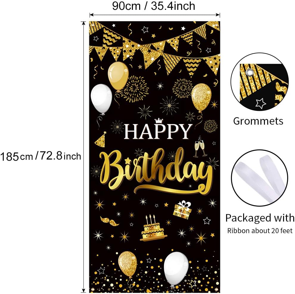 【Fantastica decorazione di compleanno】 Questo è uno striscione per pannello porta appositamente progettato per la festa di compleanno. Nero misterioso come base, oro elegante come motivo decorativo. Stampato con palloncini, torte, auguri di buon compleanno e altri cartelli per feste. Pieno di vitalità e divertimento, adatto a uomini e donne. 【Dettagli del banner per la copertura della porta di compleanno】 La dimensione del banner di sfondo del banner per la copertura della porta di compleanno per la festa di compleanno è 185 × 90 cm (72,8 × 35,4 pollici). Questo banner per la copertura della porta è leggero, lavabile, resistente agli strappi, pieghevole e riutilizzabile. La stampa su di esso è brillante e non sbiadisce. 【Ampia gamma di applicazioni】 Adatto a molteplici scenari: la decorazione del pannello della porta del compleanno può essere attaccata alla porta esterna o alla porta della stanza di casa, alla porta della cucina e così via. Non solo con porte, finestre, pareti o con palloncini e fiori, devi solo appenderlo ovunque tu voglia decorare. 【Facile da installare】 L'installazione di questo sfondo per la porta del compleanno è comoda e facile. E' dotato di cavo lungo 6 metri. Devi solo dividere il cavo nella lunghezza appropriata in base alle tue esigenze, quindi appendere il banner di sfondo della copertura della porta nel punto in cui desideri installarlo. È facile da installare e rimuovere. 【Elementi essenziali per la festa di compleanno】 La decorazione di questo sfondo per il pannello della porta di compleanno è un'eccellente decorazione per la festa a tema di compleanno, che migliora l'atmosfera allegra della festa di compleanno e può anche essere utilizzata come sfondo fotografico per la festa di compleanno. Rendi la tua festa di compleanno impressionante e indimenticabile. Buona festa di compleanno ~