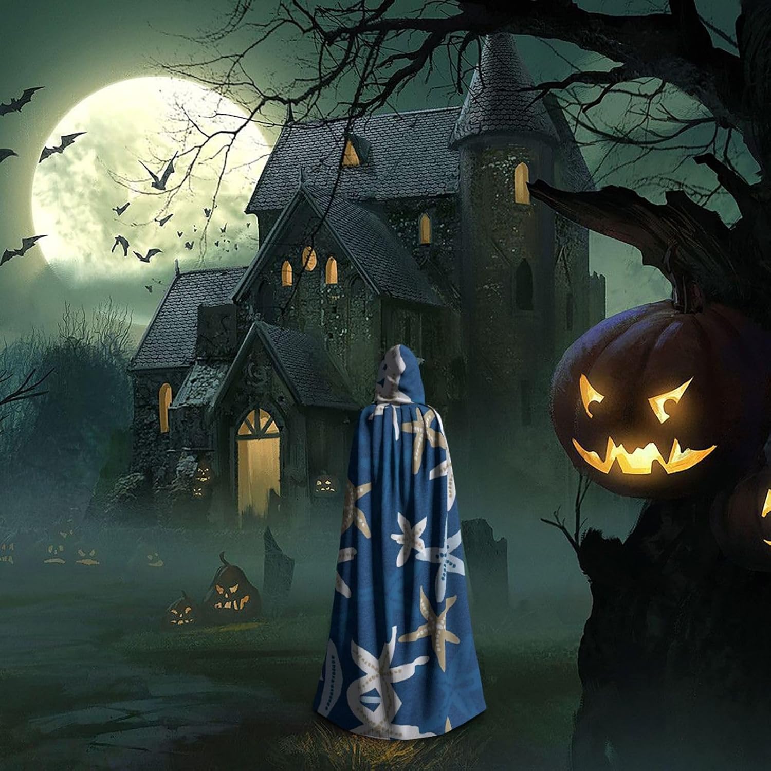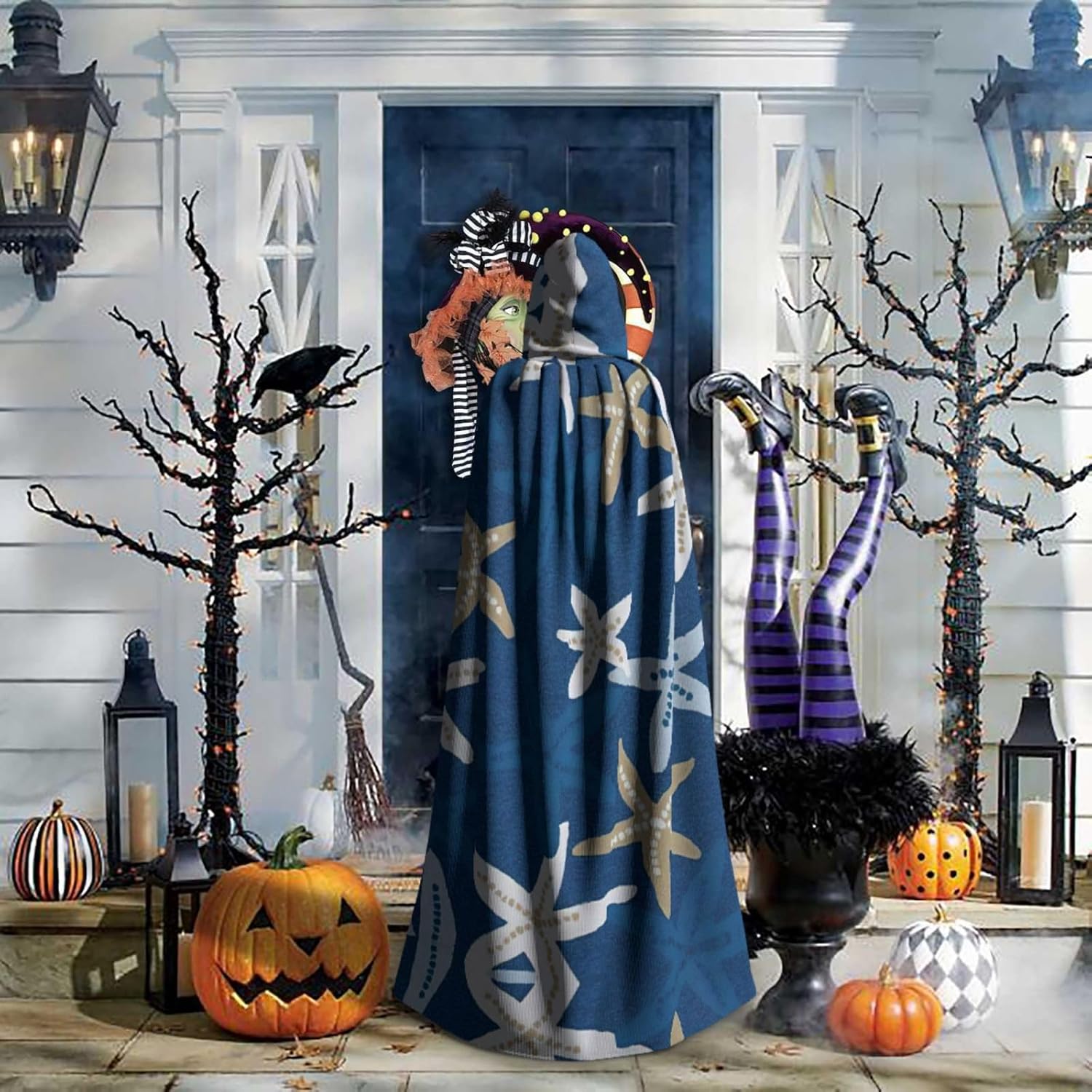 Sfondo blu Stella di Mare Veste Mantello Con Cappuccio Halloween Mantello Medievale Mantello Mago Mantello Nero Mantello Adulto Strega Costume