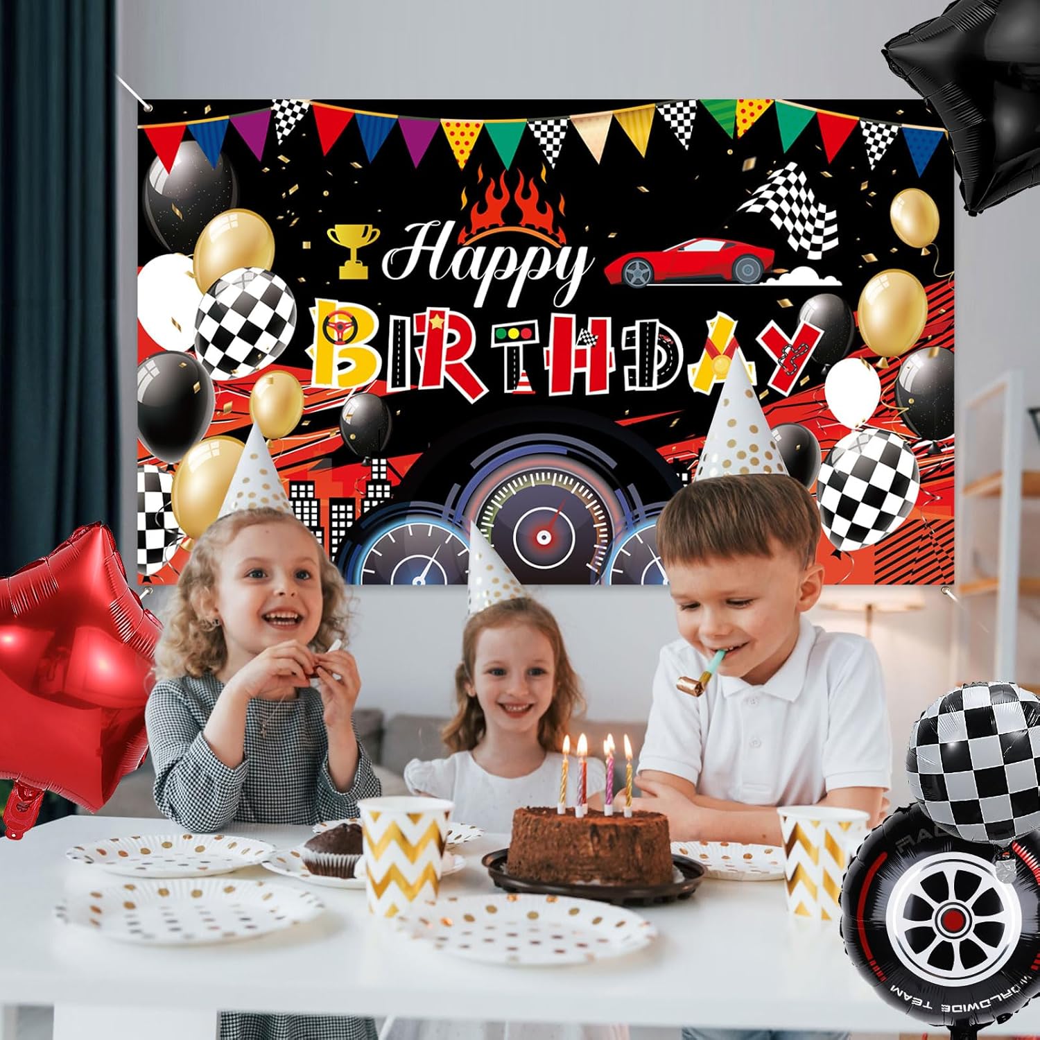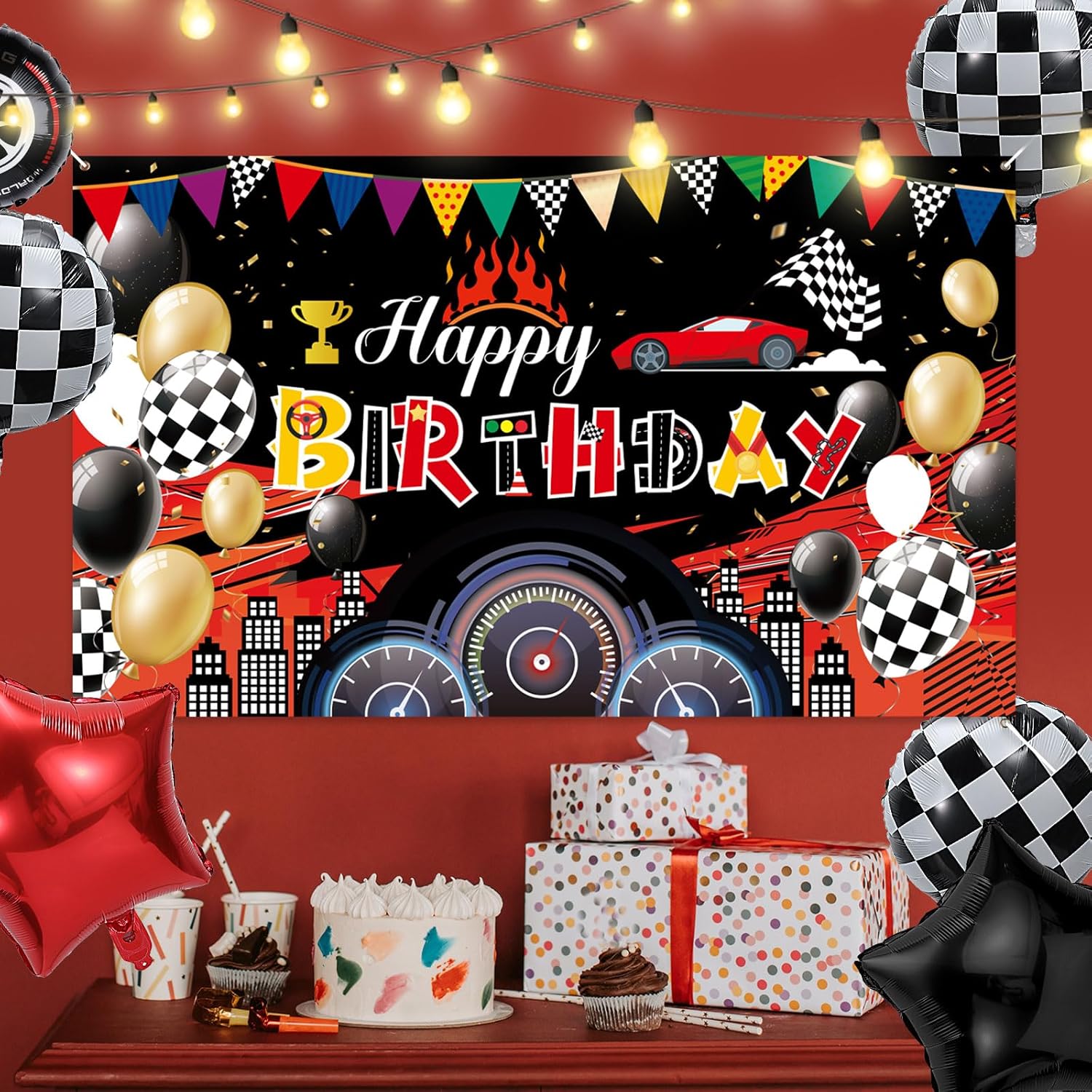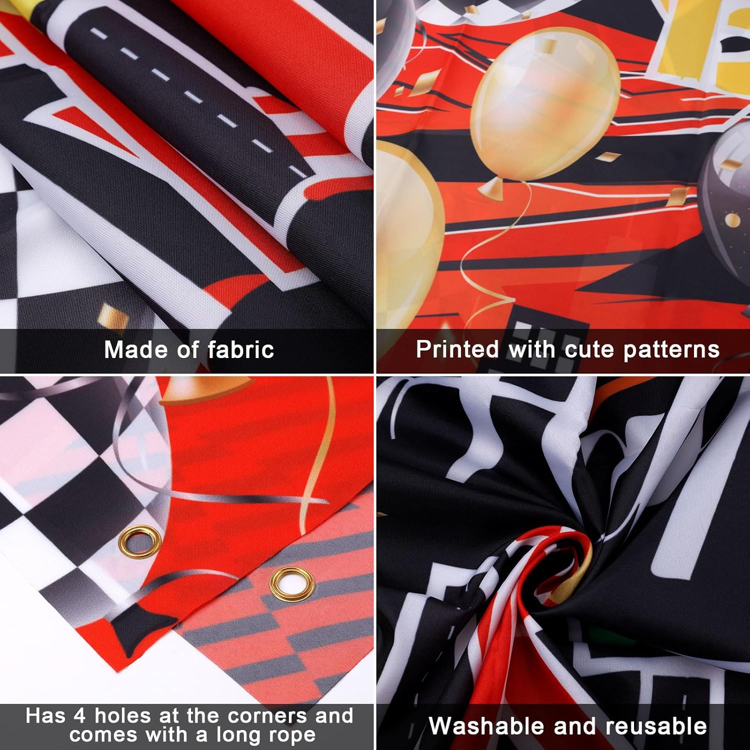 Contenuto del pacchetto: otterrai uno sfondo di buon compleanno con un bel design a tema da corsa, che può decorare bene la tua festa di compleanno e rendere popolare la tua festa. Dimensioni del prodotto: la dimensione del nostro sfondo di buon compleanno è di circa 185,5x112,5 cm, che è abbastanza grande da decorare la tua stanza e il tuo cortile e può rendere la tua festa di compleanno piena di atmosfera emozionante. Materiale premium: questo banner a tema delle corse è realizzato in fibra di poliestere di buona qualità, che è morbida e confortevole da toccare, non facile da danneggiare e può essere utilizzato a lungo. Aspetto interessante: il nostro sfondo di compleanno utilizza molti elementi a tema da corsa, come dashboard, trofeo, auto da corsa, bandiera a scacchi in bianco e nero, palloncino, l'intero sfondo presenta una sensazione molto ardente, che può creare una festa a tema da corsa particolarmente divertente per te. Design ponderato: questo background banner è molto facile da installare.Ha un buco riservato in ogni angolo ed è dotato di una lunga corda.Puoi facilmente appendere lo sfondo sul muro con una corda lunga.Inoltre, questo sfondo può essere lavato.Dopo l'uso, puoi pulirlo e metterlo via e puoi continuare a usarlo la prossima volta.