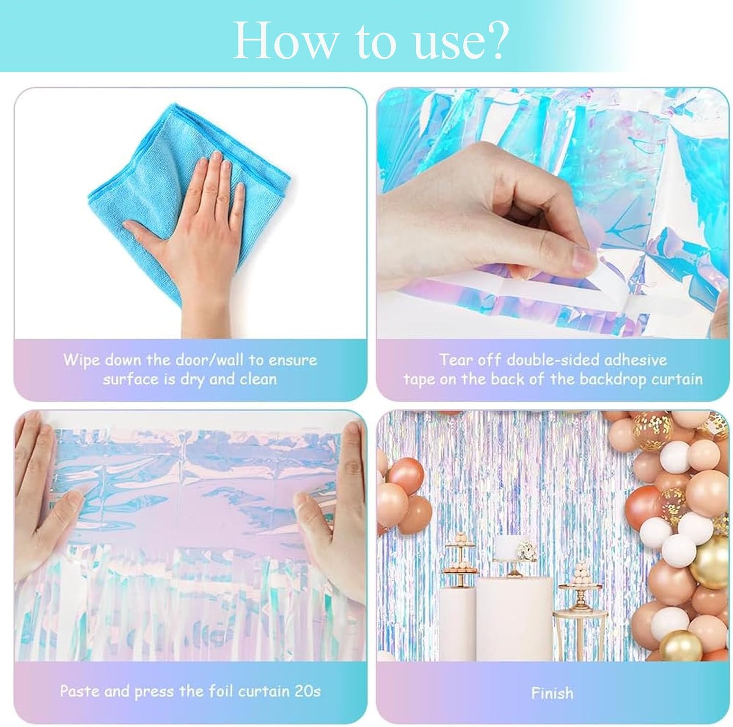 Accattivante: il materiale in lamina iridescente crea un effetto scintillante e un design unico che cattura l'attenzione e attira l'attenzione su qualsiasi spazio in cui viene utilizzato. Versatile: questa tenda orpelli può essere utilizzata per una varietà di occasioni, tra cui matrimoni, feste di compleanno, balli e altri eventi speciali. E diversi temi per feste, come sirena, discoteca, Y2K, decorazioni a tema euforia. Facile da installare: la tenda con frange è facile da installare e può essere appesa a qualsiasi superficie con nastro o cordino. Durevole: realizzata con materiali di alta qualità, questa tenda è resistente e di lunga durata, quindi è perfetta per molteplici usi. Leggera: il design leggero della tenda a frange la rende facile da trasportare e riporre quando non in uso.