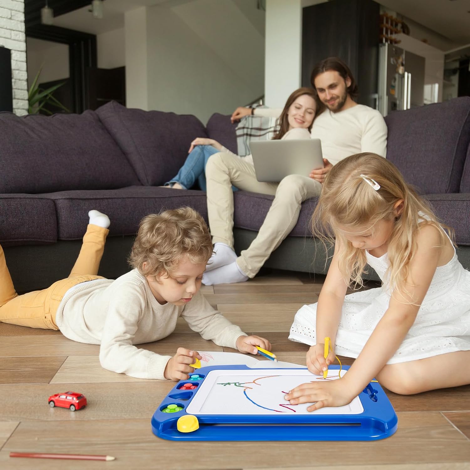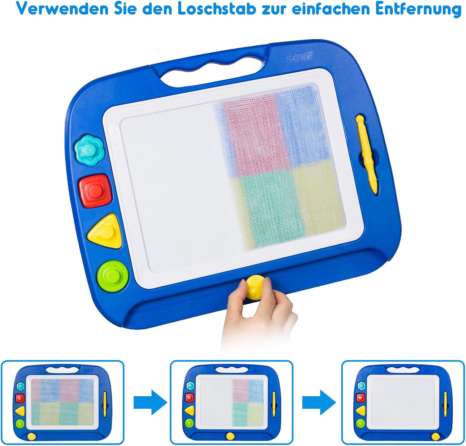 Ampia area di disegno: l'area di disegno della lavagna magica arriva fino a 26*20 cm, offrendo ai bambini molto spazio per esprimere la propria immaginazione artistica sulla lavagna magnetica migliorata con linee vivide e morbide. Non perdere i timbri: i timbri migliorati sono magnetizzati per rimanere facilmente collegati al tavolo da disegno. Il tuo bambino potrà portare la tavola ovunque senza perdere i francobolli. Regalo per bambini in età prescolare: i tuoi bambini possono esprimere le proprie idee nei disegni, esercitarsi con le lettere e l'aritmetica attraverso gli scarabocchi. È un regalo giocattolo ideale per i tuoi bambini in età prescolare! Facile da cancellare: la gomma scorrevole migliorata è resa più grande e più liscia per consentire ai bambini di spostare e cancellare agevolmente i propri disegni. La gomma ha anche una forma carina ed ergonomica per una facile presa. Sicuro da giocare: questa tavola magnetica per pittura è realizzata con una struttura in plastica ABS e PS di alta qualità, priva di BPA e sicura per i tuoi bambini. La tavola da pittura magica ha anche bordi arrotondati e una punta della penna curva che protegge il tuo bambino da possibili lesioni.