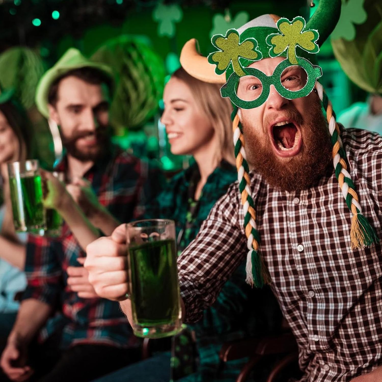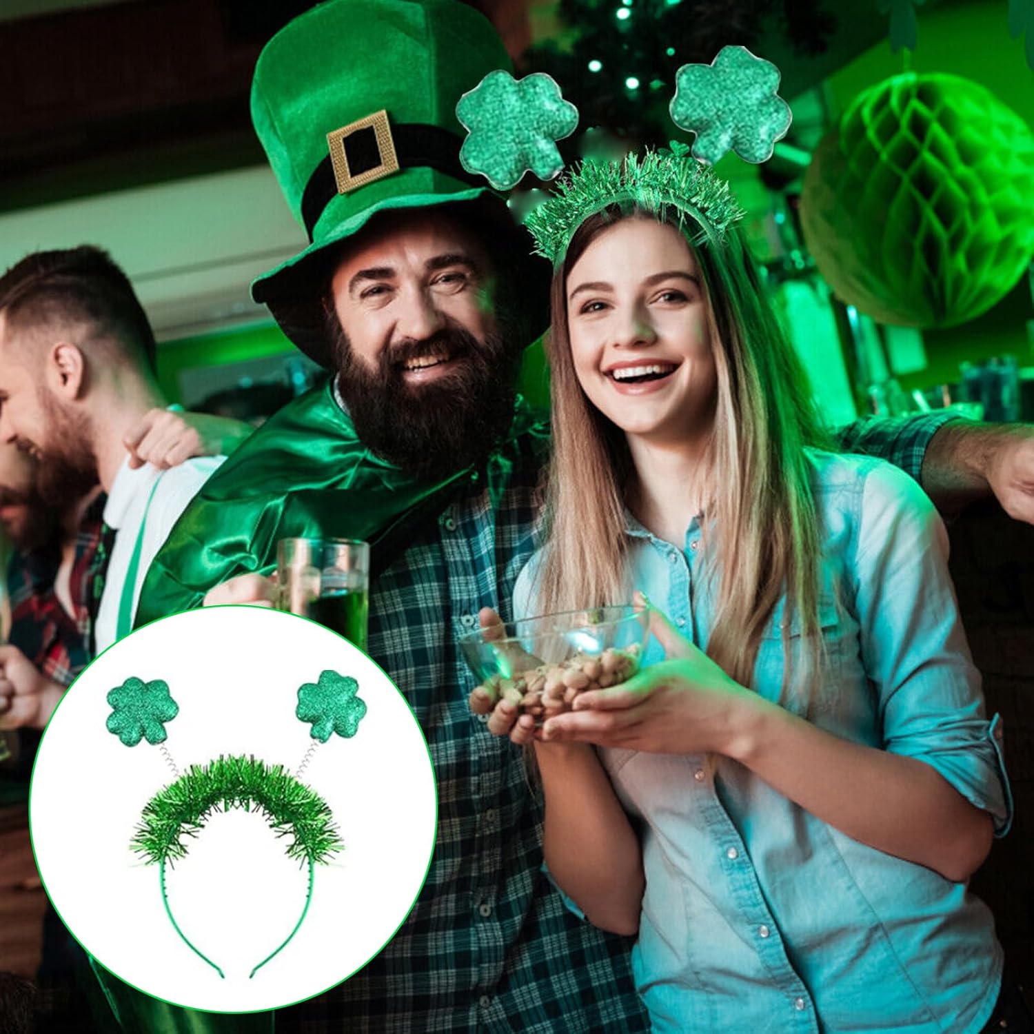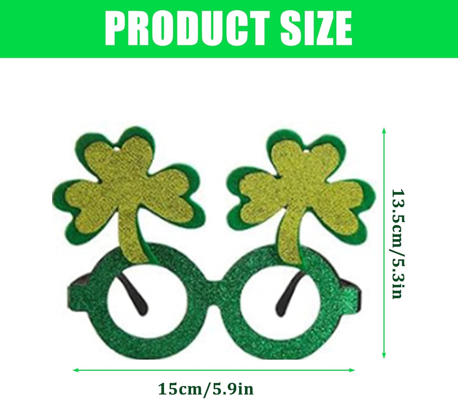 Shamrock Occhiali Leprechaun Cerchio per Capelli Dichiarazione Moda Karaoke Party Leprechaun Per Le Vacanze Stage Photo Props Caratteristiche: Pronto per andare alle feste dell'Irish Day? Indossa la nostra fantastica fascia! Adulti e bambini possono indossarli, e queste fasce per capelli sono perfette per le feste. Le nostre fasce sono ideali per feste irlandesi, feste di Natale e altre occasioni a cui parteciperai. Ottimo anche per riempire sacchetti regalo, feste, omaggi e premi di gioco. Che tu sia adulto o che ti stia preparando per i tuoi bambini, i frequentatori di feste di tutte le età saranno intrattenuti Con questa accattivante fascia, questi attireranno sicuramente la testa degli altri! Specifiche tecniche: Componenti: Dimensioni degli occhiali: circa 15 x 13,5 cm. Quantità: 12 pezzi. La confezione include: 6 fasce per capelli. 6 paia di occhiali. Nota: 1. Si prega di considerare un margine di errore di 1-2 cm dovuto alla misurazione manuale. 2. A causa delle differenze tra i diversi monitor, l'immagine potrebbe non riflettere esattamente il colore reale.