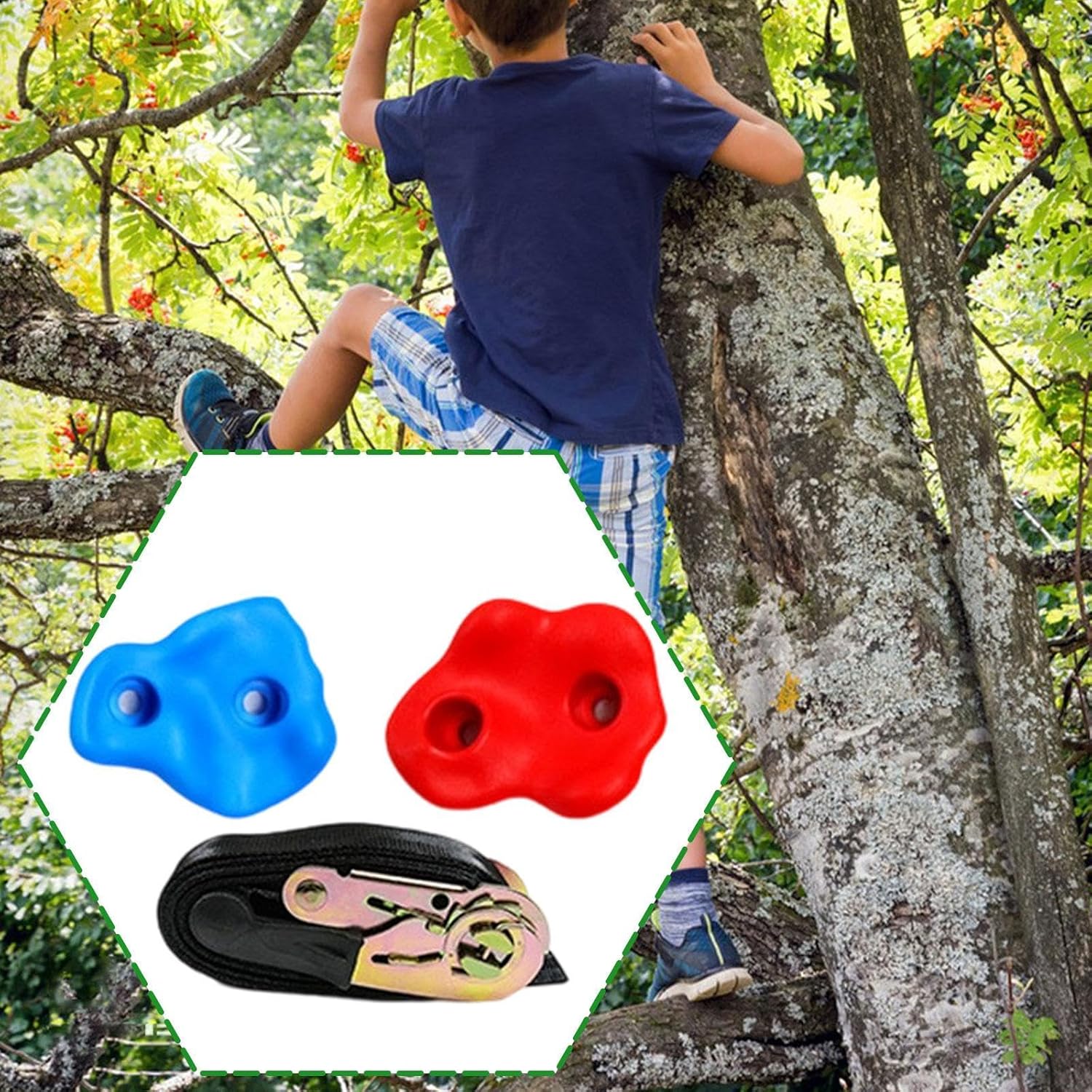 【Installazione semplice e vestibilità regolabile】: Grazie al design a due fori, queste prese da arrampicata offrono un montaggio rapido e senza problemi. Regola facilmente la tensione della cinghia a cricchetto per adattarsi saldamente a varie dimensioni di alberi, garantendo un'esperienza stabile e intuitiva per tutti i giovani scalatori. 【Benefici per la crescita 】: Più che un semplice gioco, queste rocce artificiali da arrampicata sono progettate per favorire sviluppo completo. Aiutano i bambini a sviluppare la muscolare, migliorare l'equilibrio e affinare la coordinazione occhio-mano, aumentando in definitiva la loro sicurezza e promuovendo la crescita fisica. 【Costruzione robusta】: Realizzate in PE, queste prese da arrampicata per bambini sono progettate per un'elevata capacità di carico e prestazioni costanti e affidabili. La struttura robusta, combinata con un robusto di sicurezza integrato, offre la durante ogni attività di arrampicata. 【Impugnatura ergonomica e sicura】: ogni roccia artificiale da arrampicata vanta bordi lisci e arrotondati e una superficie ruvida e antiscivolo, garantendo una presa comoda e . Progettate senza punti di pressione, offrono un supporto affidabile e sicuro per mani e piedini, favorendo un gioco senza preoccupazioni. 【Sviluppo per bambini】: trasforma qualsiasi spazio esterno in un'entusiasmante zona di avventure! Ideali per il gioco in giardino o per allestimenti commerciali, queste strutture per l'arrampicata sugli alberi incoraggiano l'esplorazione attiva all'aria aperta, stimolando le capacità motorie e la creatività dei bambini attraverso un divertimento coinvolgente ed educativo.