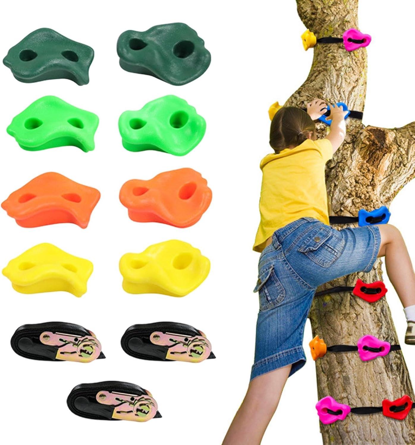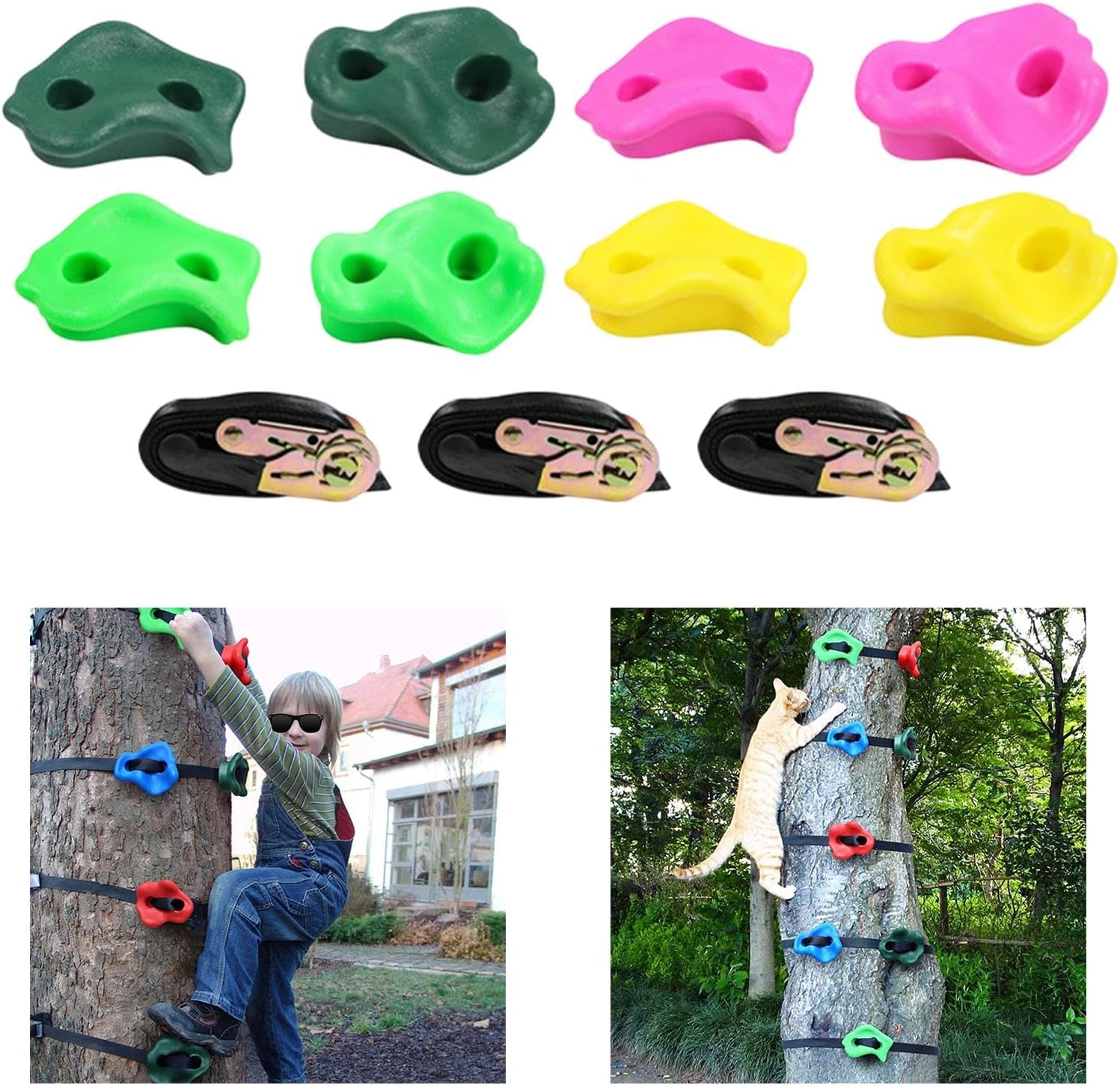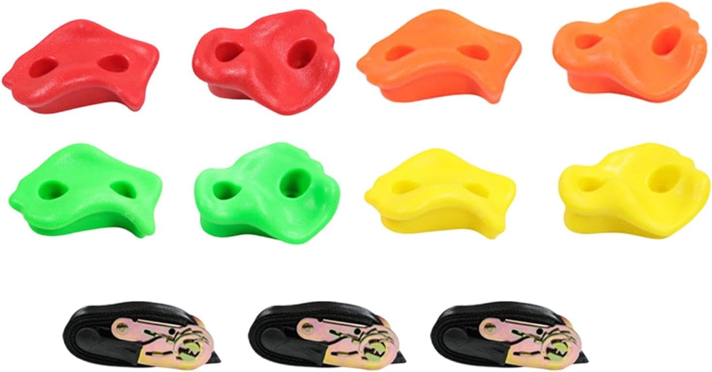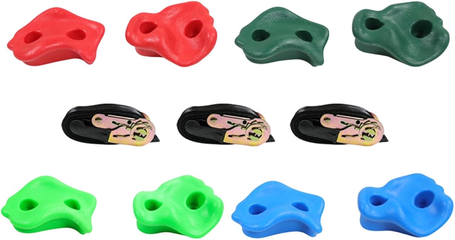 【Materiale】 per parete da arrampicata sono realizzate in ferro PE e poliestere, resistenti alle intemperie e non si rompono, le impugnature testurizzate per piedi e mani facilitano la presa e l'arrampicata dei bambini 【Installazione semplice】Le impugnature per pareti rocciose da esterno sono facili da installare e consentono di costruire una parete rocciosa nella stanza dei bambini e in un parco giochi all'aperto come una palestra, una casa sull'albero, un'altalena, ecc. 【Contenuto della confezione】Confezione da 8 pezzi di pietre per parete da arrampicata con set di accessori. 【Funzione】L'arrampicata su roccia migliora la , la coordinazione e l'equilibrio, rafndo al contempo la fiducia dei bambini 【Applicazione】Set di pietre da arrampicata per bambini. Ottimi giochi all'aperto per bambini che vogliono arrampicarsi e giocare all'aperto.