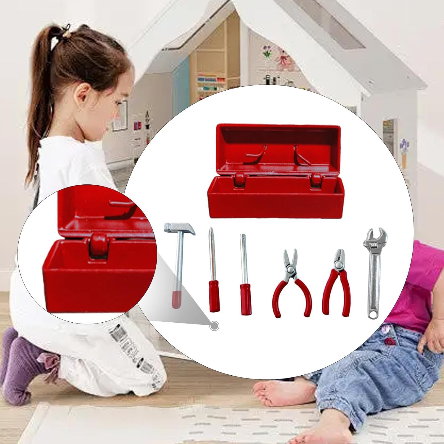 【Regalo ideale】: questa custodia per attrezzi da giardino fai da te in miniatura è un regalo per appassionati di miniature. Include un martello, una chiave inglese, due cacciaviti, una pinza e un morsetto per utensili in una custodia compatta. 【Set in miniatura versatile】: il set di mini utensili può essere facilmente abbinato ad altri accessori agricoli in miniatura per completare la tua casa delle bambole fai da te con giardino delle fate 【Multiuso】Il modello di giocattolo per finte foto è adatto per costruire giocattoli con scenari di tavoli di sabbia, modellini di treni, modelli architettonici, giardini delle fate, micro paesaggi, modelli di scene fai da te, ecc. 【Materiale】: Questo modello di strumento di riparazione in miniatura per casa delle bambole in 1/12 o 1/6 è realizzato in metallo e PP, aggiungendo un tocco di realismo agli accessori della tua casa delle bambole 【Caratteristica】Mini modello di cassetta degli attrezzi in legno, con dettagli realistici, set di utensili in miniatura multifunzionale con dettagli realistici, ottimo per la costruzione e la decorazione di case delle bambole