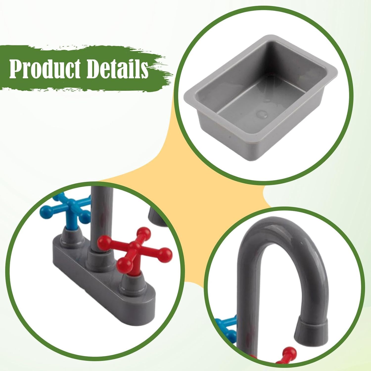 . 【Materiale di alta qualità】: il mini set di giocattoli per lavello da cucina è realizzato in materiale PP di alta qualità e ha una superficie liscia per garantire un gioco sicuro e facile da pulire. La confezione include: ogni confezione include un mini lavello che misura 11,9 cm x 8,4 cm x 4 cm/4,69" x 3,31" x 1,57" e un mini lavello che misura 17,5 cm x 13,2 cm x 3,4 cm/6,89" x 5,20" x 1,34". 【Giocattolo educativo】: questo mini lavello da cucina e set è progettato per migliorare la coordinazione occhio-mano e le capacità motorie e insegnare ai bambini le abilità di vita di base. 【Promuove le abilità sociali e lo sviluppo】: questo set da gioco da cucina è anche un ottimo strumento educativo per la crescita e migliora le capacità sociali e di comunicazione. 【Giocattolo da cucina】 Questo divertente giocattolo da cucina con mini lavello e adatto a ragazzi e ragazze di età compresa tra 3 e 6 anni.