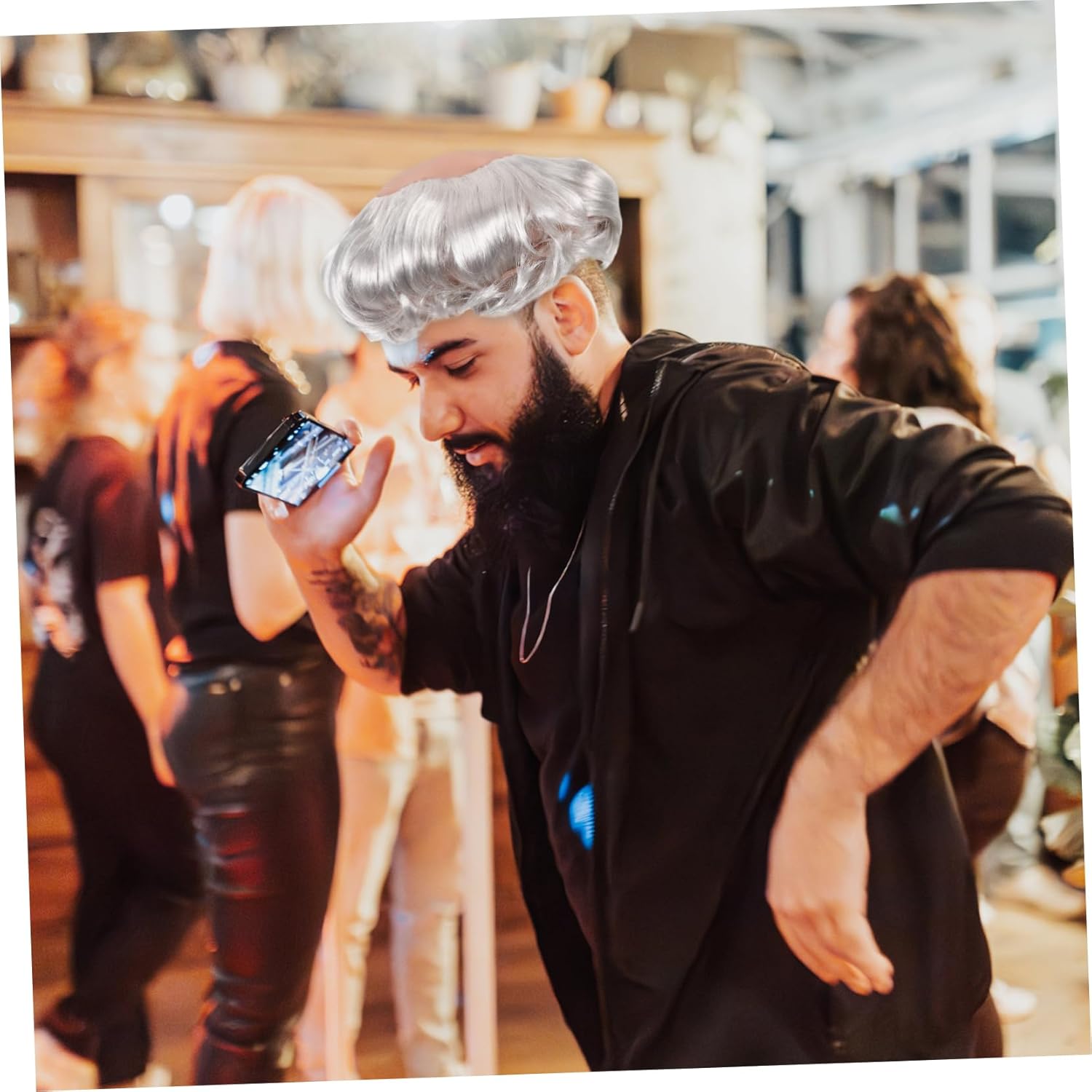 Parrucca da cosplay: realizzata in materiale resistente, la parrucca è leggera da indossare, non facile da strappare, accessorio per costumi di halloween. Parrucche da uomo calvo: la parrucca può essere un accessorio per il tuo costume da cosplay per halloween, per travestirti da uomo calvo, parrucca in maschera Accessorio per cosplay di halloween: questa parrucca calva può essere un accessorio necessario se vuoi vestirti come un vecchio o un uomo calvo, forniture per cosplay di uomini Parrucca per uomini e donne: la parrucca è molto folta e sembra davvero naturale quando la indossi, adatta per la festa di halloween, parrucca calva di halloween Parrucca per festa di halloween: la parrucca di halloween abbina facilmente ai tuoi diversi costumi a tema di halloween, dandoti una parrucca ondulata