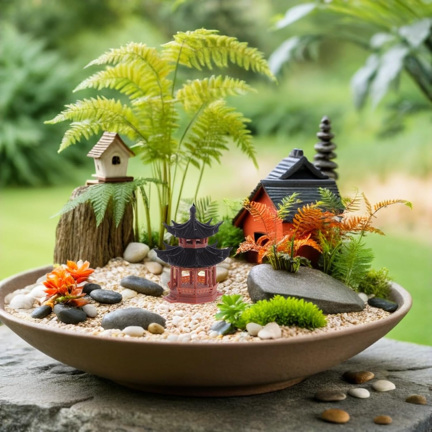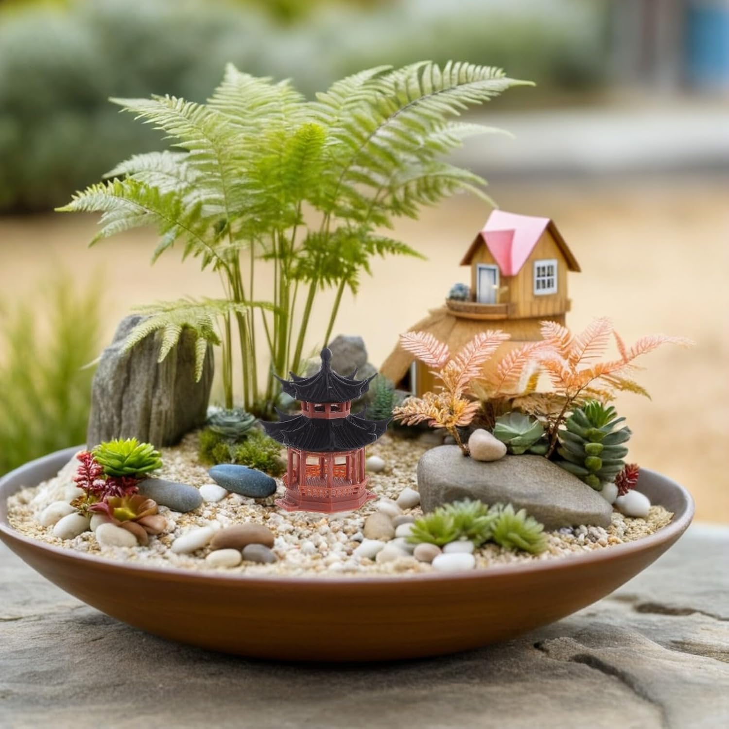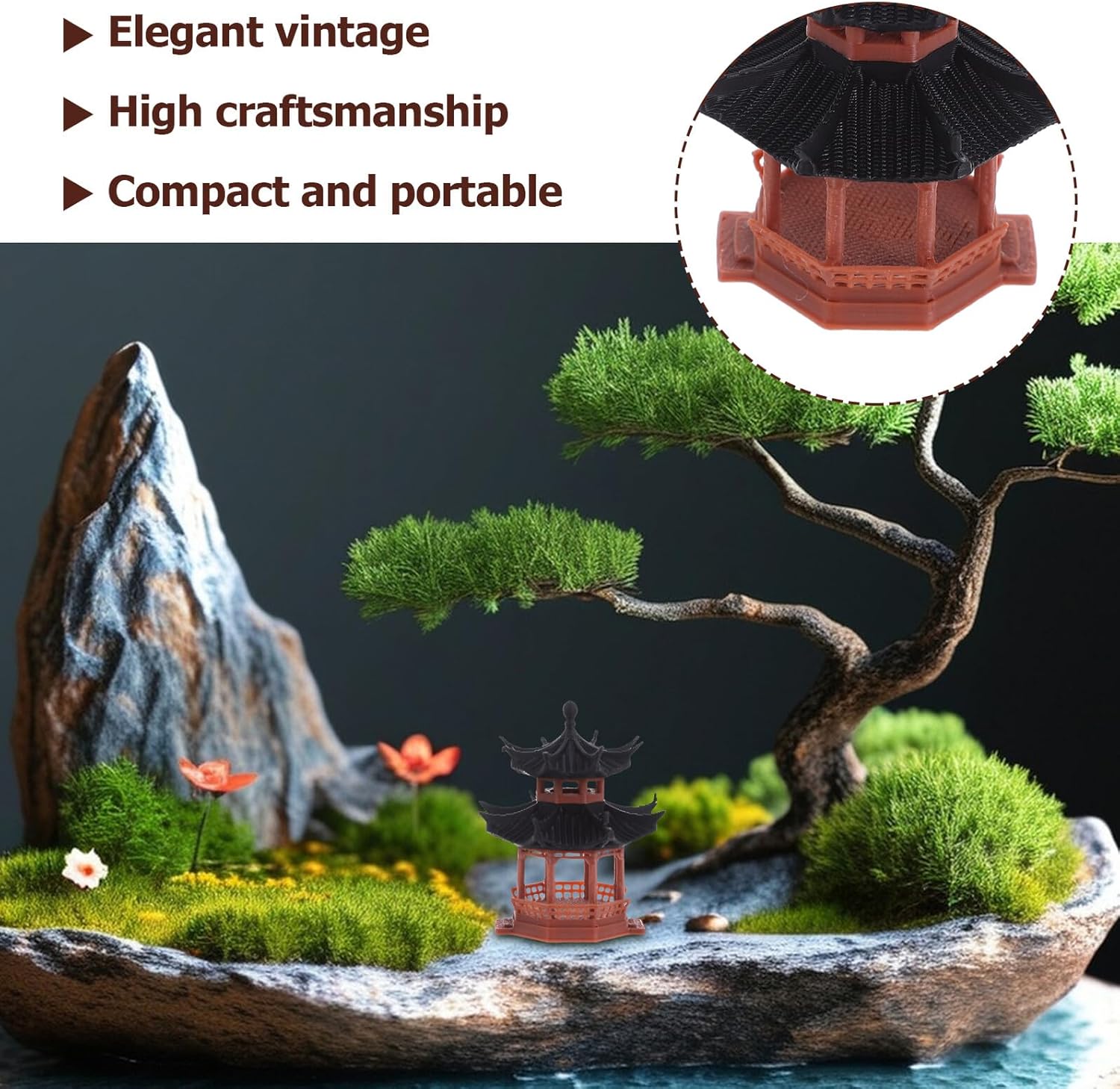 Costruzione robusta: il nostro modello di edificio antico in plastica garantisce bellezza e durata e mantiene il suo fascino nel tempo, figurine bonsai, mini cinesi per acquari Usabilità multiscena: ideale per vari ambienti, il nostro modello architettonico in miniatura proveniente dall'Asia può essere utilizzato in uffici o case per creare un ambiente tranquillo e naturale, accessori da giardino in miniatura, pagoda da giardino Pratici e portatili: i nostri edifici in miniatura sono facili da posizionare e spostare e soddisfano un'ampia gamma di requisiti di disposizione delle stanze. Sono quindi un pezzo decorativo versatile, una pagoda giapponese in miniatura e accessori da giardino Zen. Alto artigianato: con caratteristiche dettagliate e realistiche, i nostri ornamenti da tavolo sono ideali per accessori bonsai, decorazioni per acquari o modellini di case, decorazioni per giardini giapponesi, decorazioni per terrari. Uso versatile: ideali per tavoli da ufficio o come decorazioni per il soggiorno. La nostra antica statua da costruzione crea un'atmosfera calma e naturale in qualsiasi ambiente. Decorazione acquario giapponese, vaso di fiori zen