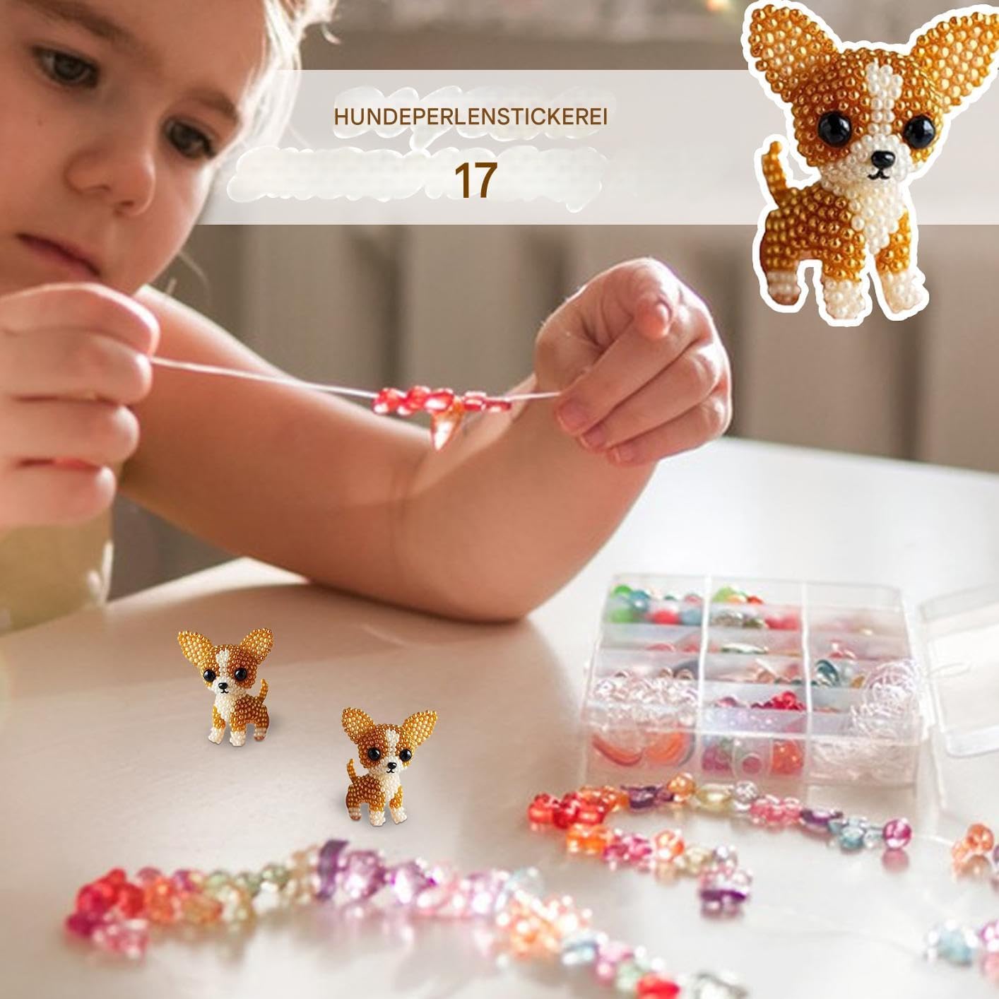 Perline per principianti: questo set è stato sviluppato appositamente per i principianti e include istruzioni dettagliate passo per passo che gli amanti del fai da te di ogni livello possono creare la propria opera d'arte attraverso un divertente processo di ricamo di perline Decorazione precisa delle perle: con riflessi luminosi e meticoloso allineamento delle perline, il set offre un impressionante effetto 3D testurizzato mantenendo tradizioni di ricamo testate per un'autentica qualità artigianale Design affascinante con perle: dona fascino e colore con un divertente progetto di artigianato animale, crea una bambola di cane con perline che è sia divertente che commovente e quindi un pezzo da collezione per gli appassionati di arte fatta a mano Tradizione creativa: ottieni risultati artistici vivaci con questo set di perline per cani che riunisce le famiglie durante le vacanze e crea ricordi duraturi Set di perline finito: tutto incluso come perline, filo da ricamo e perline di ricambio, in modo che non siano necessari strumenti extra, perfetto per principianti e hobbisti per creare facilmente perline artistiche