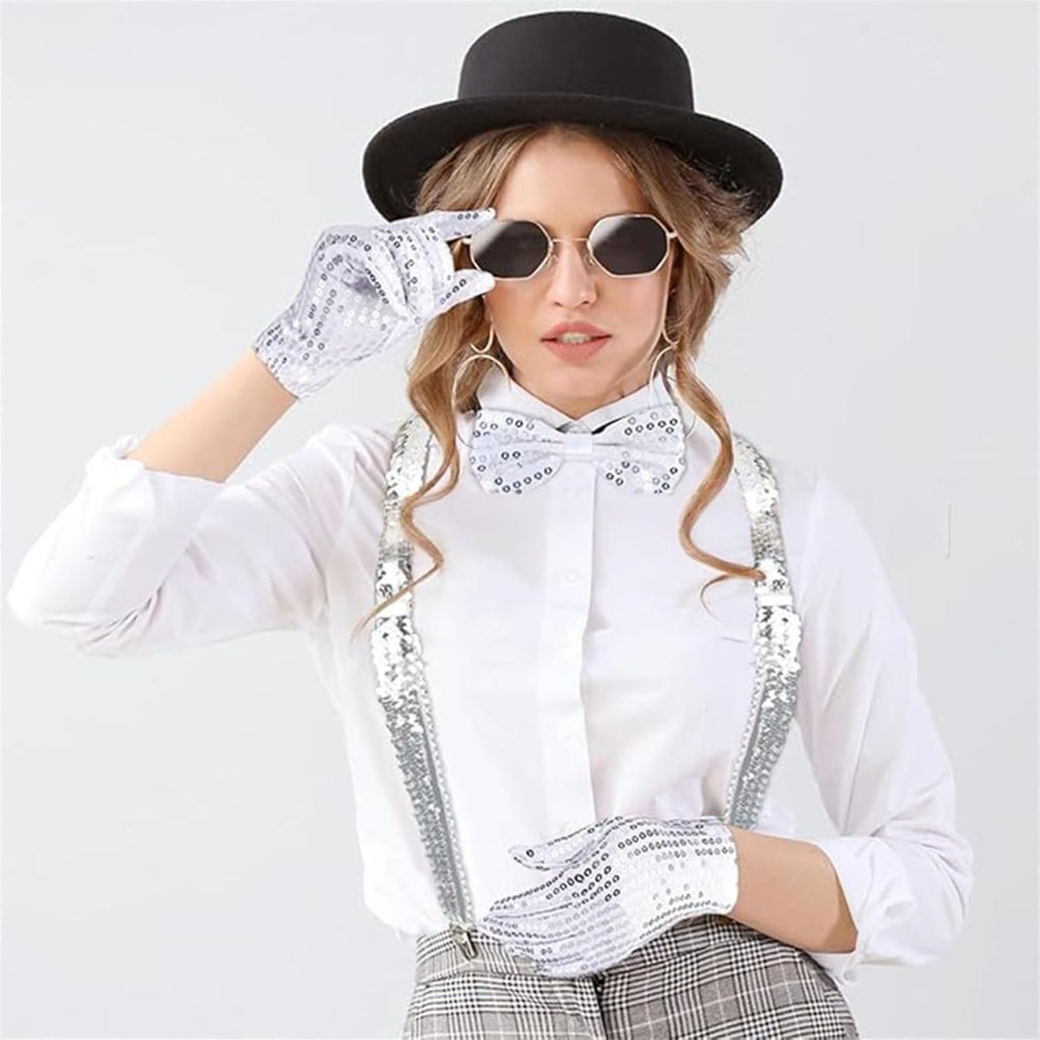 Show Dance Gloves leggero e confortevole, accessorio per cosplay, per spettacoli, discoteca, danza Caratteristiche: L'artigianato di fibre di poliestere e paillettes assicura che ogni movimento attiri l'attenzione, perfetto per spettacoli teatrali e feste. Tessuti leggeri che offrono un'esperienza di indossamento confortevole, ideale per un uso prolungato durante le esibizioni. Fornire una soluzione veloce ed elegante per gli artisti che hanno bisogno di modifiche rapido vestito. Resistente all'usura e facile da pulire, adatto per un uso frequente da parte di artisti professionisti Il design neutro si rivolge a uomini e donne e lo rende adatto per ballerini e artisti di tutte le età e abilità. Adatto per l'uso in discoteca spettacoli, feste, festival e altre occasioni, aumento degli effetti visivi e atmosfere. Specifiche: Componente: paillettes in fibra di poliestere Colore: come mostrato nell'immagine. Dimensioni: come mostrato nell'immagine. Quantità: 1 set. La confezione include: 1 cravatta. 1 cravatta. 1 sospensore. 1 paio di guanti. Nota: Si prega di considerare un margine di errore di 1-3 cm a causa della misurazione manuale. Si prega di non avere nulla prima di fare un'offerta. A causa della differenza tra i diversi monitor, l'immagine potrebbe non riflettere il colore reale dell'articolo.