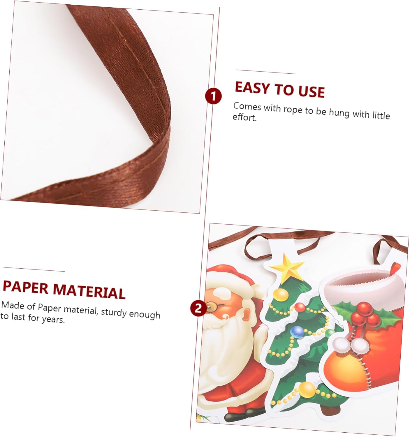 Bandierine sospese per natale: adatte per feste di natale, decorazioni per la casa, decorazioni per negozi, eccellenti effetti decorativi, bandierine sospese natalizie. Striscione natalizio da appendere: lo striscione natalizio è adatto per essere appeso a porte, pareti, finestre, altri posti desiderati, unico e chic, striscione natalizio. Bandierine di carta per natale: realizzate con materiale cartaceo, non facile da sbiadire e riutilizzabile, pratico ed eccellente per decorare interni, striscioni di carta natalizi. Stamina natalizia: elementi classici natalizi, colori brillanti, aspetto delicato, questo striscione sospeso non è facile da sbiadire, stamina natalizia appesa. Bandierine di carta per natale: lo striscione natalizio da appendere potrebbe evidenziare la calda atmosfera natalizia, decorativo e adorabile, lo striscione da appendere per natale.