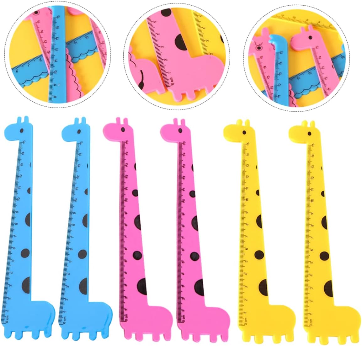 Righelli creativi: incisi con scala chiara incisa, il righello è facile da leggere e utilizzare, molto pratico e conveniente, righelli a forma di giraffa Righello portatile: sottile e leggero, non devi preoccuparti di rompere il libro o aggiungere altro tuo libro, righello dritto portatile Righello con centimetri: questo righello dritto in plastica è ottimo per lettori, studenti, scrittori, laureati e così via, governanti Righello giraffa per la casa: è di piccole dimensioni, leggero, non occupa spazio ed è facile da trasportare, comodo righello in plastica Righelli in plastica multifunzione: non solo sono belli da vedere, ma la loro struttura e il loro peso sono progettati per essere comodi, righello