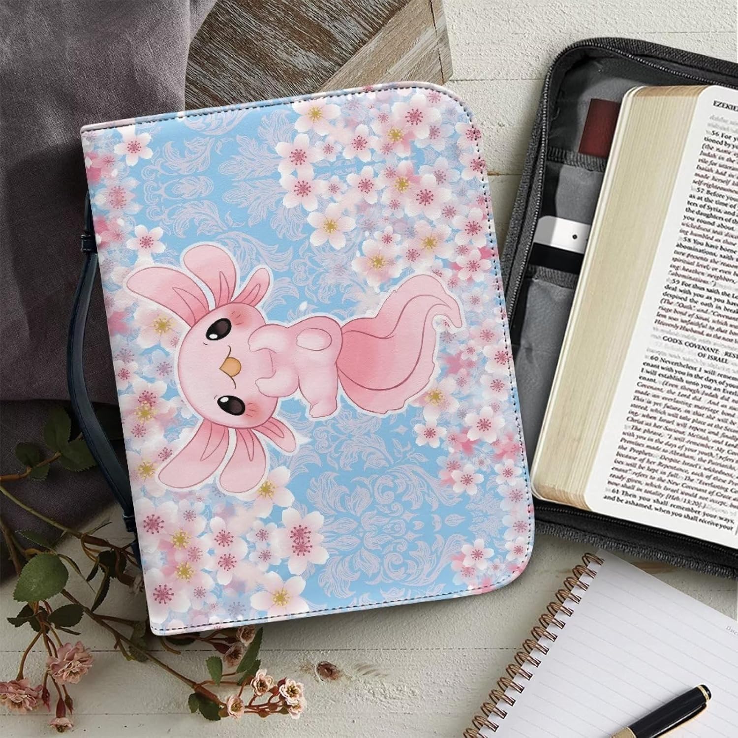 Showudesigns Sakura Axolotl - Custodia per la Bibbia per donne e ragazze, borsa per chiesa, portatile, multifunzionale, regalo cristiano, protezione per scritture, libro con fiori di ciliegio, porta