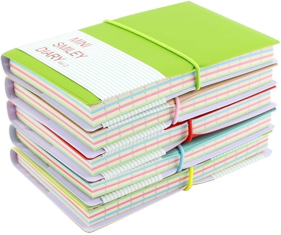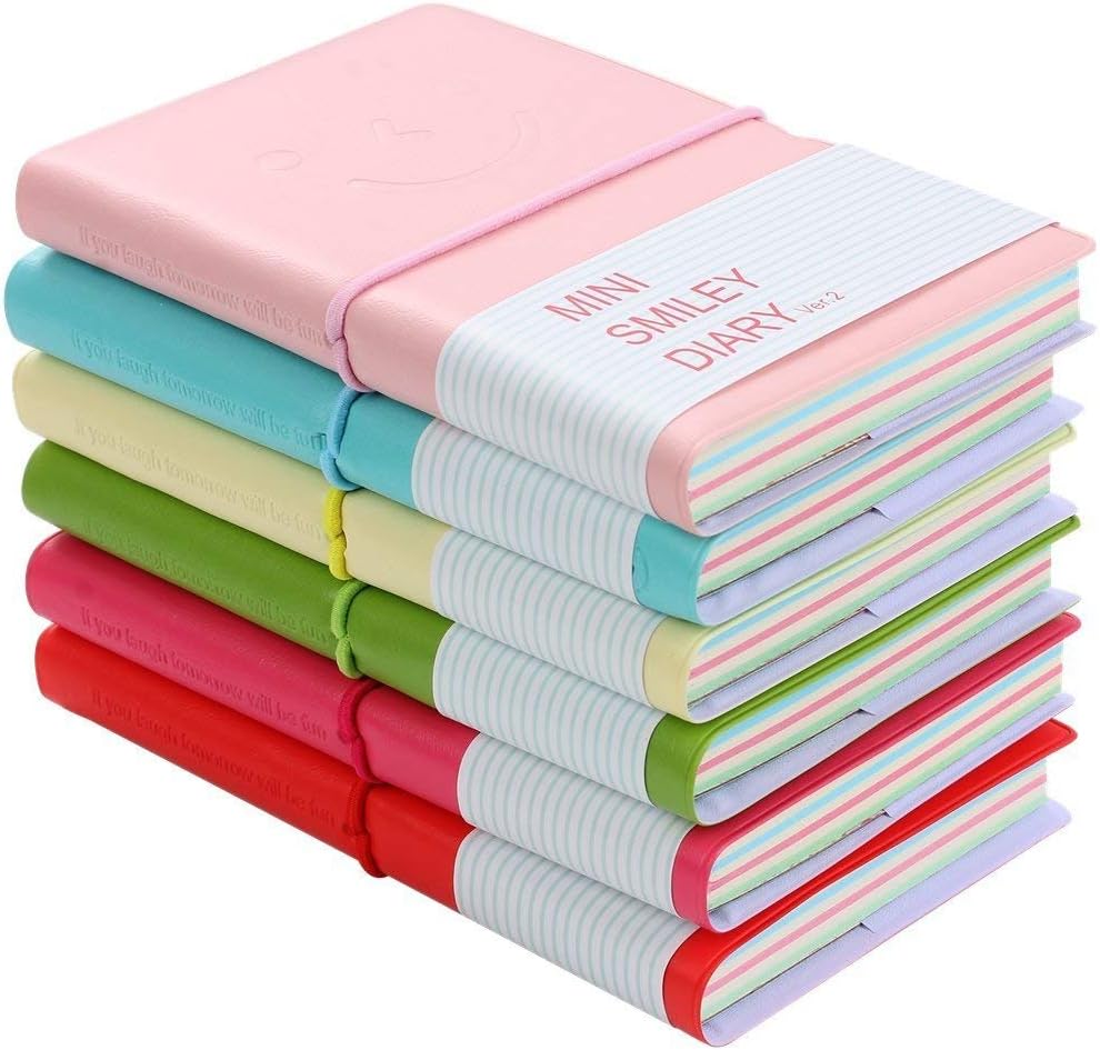 Notebook di piccolo formato: 13 x 8,4 cm, Il modello di notebook di piccolo formato grazie alle sue dimensioni compatte, portabilità, comodità e praticità. Ideale per diario, lettere, pianificazione, promemoria, scrittura creativa, voci di diario, schizzi, scarabocchi, cose da fare o liste della spesa. Mini blocco note: questo piccolo taccuino ha 96 fogli, 54 fogli di pagine a righe e 42 fogli di carta colorata (rosa, blu, verde), 14 fogli di ogni colore, può stare in tasca per disegnare e scrivere ovunque. Simpatiche immagini di cartoni animati sorridenti ti metteranno di buon umore mentre scrivi/pensi e ti incoraggeranno/incoraggeranno a studiare duramente. Il design unico con una fascia elastica attorno al tuo laptop semplifica la gestione del tuo laptop. Contenuto della confezione: 6 quaderni Smile di piccolo formato. (6 colori)