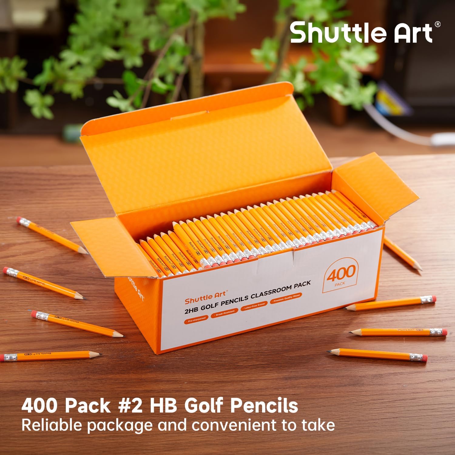 Confezione da 400 matite da golf con gomme: le mezze matite Shuttle Art #2 HB sono dotate di gomme e sono pre-affilate, il che le rende ideali per l'uso in scuole, uffici, case e club per sostenere il consumo quotidiano di matite. Resistente alla rottura e di alta qualità: mina HB resistente avvolta in legno di alta qualità, facile da affilare. Matite di grafite di alta qualità scrivono senza intoppi, adatte per lunghe ore di scrittura e schizzi, perfette per il rientro a scuola per bambini e insegnanti. Essenziali per la classe e pre-affilate: mini matite da 8,9 cm con gomme in una scatola, sono pre-affilate, che consentono di risparmiare tempo e pronte all'uso. Sicure per l'uso: tutte le mini matite sono realizzate con materiali ecologici, rigorosamente conformi agli standard ASTM-D4236 e EN71-3, sicure e atossiche, ideali per bambini dai 3 anni in su. GARANZIA DI SERVIZIO: La vostra soddisfazione è la nostra massima priorità, si prega di essere certi di acquistare i nostri prodotti. Se non siete soddisfatto con i nostri prodotti o avete domande, non esitate a contattarci in qualsiasi momento.