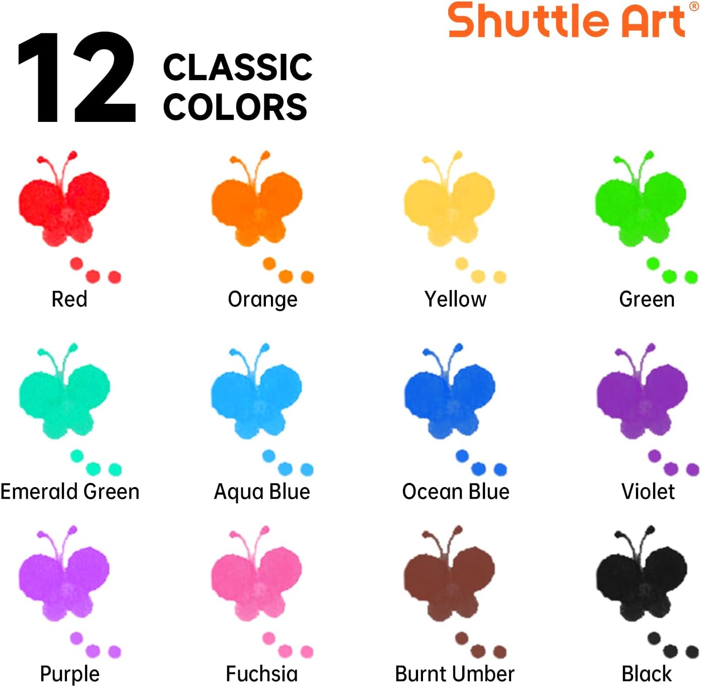 【12 COLORI GENIALI】 Questo set di pennarelli bingo contiene 12 colori di base: rosso, arancione, giallo, verde, verde smeraldo, blu acqua, blu oceano, viola, fucsia, terra di ombra bruciata e nero. La varietà di colori consente ai bambini di creare e utilizzare la loro immaginazione per dipingere 【ADATTATO PER LE PICCOLE DITI】: Con bottiglie generose da 12 ml, i pennarelli a tampone Shuttle Art sono molto leggeri e facili da afferrare dai più piccoli, progettato per adattarsi alle mani piccole, ed è molto facile per i bambini tenere, mescolare e mescolare i colori come desiderano 【LAVARE FACILEMENTE】 Se il bambino mette accidentalmente inchiostro sulle mani o sui vestiti, puoi risolvere rapidamente il problema. Basta sciacquarlo con acqua per pulirlo 【Non tossico e privo di acidi】 Questi pennarelli lavabili per bambini sono completamente sicuri per i bambini. Usiamo un inchiostro atossico e privo di acidi che è sicuro per la pelle. Il materiale dei marcatori è conforme allo standard ASTM-D4236 Soddisfazione garantita: la vostra soddisfazione è la nostra massima priorità. E siamo convinti che sarai soddisfatto dei nostri marcatori a punti. Se non sei soddisfatto dei nostri prodotti, ti preghiamo di contattarci in qualsiasi momento