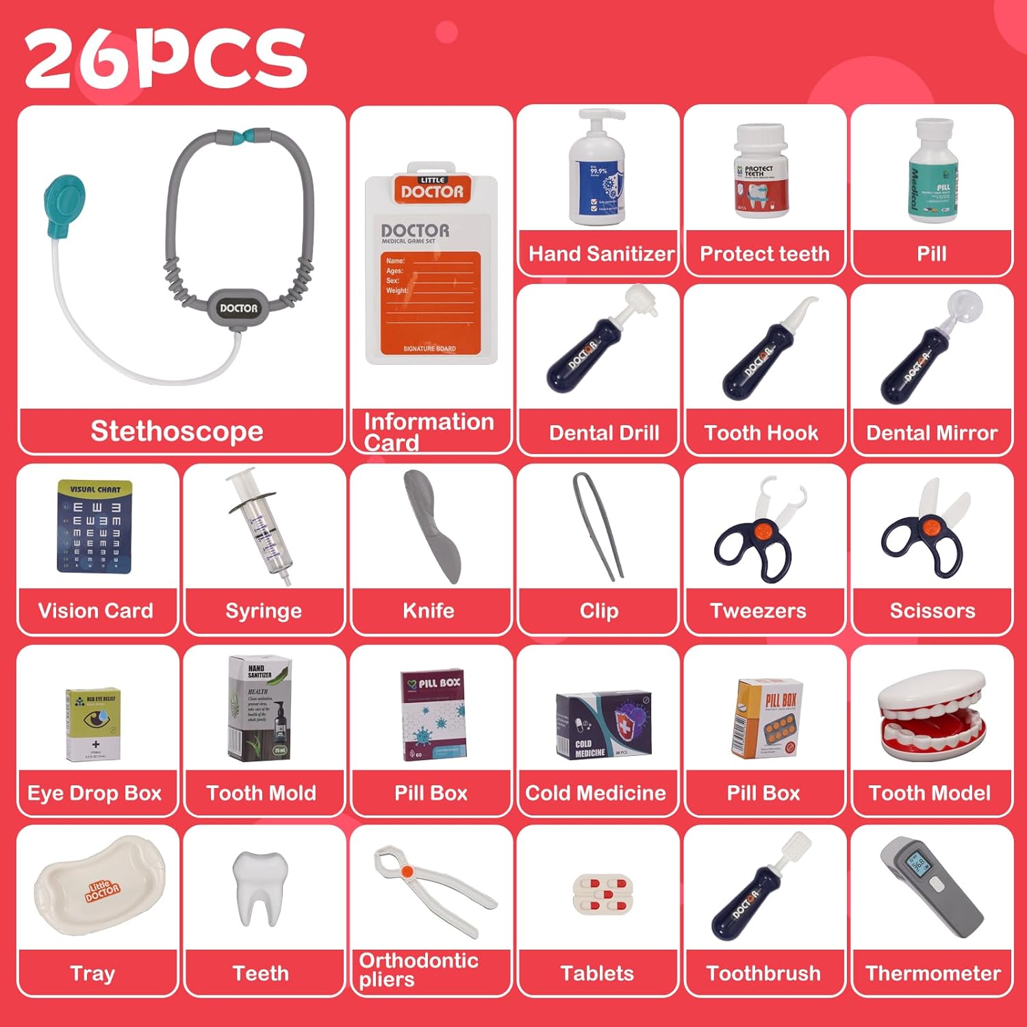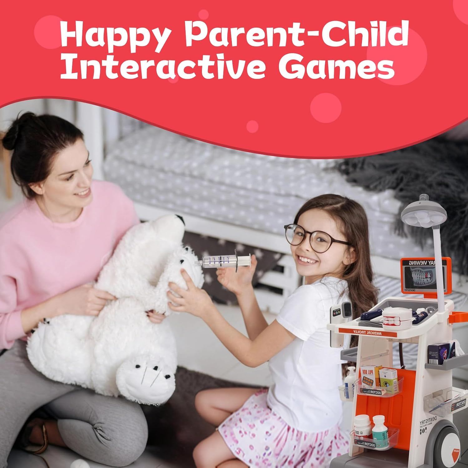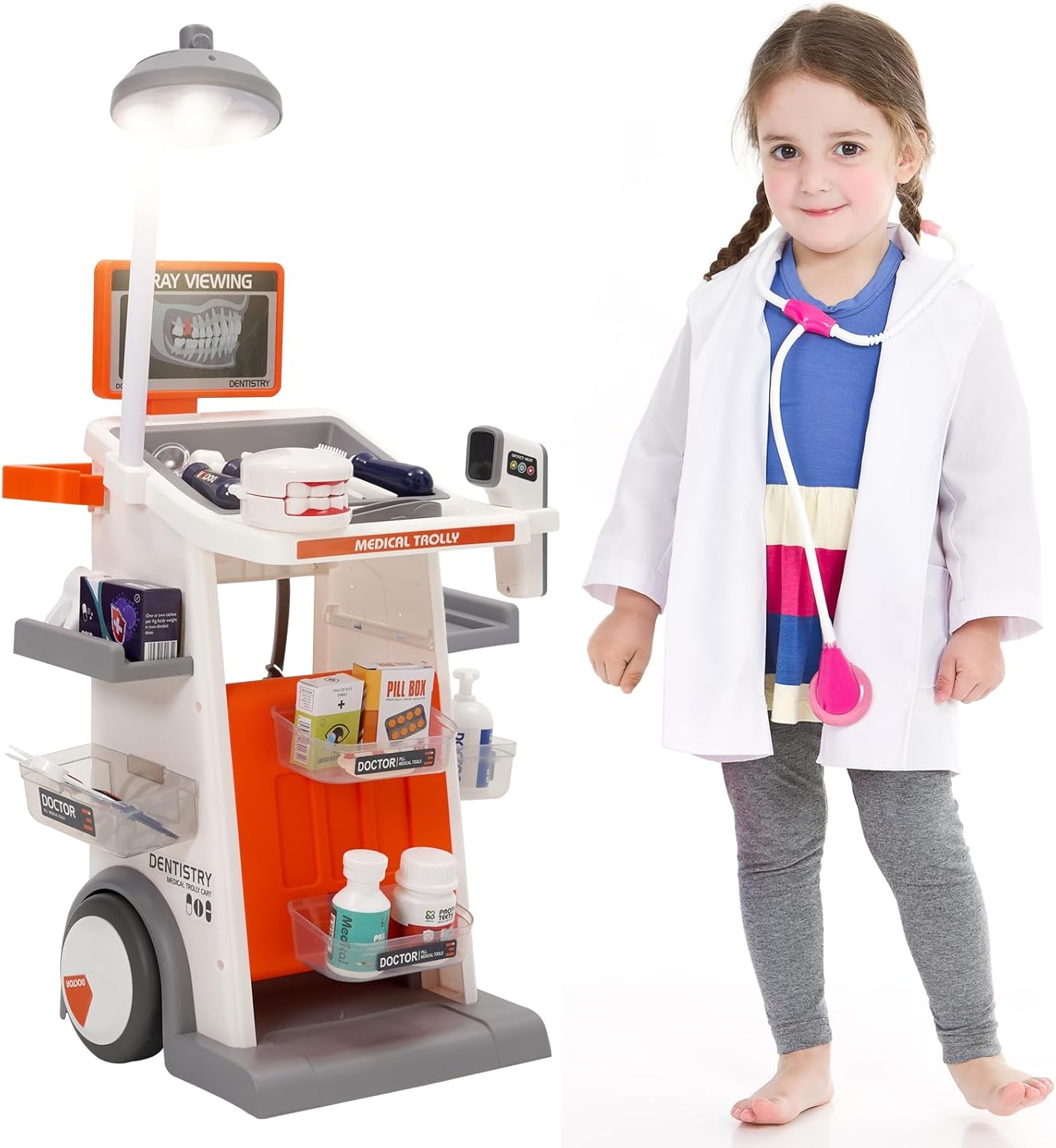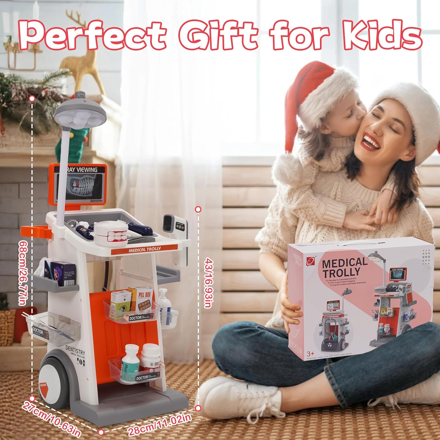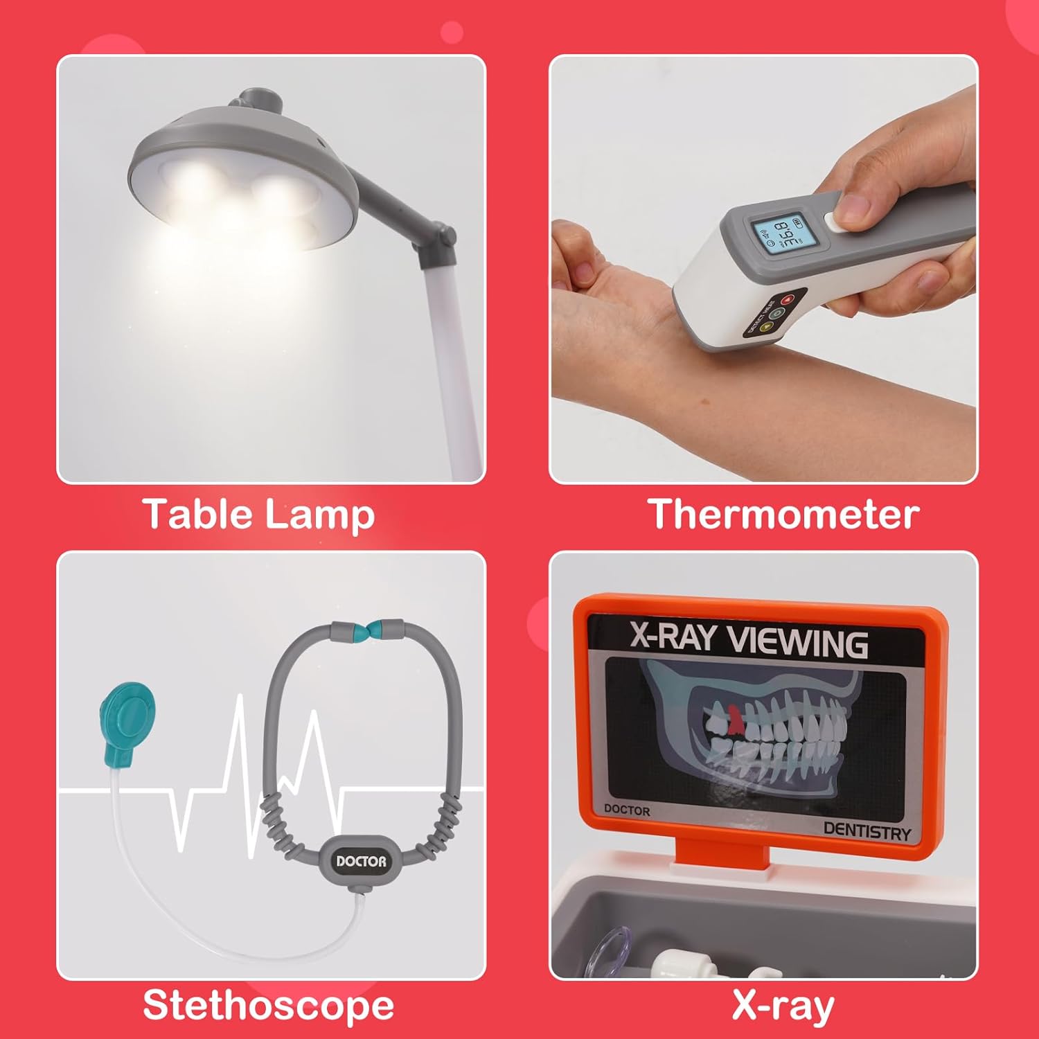 Carrozza medica guidabile multifunzionale: con la carrozza medica mobile, i bambini possono "esaminare medicamente i membri della famiglia o gli amici. I bambini possono sviluppare buone abitudini di conservazione durante il gioco, ma anche imparare conoscenze mediche e sanitarie. Materiali sicuri: tutti i giocattoli sono in materiale ABS, BPA-free, facile da montare, odore neutrale, superficie liscia, nessuna griglia di bordo, i bambini possono giocare in modo sicuro. Il nostro sito web Lampada medica realistica: il set è dotato di una lampada medica a LED che garantisce un'atmosfera medica autentica. I bambini possono così riprodurre realisticamente esami o un esame del collo. 26 Doctor Toy Set: Questo set di 26 parti per il medico e il dentista contiene una varietà di strumenti medici realistici come stetoscopio, spruzzo, termometro, specchio dentale e spazzolino dentale. I bambini possono utilizzare questi strumenti per giochi di ruolo per simulare visite realistiche dal medico e dal dentista, promuovendo le loro abilità motorie e la risoluzione dei problemi. Regalo perfetto per bambini: questo kit pediatrico è adatto per bambini di età compresa tra 3 e 8 anni. Possono imitare i medici per curare i pazienti. Perfetto per festa, giochi di impostazione, giochi di ruoli, aule di scuola, regali di vacanza giocattoli, regali di compleanno e altro ancora.