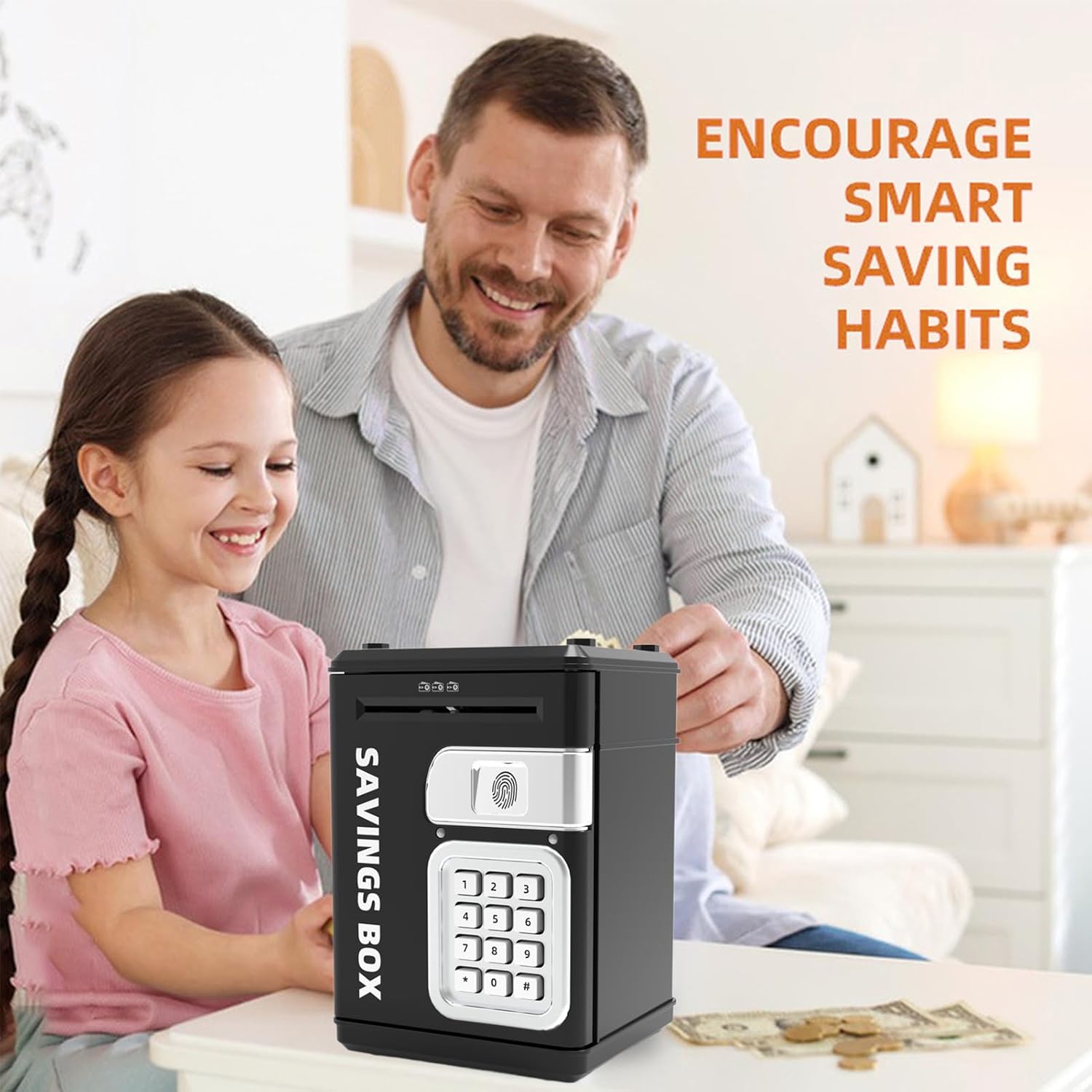 Insegnamento concetti consumo: Fornisce strumenti pratici per comprendere le abitudini di spesa attraverso metodi coinvolgenti che integrano simulazioni di risparmio, creando un ambiente immersivo apprendono gradualmente il valore della gestione del denaro passo dopo passo Sviluppo Adattabile: Adatto a diverse fasce d'età, unisce utilità e valore affettivo conservando oggetti personali e denaro, diventando parte integrante degli anni formativi del bambino Resistenza agli Urti: La costruzione in ABS ad alta resistenza garantisce un'protezione contro urti e graffi, con finitura dei bordi levigata per un'esperienza d'uso sicura e affidabile Premiante: I bambini sono incoraggiati tramite depositi basati sul raggiungimento di traguardi, caratterizzati da vivaci effetti luminosi e gratificanti feedback sonori, per un percorso di risparmio gioioso Sicurezza Avanzata: Opzioni password personalizzabili e verifica impronta offrono soluzione accesso tecnologica senza interruzioni e sicura per gli utenti