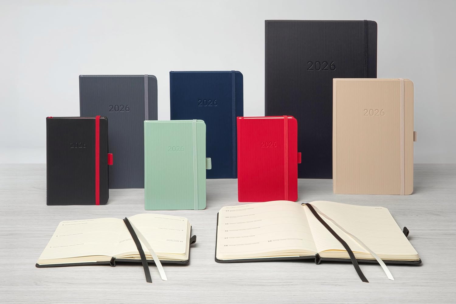 Le agende Conceptum ti permettono di organizzare al meglio la tua vita quotidiana professionale e di coniugare il miglior design e l'eccellente qualità Agenda settimanale 2026, ca; A5 (13,5 x 21 cm) in nero e copertina morbida, con visualizzazione calendario: 2 pagine = 1 settimana nonché panoramica mensile e annuale, giorni festivi (de/at/ch/uk/fr/be/nl), vacanze scolastiche (de/at/ch/nl), unità di misura (eu/uk/us), fusi orari MIGLIOR DESIGN: superficie scanalata Softwave - unica al tatto e anche visibile; Con carta colorata color cuoio da 80 g di alta qualità (certificata PEFC), adatta per penne stilografiche QUALITÀ ECCELLENTE: copertina flessibile morbida e resistente; Realizzato utilizzando la classica cucitura a filo per una maggiore durata e una perfetta planarità del libro CARATTERISTICHE PRATICHE: portapenna, tasca rapida, tasca a soffietto con portacarte (fino a 10 carte max; 90x60 mm), pagine per appunti perforate, 2 nastri segnalibro