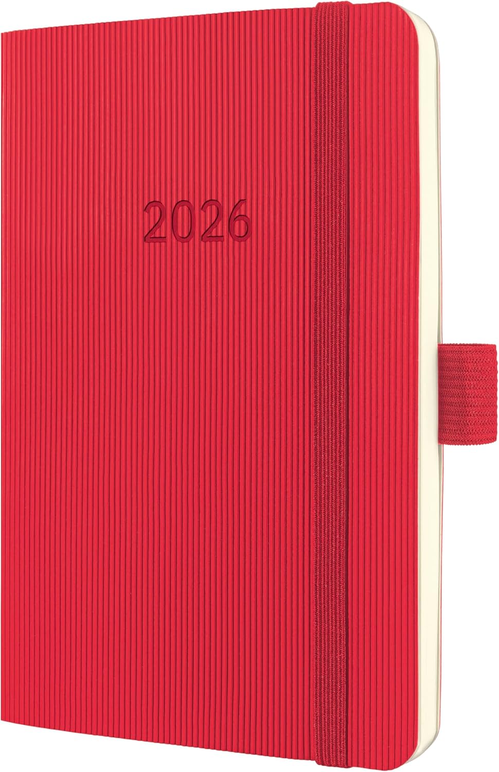 Le agende Conceptum ti permettono di organizzare al meglio la tua vita quotidiana professionale e di coniugare il miglior design e l'eccellente qualità Agenda settimanale 2026, ca; A6 (9,3 x 14 cm) con copertina rossa e morbida, con visualizzazione calendario: 2 pagine = 1 settimana nonché panoramica mensile e annuale, giorni festivi (de/at/ch/uk/fr/be/nl), vacanze scolastiche (de/at/ch/nl), unità di misura (eu/uk/us), fusi orari MIGLIOR DESIGN: superficie scanalata Softwave - unica al tatto e anche visibile; Con carta colorata color cuoio da 80 g di alta qualità (certificata PEFC), adatta per penne stilografiche QUALITÀ ECCELLENTE: copertina flessibile morbida e resistente; Realizzato utilizzando la classica cucitura a filo per una maggiore durata e una perfetta planarità del libro CARATTERISTICHE PRATICHE: portapenna, tasca rapida, tasca a soffietto con portacarte (fino a 10 carte max; 90x60 mm), pagine per appunti perforate, 2 nastri segnalibro