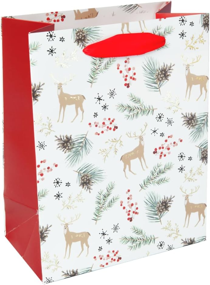 Con i pregiati sacchetti natalizi SIGEL dal design natalizio moderno ed elegante i regali di Natale vengono confezionati in modo rapido e decorativo. Borsa regalo piccola "Motivi natalizi acquerello" in carta opaca con pellicola lucida nel formato 18 x 23 x 10 cm in bianco/oro/rosso. Borsa regalo con manici in nastro di seta in tinta, inserto base in cartone per una maggiore stabilità. Sostenibile: carta certificata FSC ecologica proveniente da fonti responsabili. Fornitura: 5 pezzi