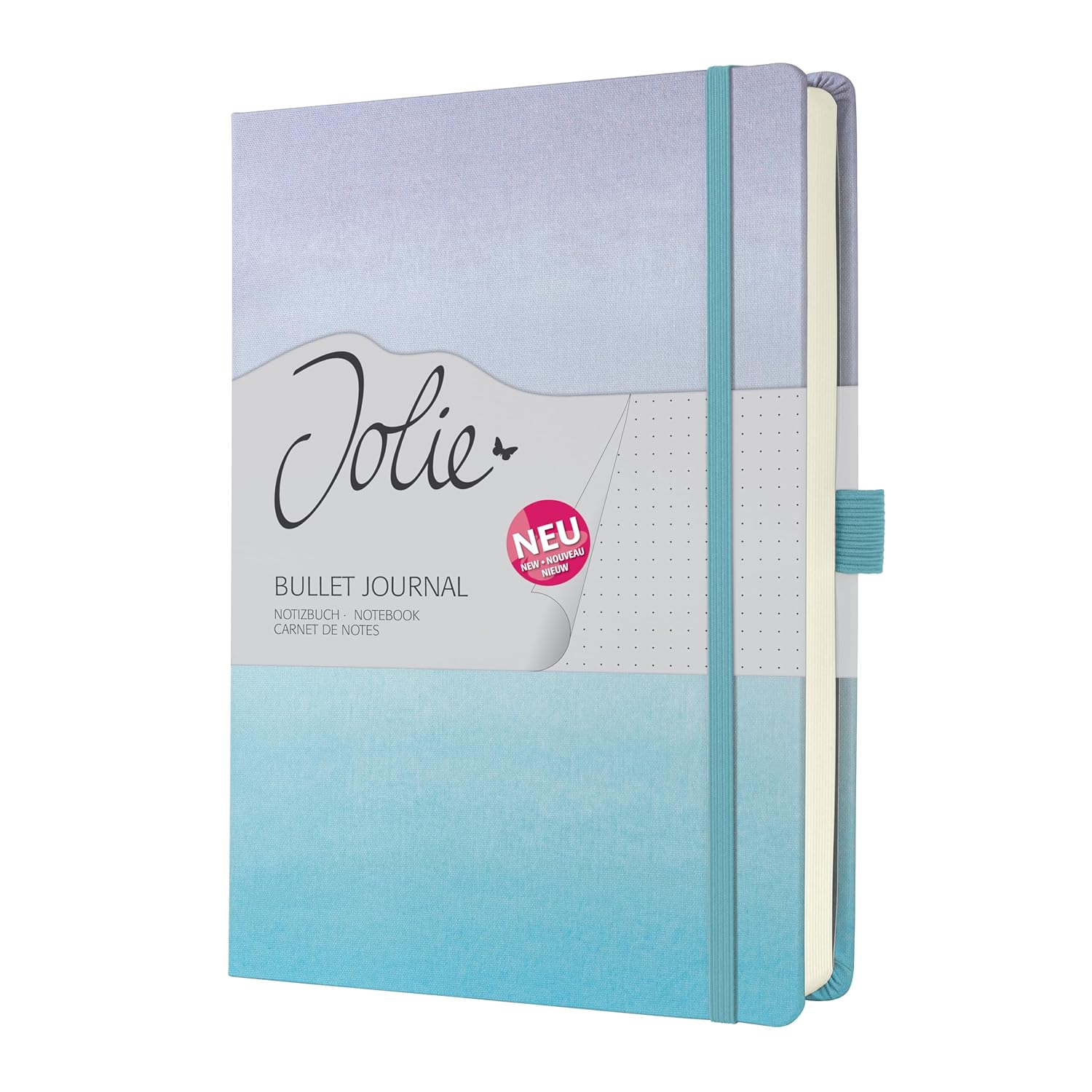 Sigel JB100 Bullet Journal Jolie Quaderno a righe a pois Carta spessa 120 g A5+ Blu 200 pagine Copertina rigida con tessuto rivestito in gradiente di cielo Carta vegana sostenibile