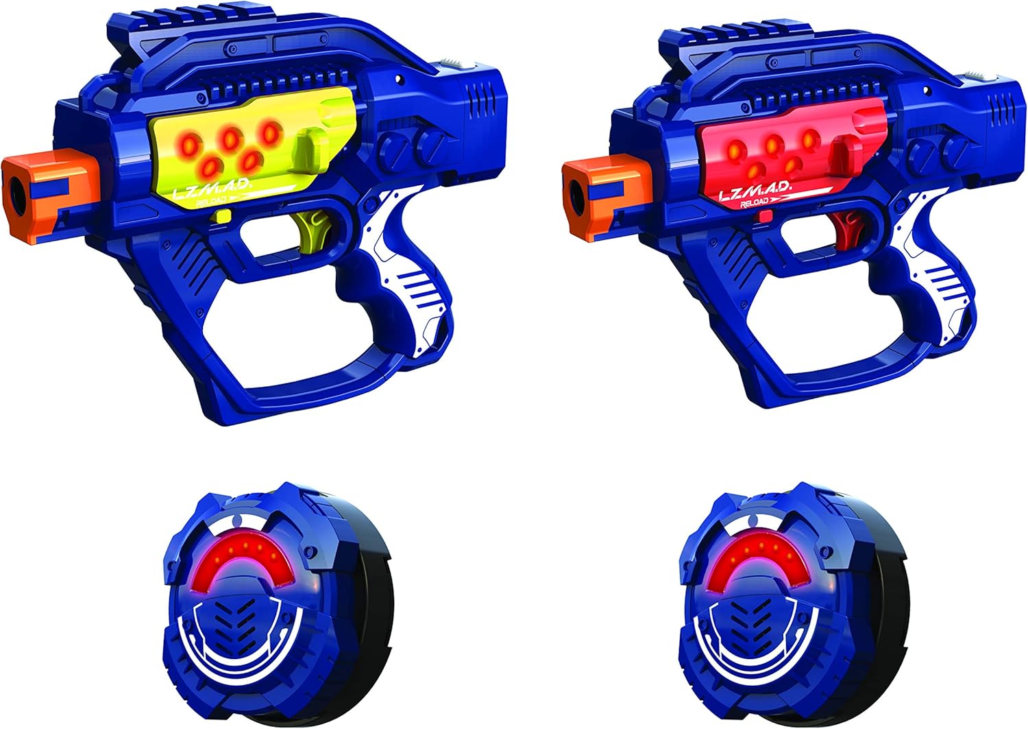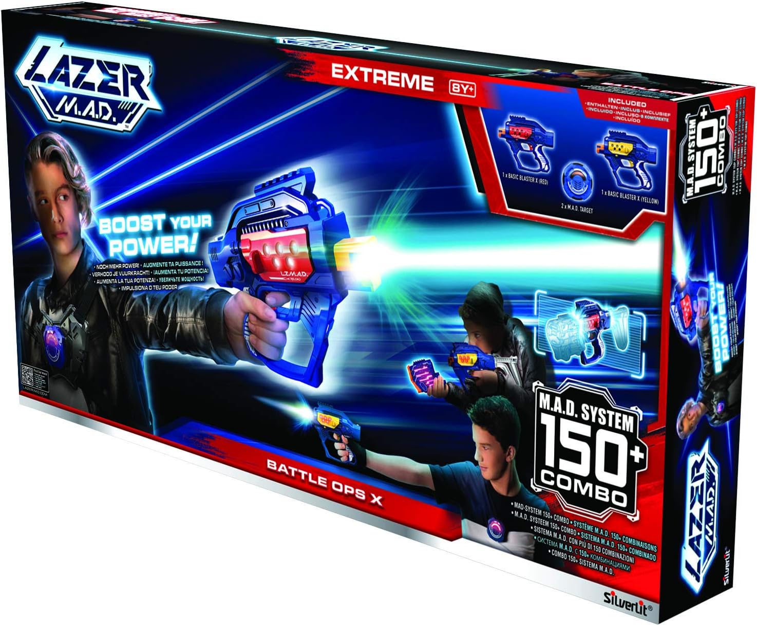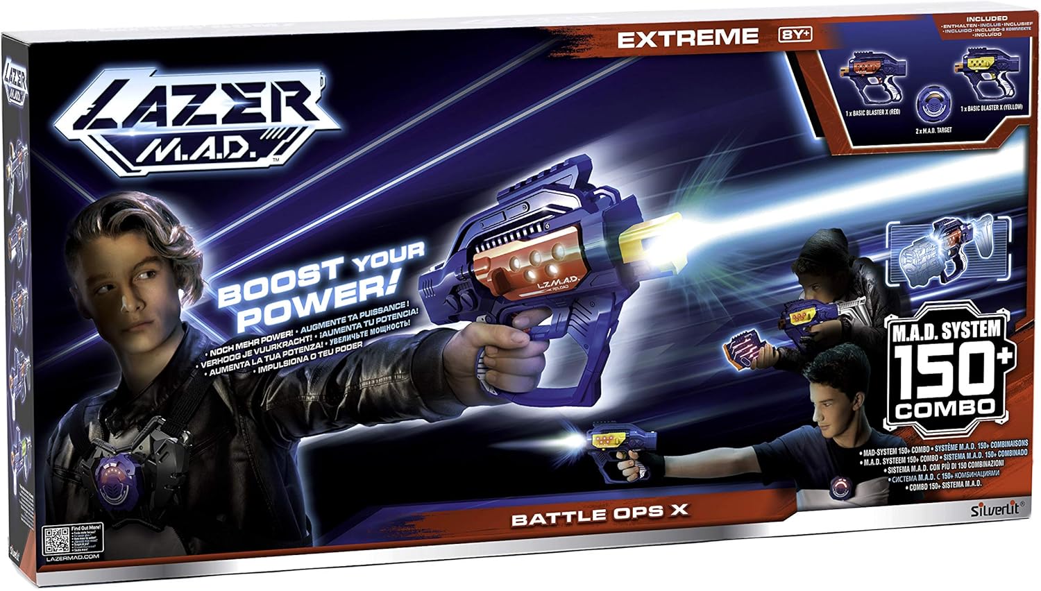 Il Kit 2 giocatori in versione EXTREME! Una portata ancora più potente! 2 modalità di gioco: modalità battaglia o modalità allenamento. Compatibile con tutti gli altri accessori LAZER M.A.D. Venduto separatamente. Contenuto della confezione: 2 x Blaster + 2 bersagli Batterie non incluse: 3 x AAA (per blaster) + 3 x AAA (per bersaglio) Da 8 anni.