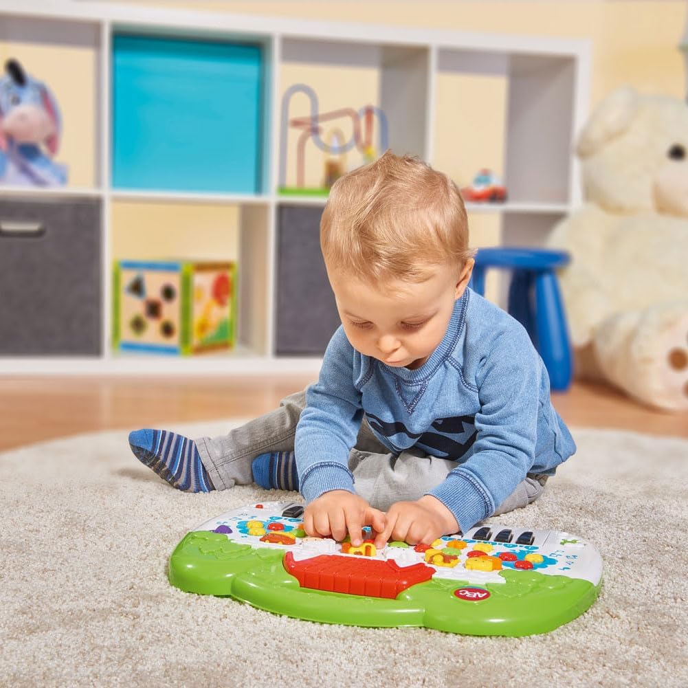 Scopri il mondo in modo giocoso con ABC! ABC risveglia la curiosità di neonati e bambini piccoli da 0 a 36 mesi con prodotti adatti all'età e sostiene il loro sviluppo nei primi anni di vita. I primi obiettivi di apprendimento vengono raggiunti in modo giocoso, si scoprono forme e strutture e si allenano modelli di coordinazione. L'allegra e colorata tastiera degli animali offre ampie opzioni per suonare e creare musica. I piccoli musicisti si divertono molto con la tastiera degli animali e sviluppano anche l'udito, il senso del ritmo e le capacità motorie. Oltre alle numerose melodie, i bambini piccoli imparano anche i suoni quando premono i tasti degli animali. Con la tastiera degli animali i bambini possono riprodurre diversi versi di animali e brani musicali, registrare e riprodurre canzoni, cambiare il ritmo o persino comporre i propri brani. La tastiera degli animali è lunga 39 cm ed è adatta a bambini a partire dai 36 mesi. 2 batterie LR6 da 1,5 V incluse