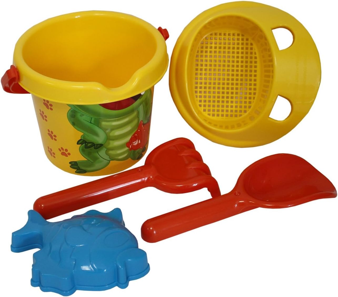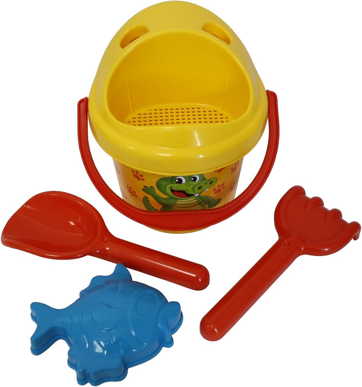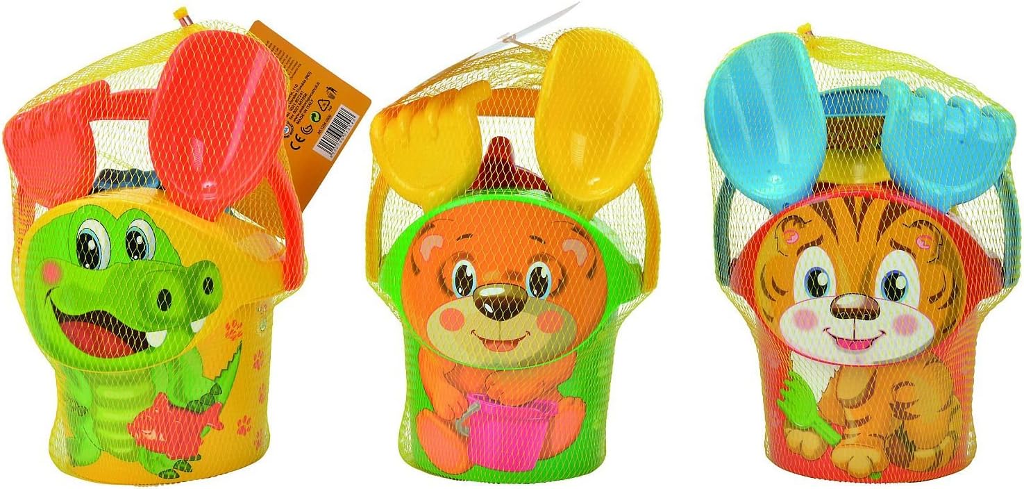 Nota: questo è un ordinamento. Riceverai solo un articolo. Selezione casuale in magazzino. Nessuna preselezione possibile. Questo meraviglioso set di 5 secchi garantisce tanto divertimento nella sabbia Il set è composto da un secchio da 11 cm con maniglia per il trasporto e un diametro di 14 cm, un colino, uno stampo per la sabbia, una pala e un rastrello Gli strumenti economici sono piccoli e maneggevoli e quindi particolarmente adatti ai bambini piccoli Il set viene fornito con tre simpatici motivi di animali (tigre, orso e coccodrillo)